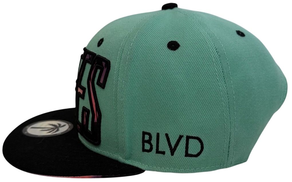 The BLVD Supply Co Palm Tree Teal Embroidered Purple Logo Flat Brim Snapback is a stylish and versatile hat suitable for various occasions such as travel, parties, casual wear, and workwear. Made of lightweight cotton canvas, this vintage-inspired snapback features a solid teal color with a tropical theme, perfect for all seasons. The adjustable brim ensures a comfortable fit for both men and women, making it a fashionable accessory for any outfit. Designed by Blvd Supply Co, this unisex snapback is a statement piece that adds a touch of personality to your wardrobe.