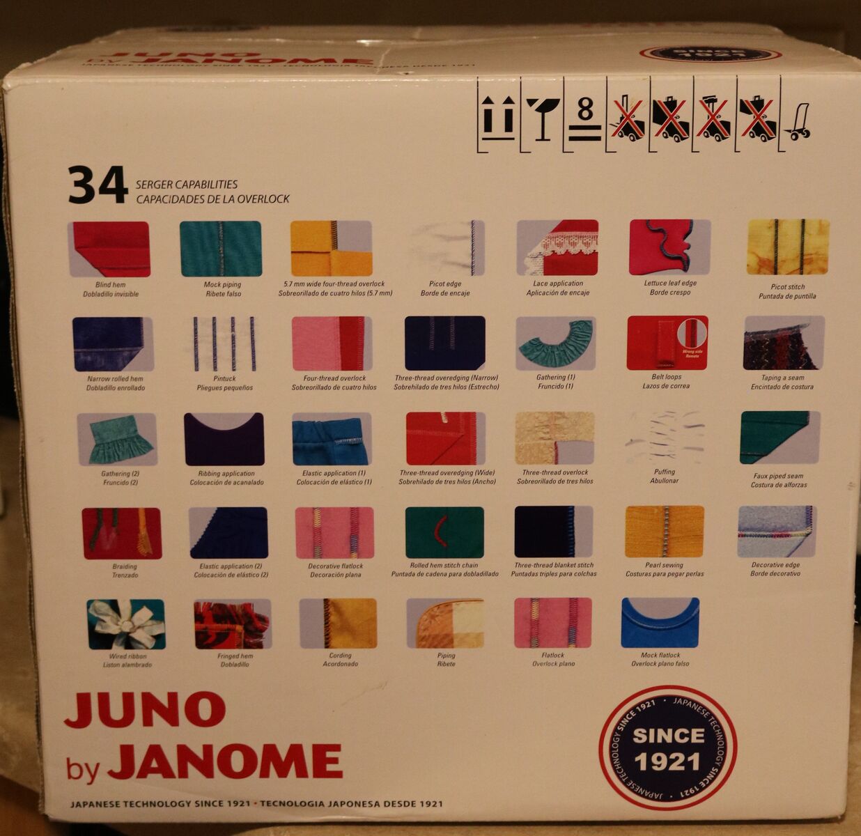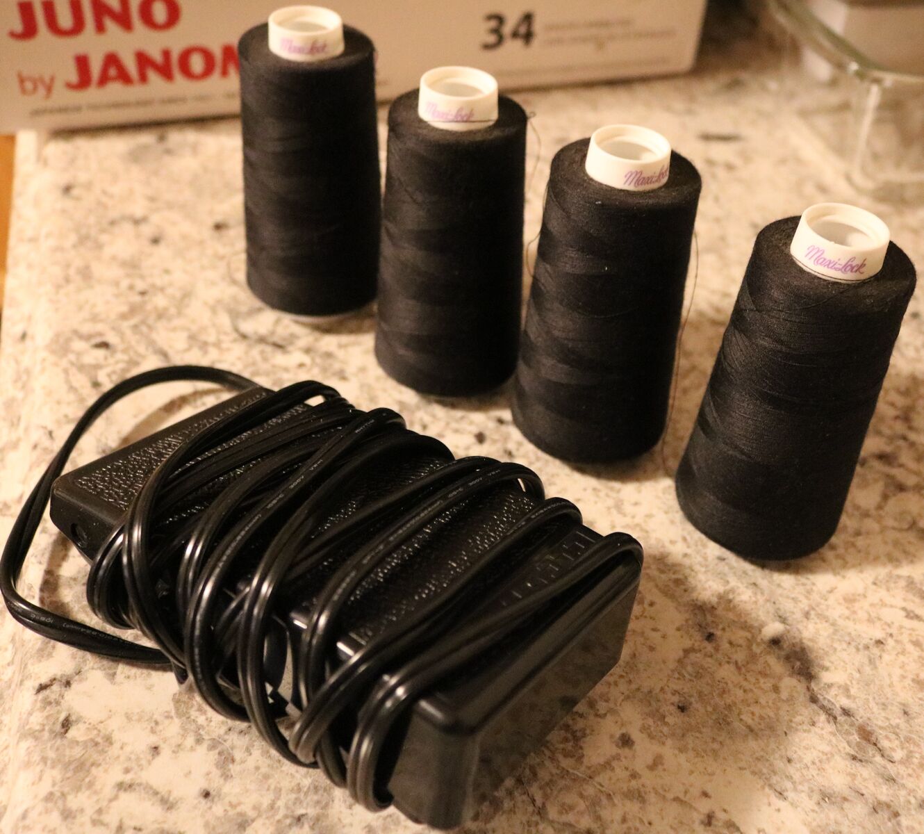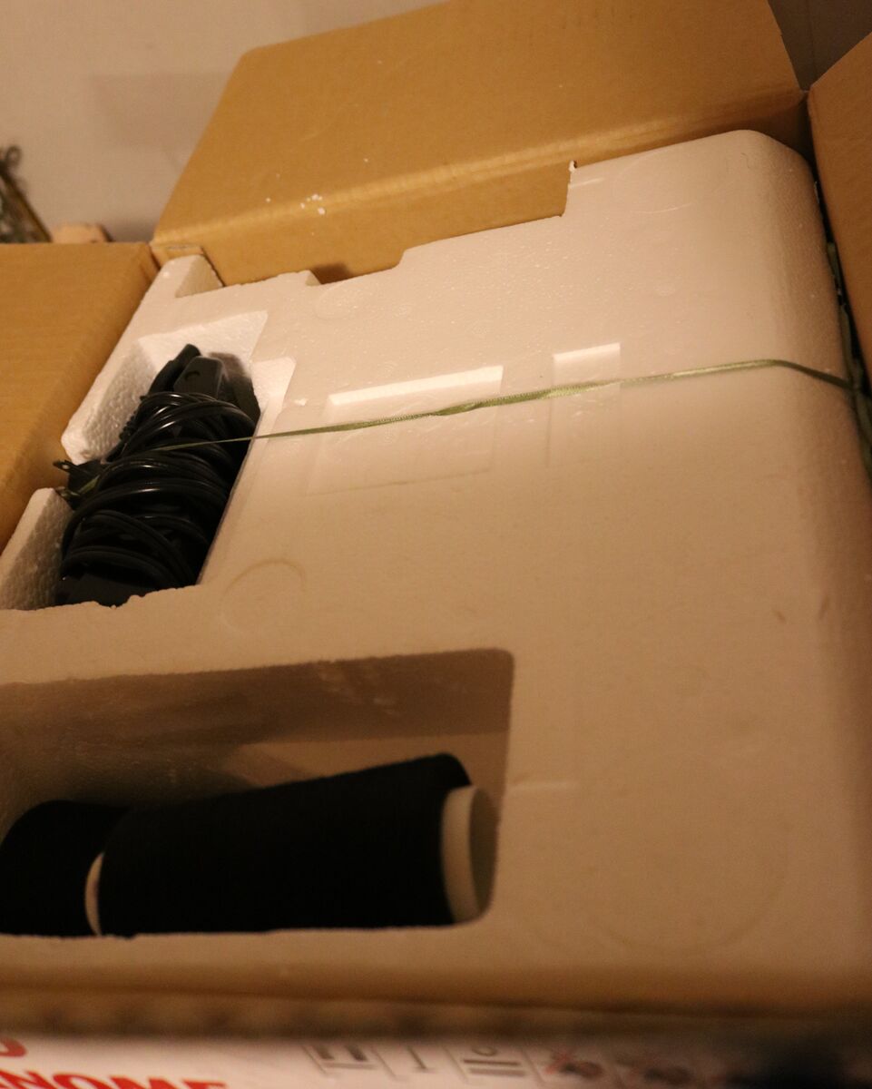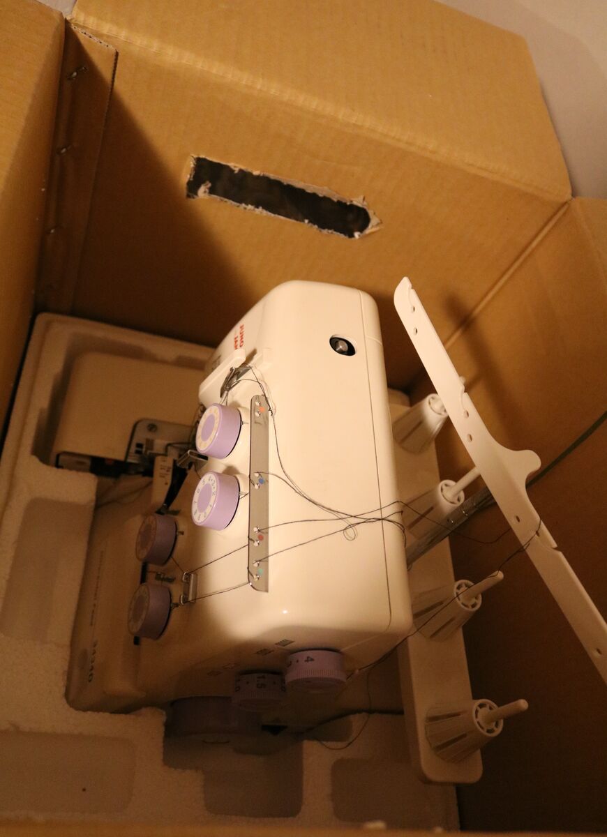Serger Sewing machine, only used for one small fleece blanket. Includes 4 spools of black thread.