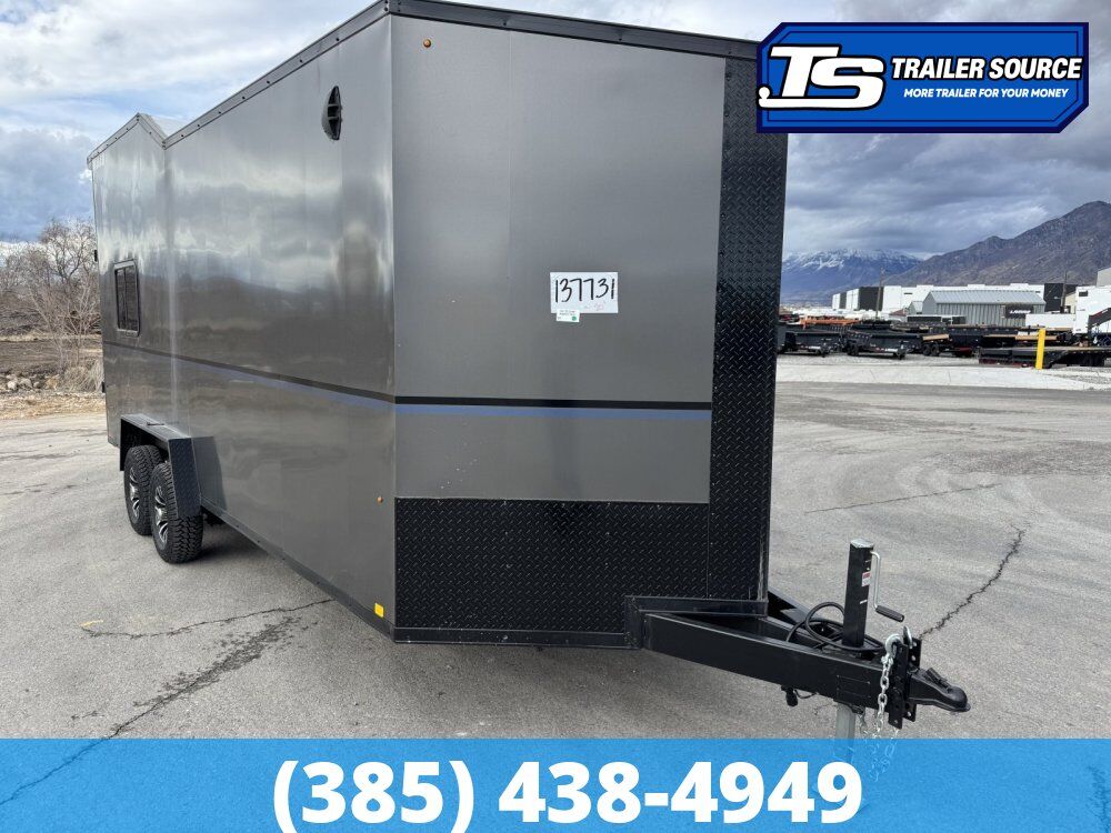 "More Trailer For Your Money" 7.5 x 20 Look Moab 10K Enclosed Cargo Trailer – Ready To Work! Alloy Wheels, Aluminum Walls and Ceiling, Battery, Black Out Package, D-Rings, Finished Interior, Roof Vent, Solar Panel, Spare Mount, Spare Tire, Windows