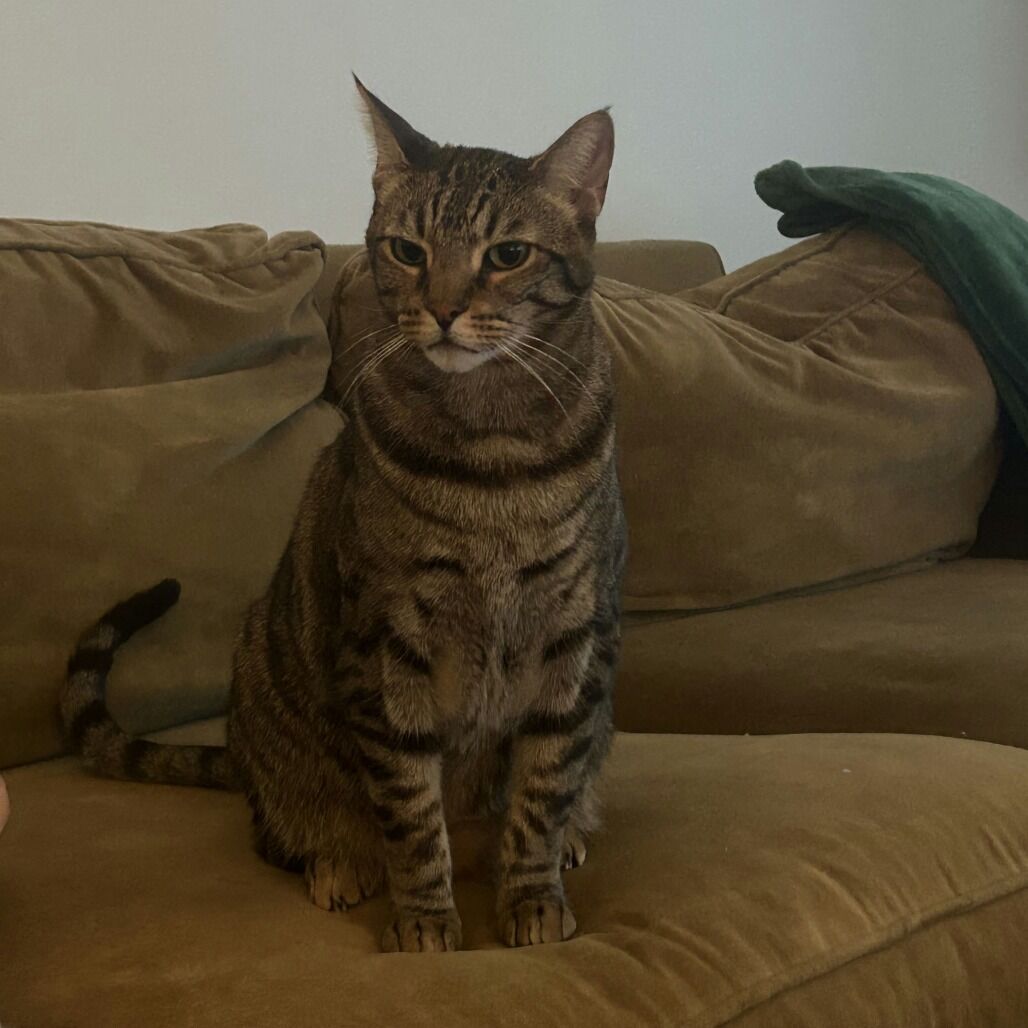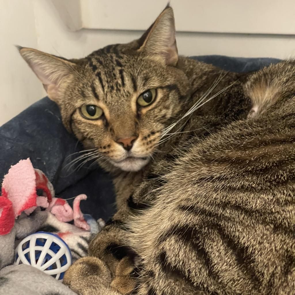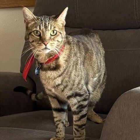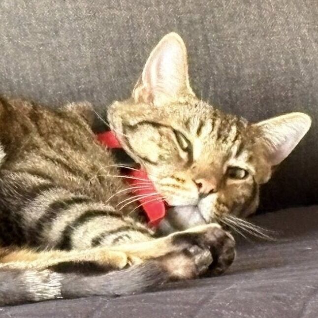 Handsome Imu is a lovely brown tabby with bright, curious eyes and a playful spirit that doesn’t quit. He’s a wand‑toy enthusiast and a scratching‑post connoisseur, happiest when he’s mid‑pounce or showing off his athletic stretch. Imu has lived with another cat and did well—he’s social, adaptable, and enjoys having a feline buddy to share games and naps. This sweetheart is always ready for pets and delighted to soak up attention. He’s the kind of companion who brings energy to playtime and calm to quiet moments, making everyday life feel a little more alive.