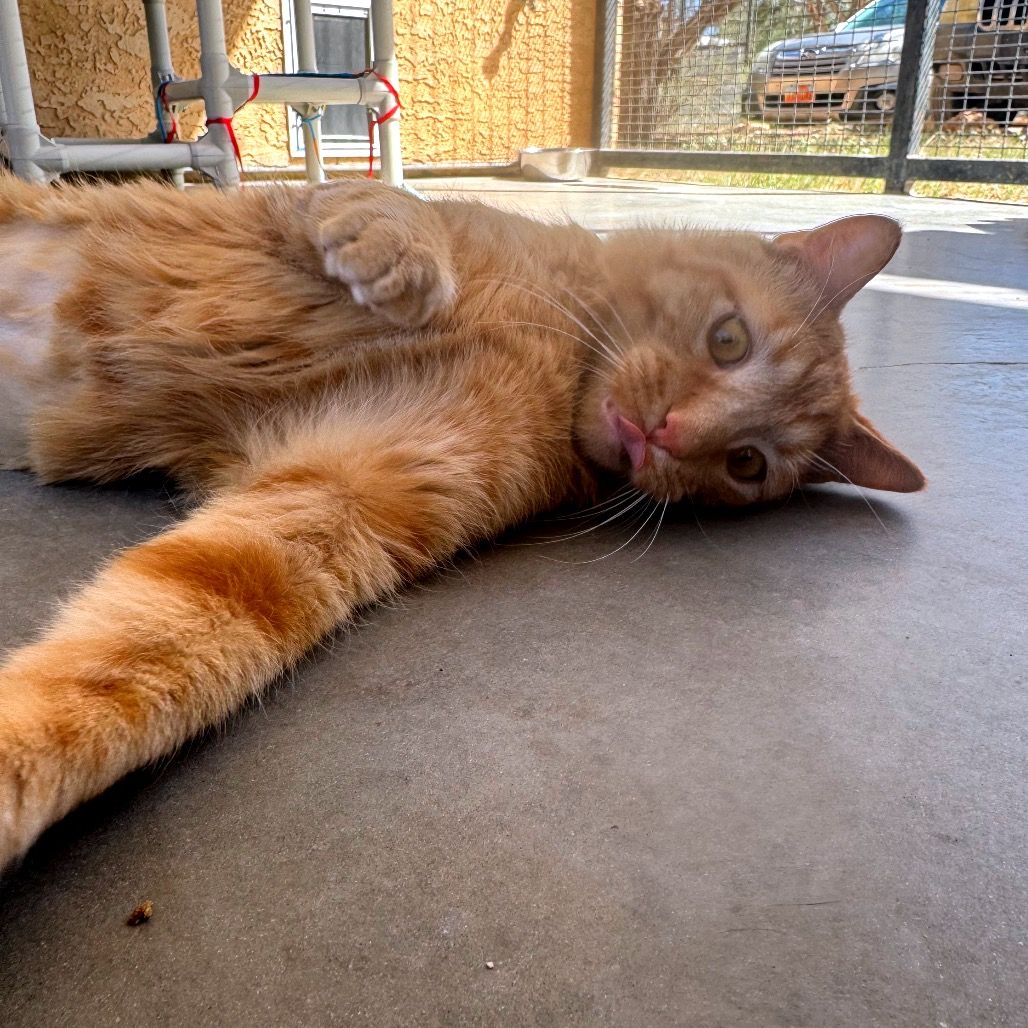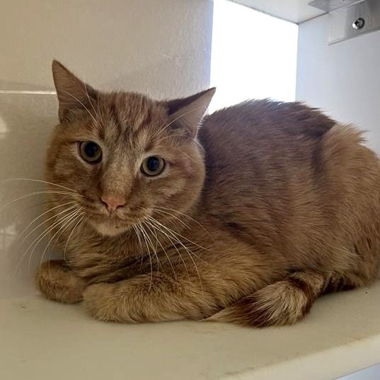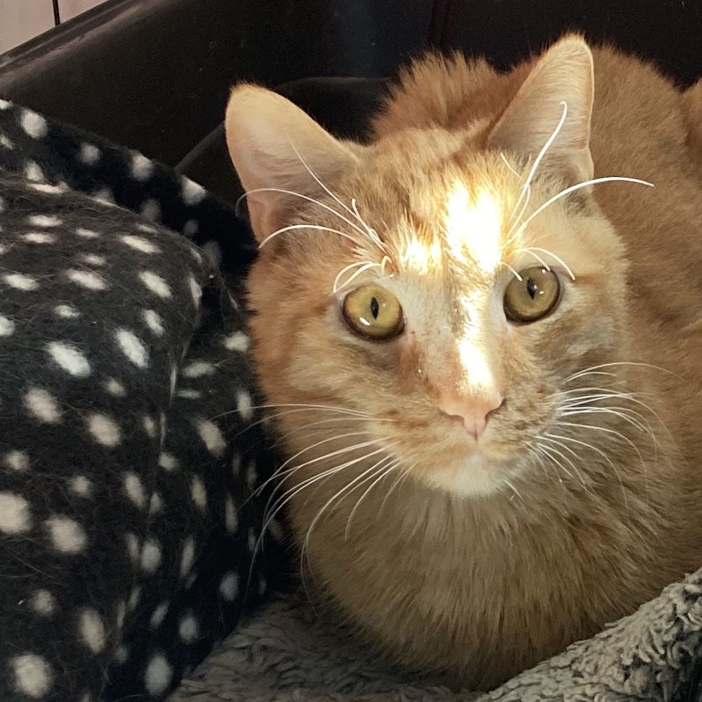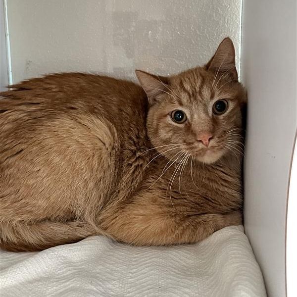 Silvio is a young adult orange tabby with a personality as bright as his sunny coat. With his adorably round face and chipmunk-like cheeks, he always looks like he’s storing up a little extra sweetness for you. True to his orange-cat reputation, he brings the right amount of mischief. Known for their amusing antics, who doesn’t love an orange cat? With him around, your home will never be boring — just warmer and brighter.
