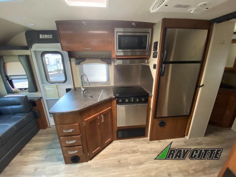 Travel the country in comfort and style with this Lance Camper travel trailer! Whether you're backpacking in the mountains or taking in the beautiful New England scenery, you will thoroughly enjoy having a warm and inviting place to sleep each night with the booth dinette, L-shaped sofa, and queen-size bed in the rear private bedroom. You will also be excited to find a full kitchen where you can fix delicious meals for even the pickiest of eaters, and the full bathroom will make certain that you have everything you need to clean off the dirt and grime after a long nature hike.