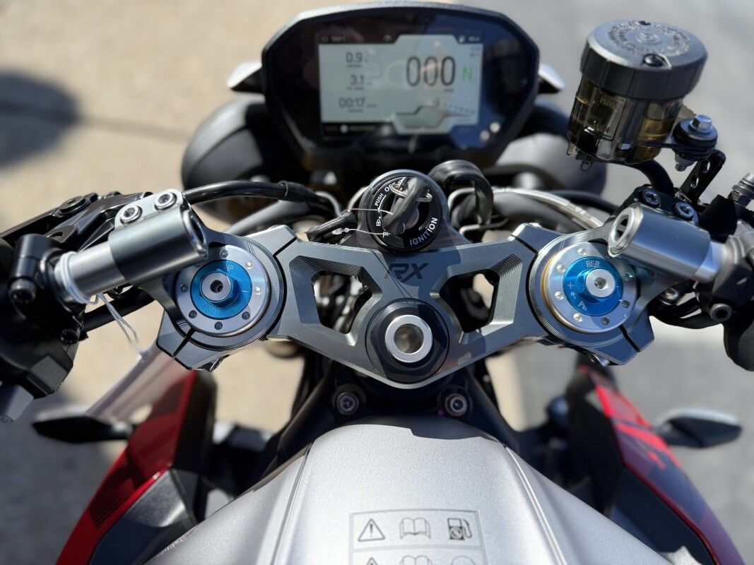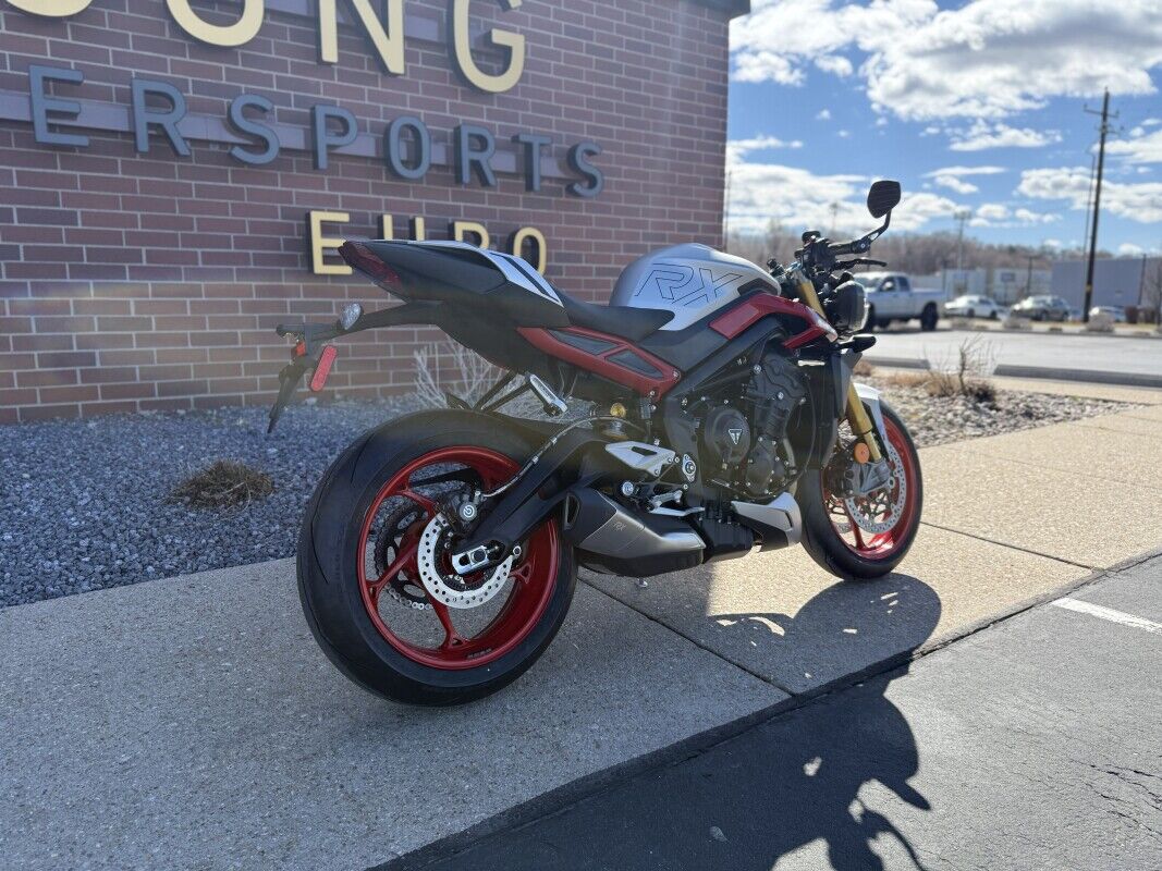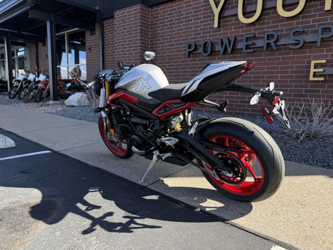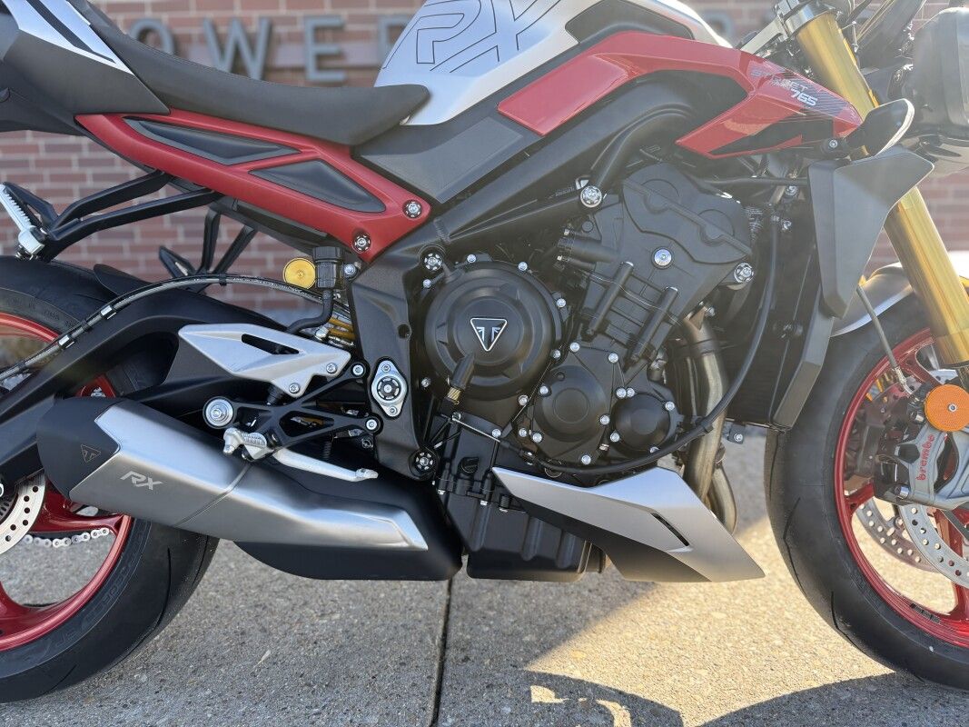 The ultimate track variant ULTIMATE TRACK PERFORMANCE Category leading power from the same 765cc Triple that powers the Moto2 grid giving you responsive, faster acceleration for ultimate track performance. PRECISION HANDLING Equipped with fully adjustable Öhlins NIX Upside Down Forks and STX40 RSU, clip-on handlebars and race ready components for precise handling. ICONIC STREET TRIPLE DESIGN The signature Street Triple design gets the RX treatment with a striking and sporty livery with bold RX branding. THE ULTIMATE PACKAGE Race ready technology with designated track modes and ride enhancing specification combine for the ultimate performance focused package.