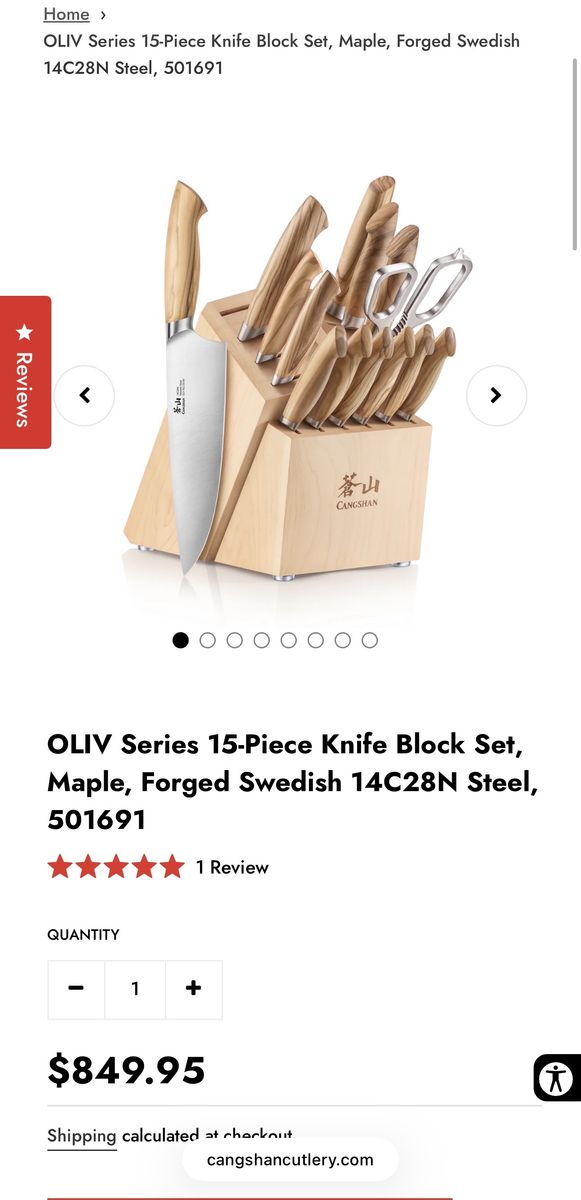 OLIV Series 15-Piece Knife Block Set, Maple, Forged Swedish 14C28N Steel, 501691