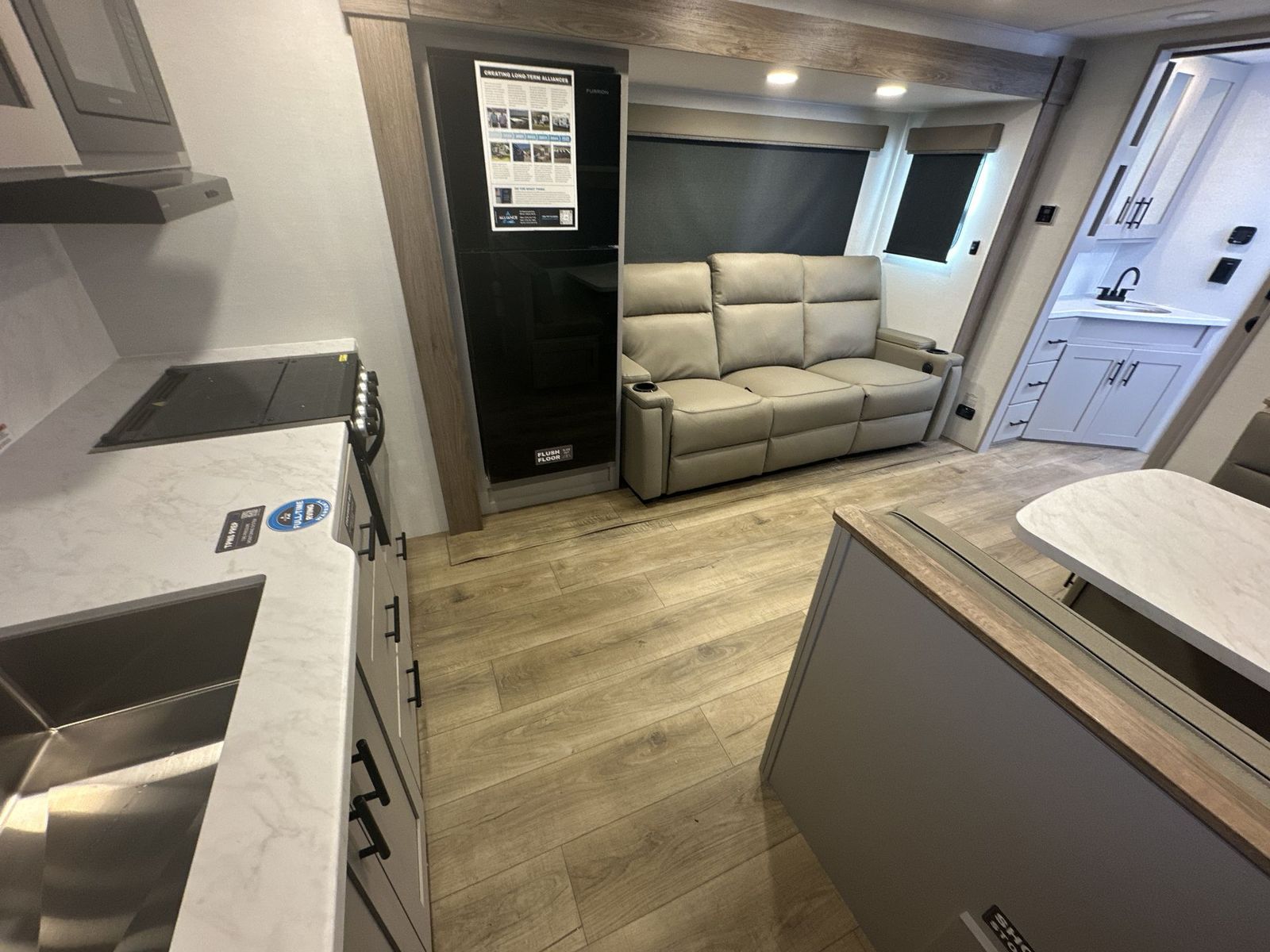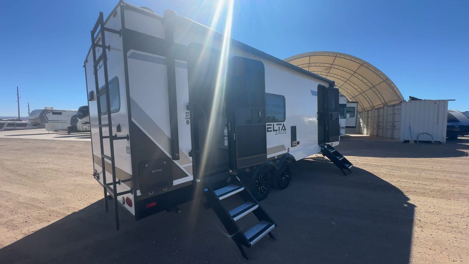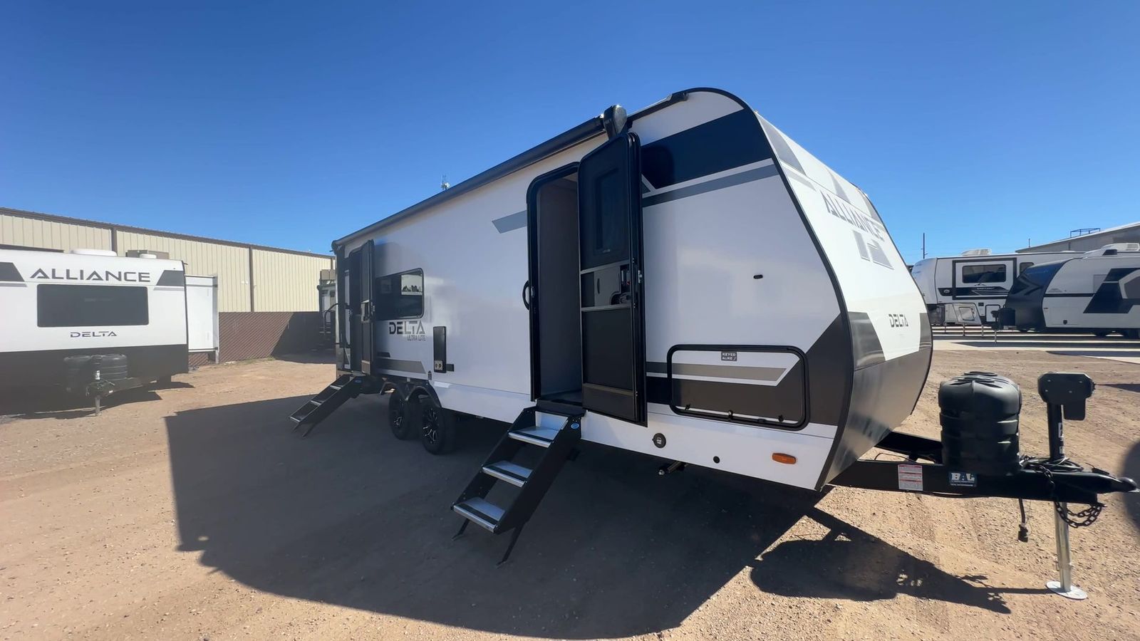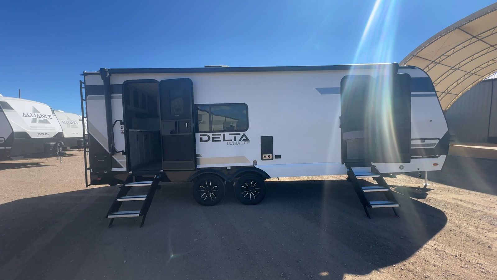 Alliance RV Delta Ultra Lite travel trailer RK234 highlights: Walk-Thru Bath 19' Awning Booth Dinette 10 Cu. Ft. Refrigerator 2" Rear Accessory Hitch You'll love camping in this rear kitchen travel trailer with generous counter space and overhead storage for spices, dishes, and more. You can dine each day at the booth dinette or relax on the sofa slide out, which will provide more floor space. The spacious walk-thru bath includes a 30" x 36" shower, toilet, and vanity so you can clean up each day. Head to the front master bedroom where you can sleep soundly on the walk-around queen bed with dual nightstands and wardrobes. The second entry door is also found in this room so you can slip out for an early morning run! The Delta Ultra Lite travel trailers by Alliance RV are perfect for those looking for a lighter tow weight! The fully functional oversized atrium windows will let more natural light in, and the carpet free interior will be appreciated after a weekend at the lake. There are also magnet catches on all cabinets, soft close hidden hinges, and residential can style LED ceiling lights. The exterior includes multiple location hot/cold spray ports, exterior switches for awning controls, and Goodyear Endurance tires. Start a new adventure today in a Delta Ultra Lite travel trailer!