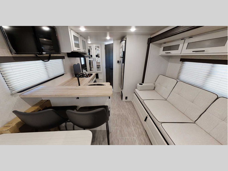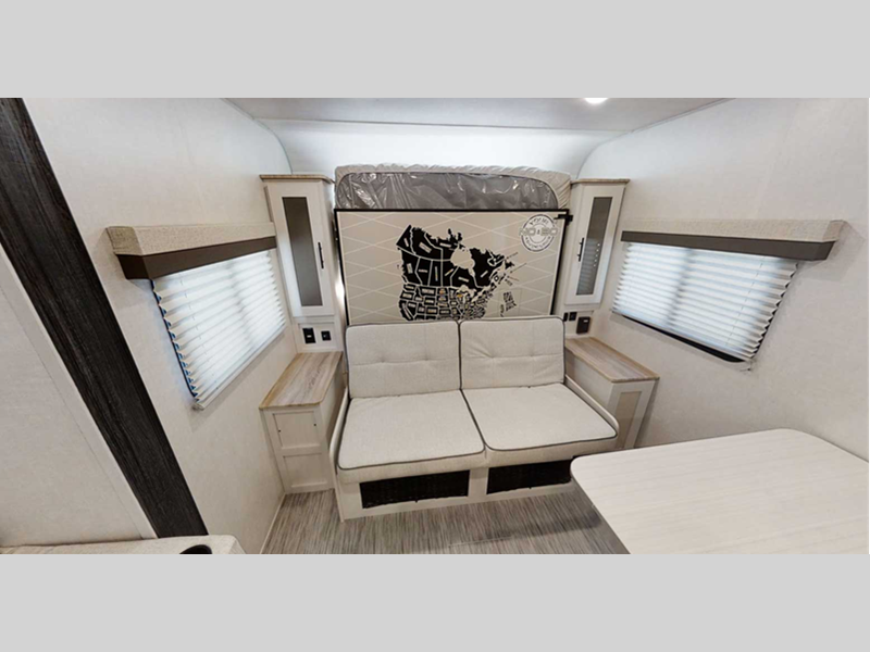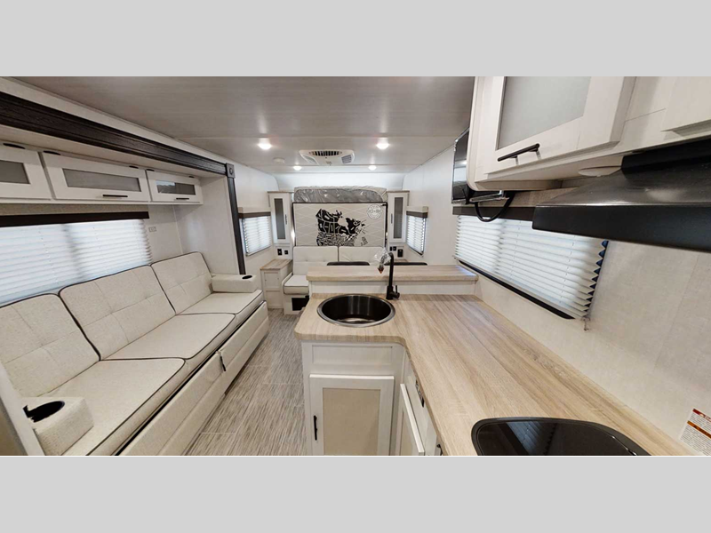 Make your camping dreams come true with this No Boundaries travel trailer! As you enter this unit, you'll notice an entryway closet/pantry that you can use to store your coats and scarves, and the full bathroom is also right in front of the entry door for easy access when you need it. The kitchen has great amenities, like a two-burner glass recessed cooktop, a refrigerator, and a sink, and there is a breakfast bar with two stools where you can sit down with a fresh plate of eggs each morning. When you fold away the Murphy bed in the morning, you'll have a sofa to rest on throughout the day, plus an additional sofa within the slide out. And you can use the JBL FLIP portable Bluetooth speaker to listen to some music while you enjoy the day. Add the optional Un-Plugged package to take your camping experience to a whole new level. Some features included in this package are 600 watts of solar, premium Lithium-ion batteries, a 3,000 watt inverter charger, a high-efficiency A/C, and more.
