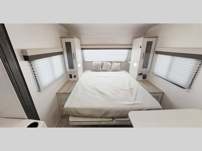 If you want to break free from the travel constraints of standard trailers, then you must choose the Forest River No Boundaries travel trailer or toy hauler because they are rugged and ready for adventure! These trailers offer you a Rhino Rack RVT track to bring along your kayaks or fishing equipment, high-performance vinyl furniture to relax on, a USB charging station to power your electronics, and a Cold Weather Package to keep you warm during the cold season. You'll also have satin matte-finish six-lug wheels wrapped in all-terrain tires for an exceptional ride.