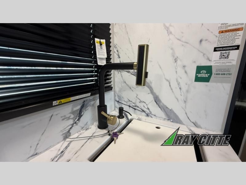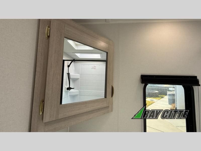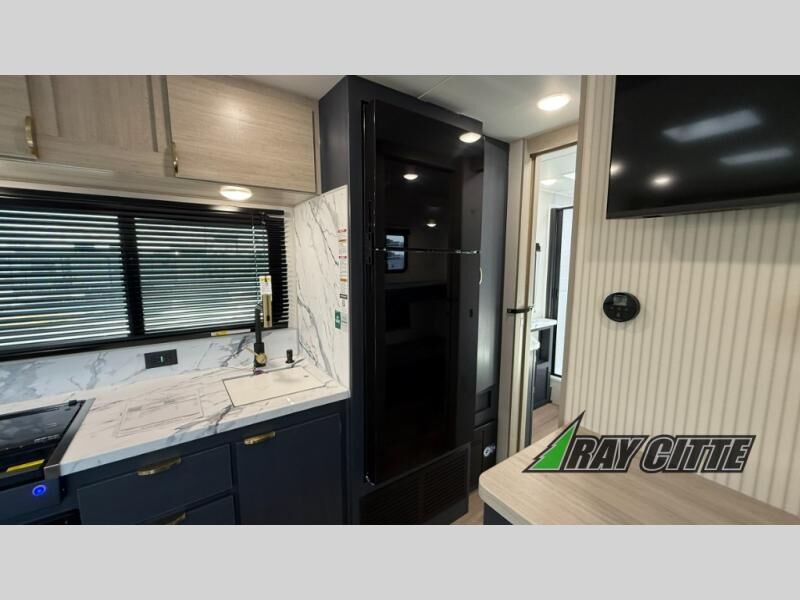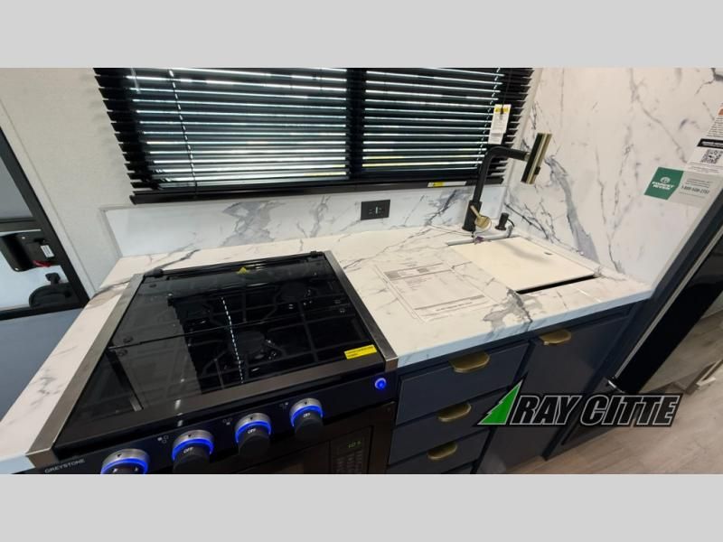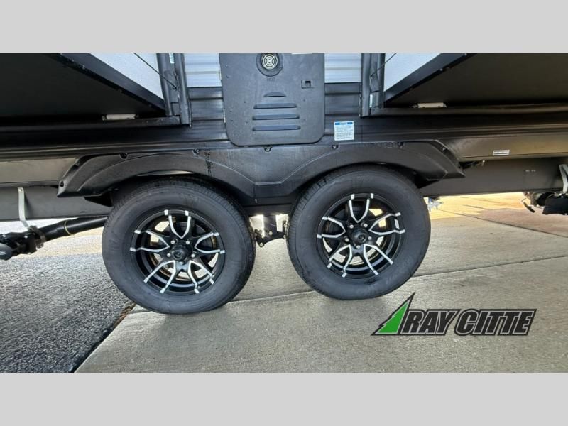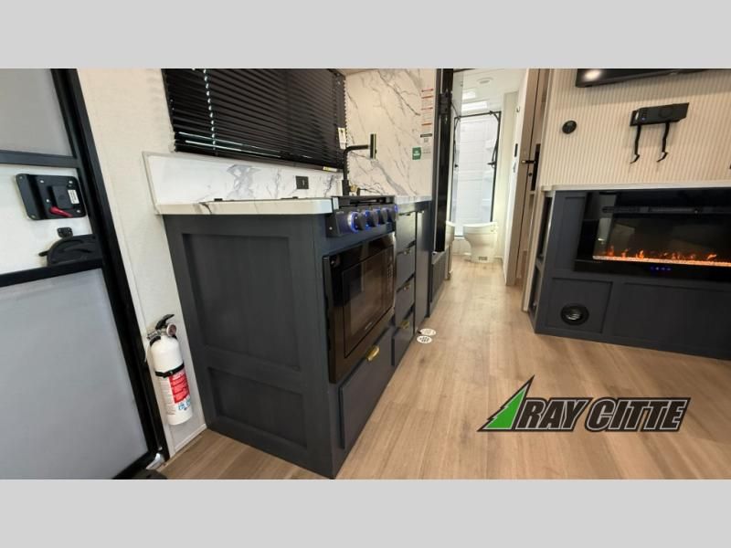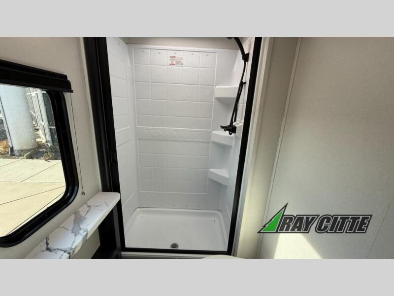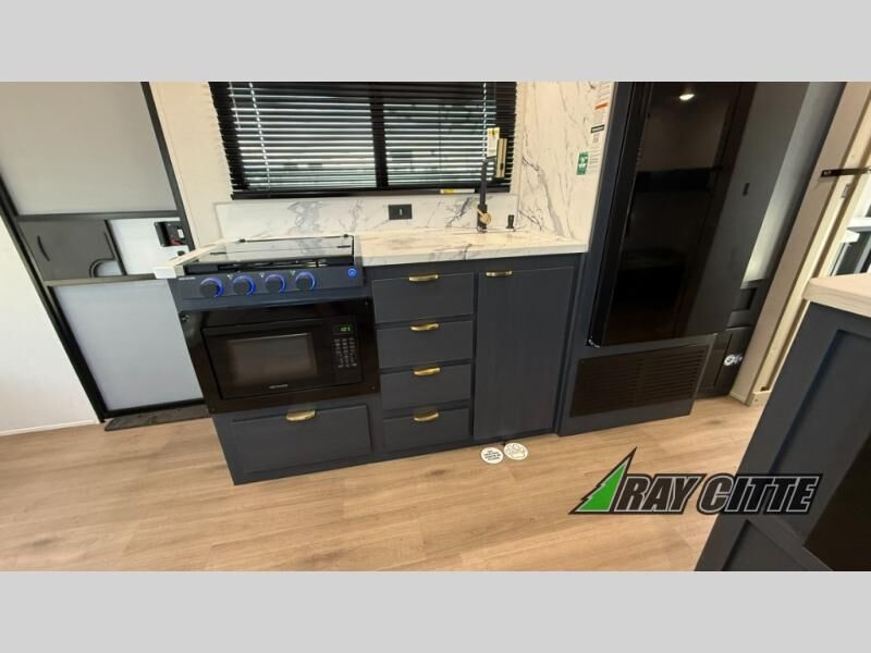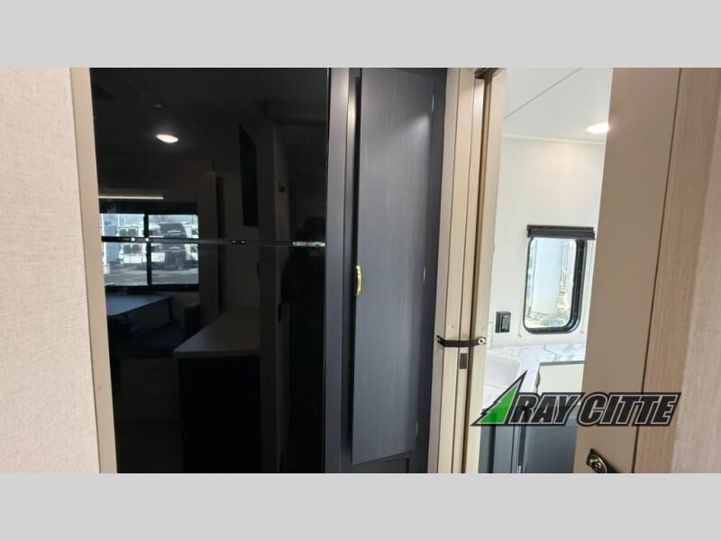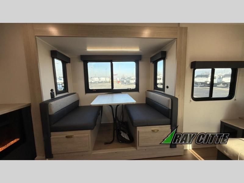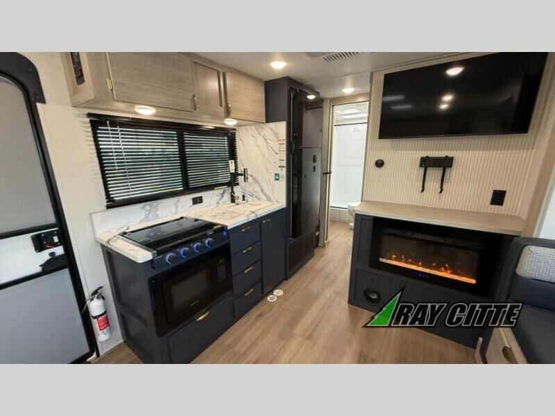 You will love this travel trailer’s features that will make you feel right at home! Starting with a desk for remote work or planning adventures, bunk beds for the kids, a comfy jack-knife sofa for lounging, and a booth dinette for meals or games. Pantry, fridge**, two-burner cooktop**, and overhead cabinets for cooking and storing grub. Furthermore, the Murphy queen bed tucks away for extra space, and the wardrobe keeps clothes tidy. Plus, this unit boasts a full bathroom to start and end each day fresh, and an exterior awning, offering extra space to hang out.