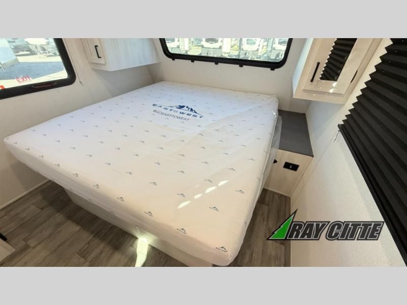 Each one of these EAST TO WEST Longitude travel trailers blends modern amenities with quality construction! They have a 5" vacuum bonded crowned roof, 2" sidewalls with fully laminated side boxes and endwalls, and Azdel both on the inside and outside of the sidewalls to protect you from the elements. The enclosed and heated underbelly extends the life of your unit, and the insulated forced air heated floors will keep your feet nice and warm. A universal docking station, a high output on-demand tankless water heater, and an amplified TV antenna with Wi-Fi prep makes life at the campground easier. You can rinse your feet or bikes off with the outside shower that comes with hot and cold water. The diamond plate front rock guard will hold up through all of your great adventures. Come find the one that suits you best!