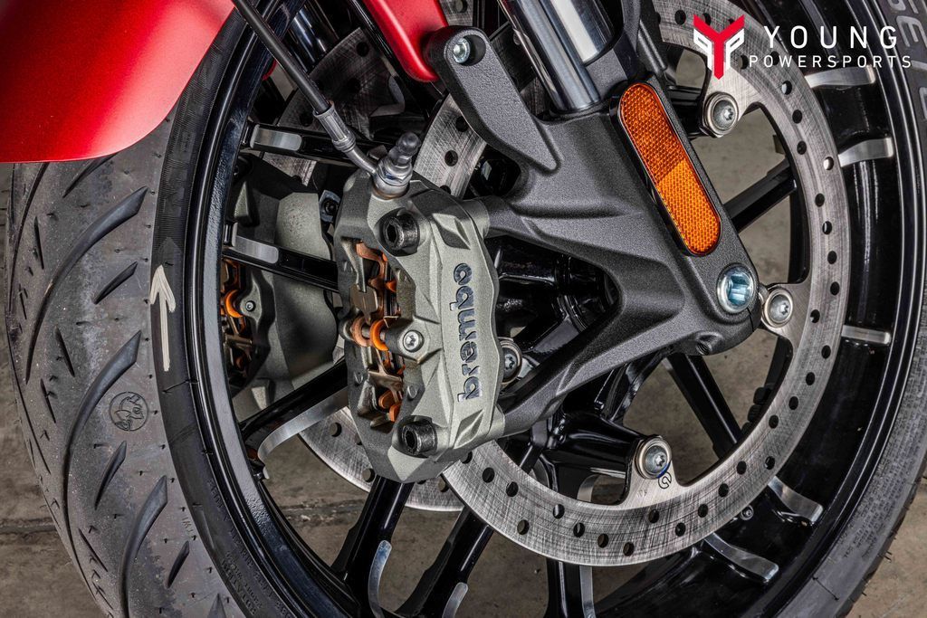 Forward controls, adjustable 23-click piggyback shocks, lightweight, and responsive inverted KYB® forks with Brembo® brakes provide a direct feel at the lever and pedal with incredible stopping power, help delivering curve-hugging handling and unyielding stability for you to carve every corner.