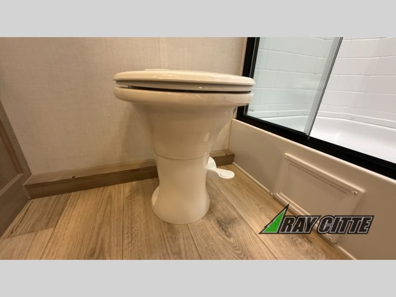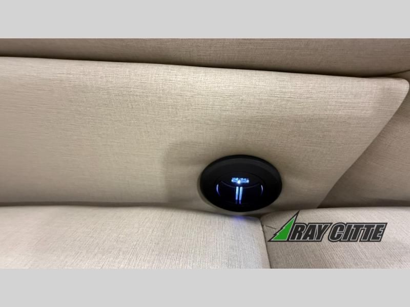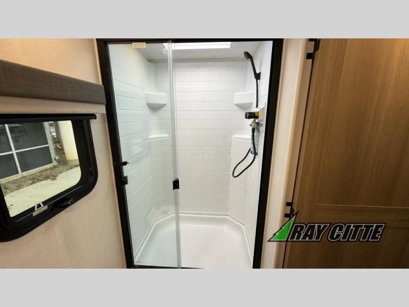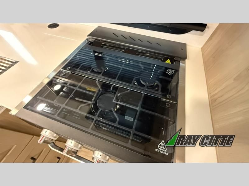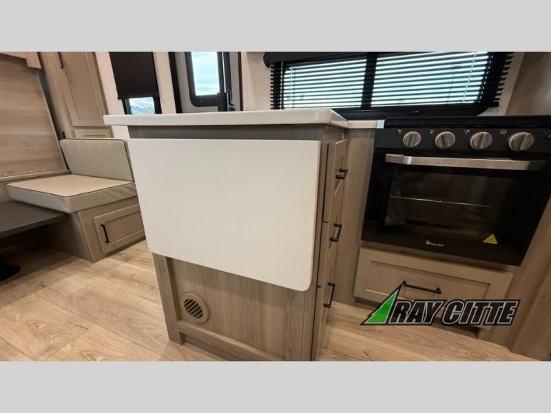 This versatile travel trailer is perfect for weekend camping trips to your favorite park! Once you arrive at your site, you can unload the pass-thru storage, then put out the 15' power awning and relax in your camp chairs. The cooktop and microwave inside will let you make lunch when you get hungry, and there is a theater seat slide out if you want a comfy place to relax. There is also a 30" x 80" booth dinette up front where you can dine together and play games in the evenings, and when you're ready for bed, the 60" x 74" Murphy bed can be folded down over the dinette. This unit includes plenty of storage spaces, including dual bedside wardrobes, a kitchen pantry, and a linen closet in the full rear bath!