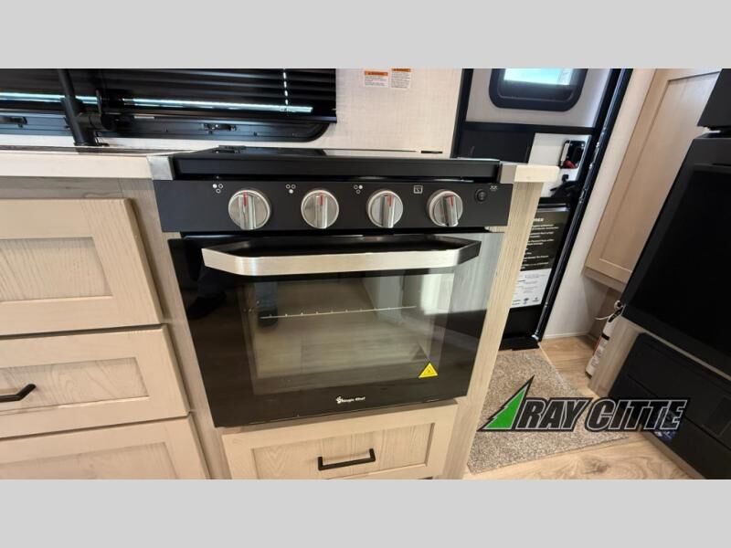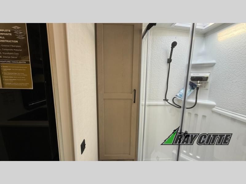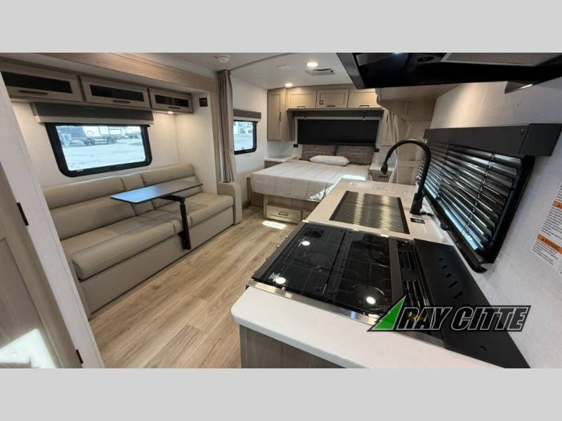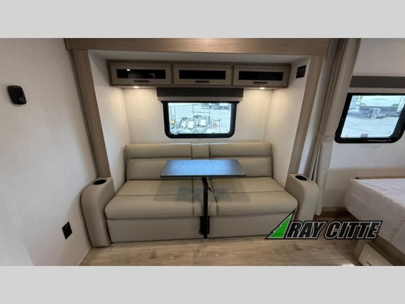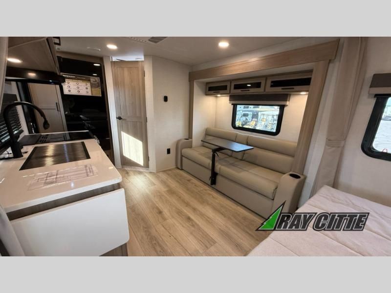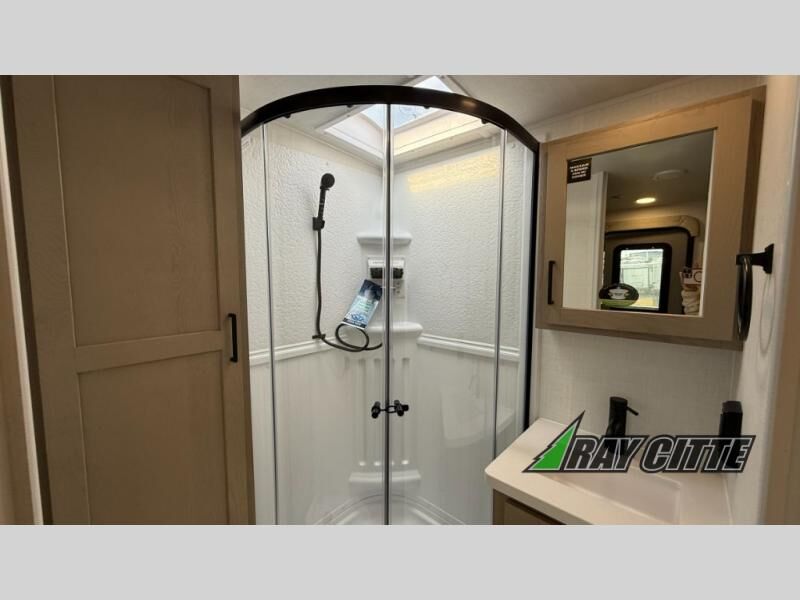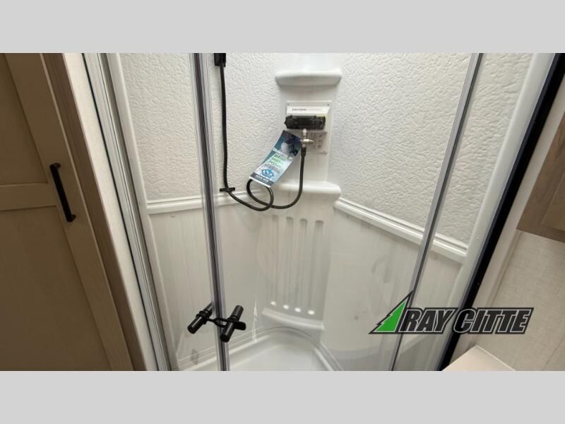 Wherever you decide to camp, you will love every minute in this cute couple's trailer. The sofa slide with a table will provide a place to relax, eat, and even sleep an extra guest if you have one, and the front RV queen bed includes a privacy curtain to enjoy your own space. There are dual bedroom wardrobes to keep your clothes tidy, and you'll find two pass-through storage compartments for your larger gear. Since there is a full bath on board you won't have to use the camp's facilities, and you can make it a movie night with the TV in the main living area!