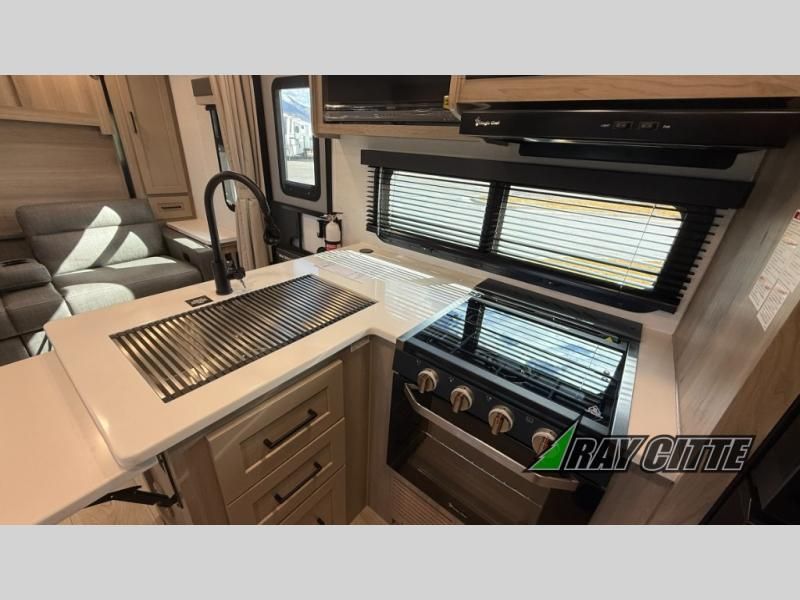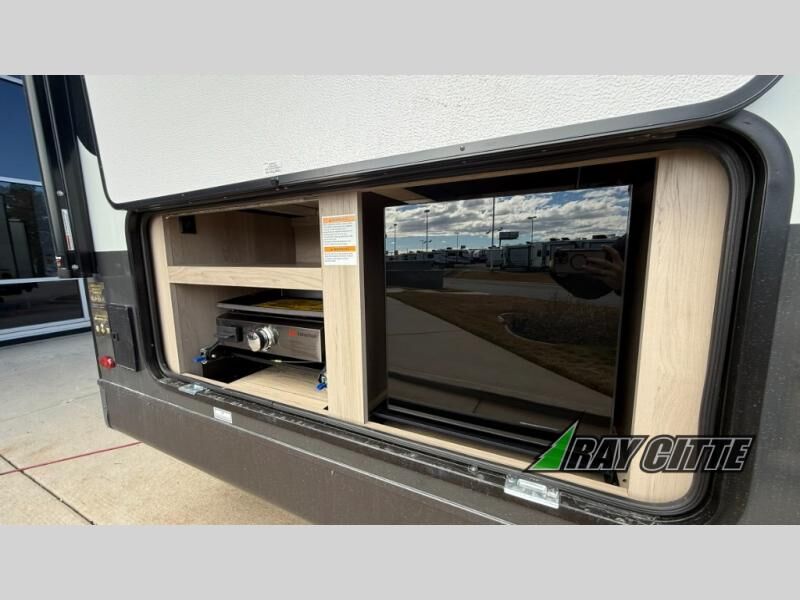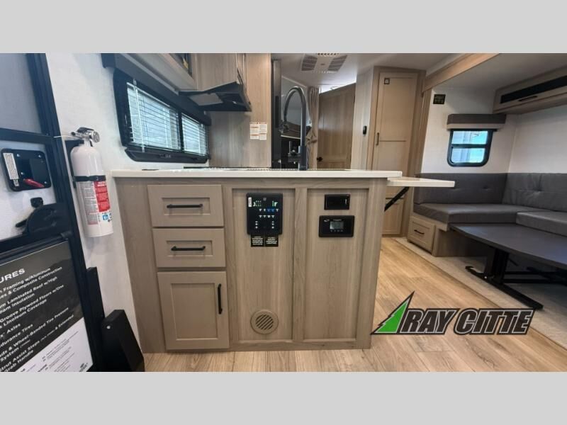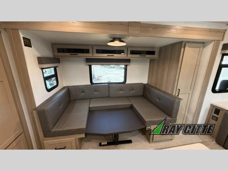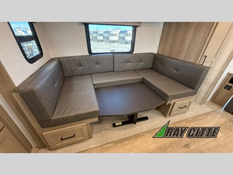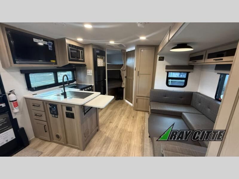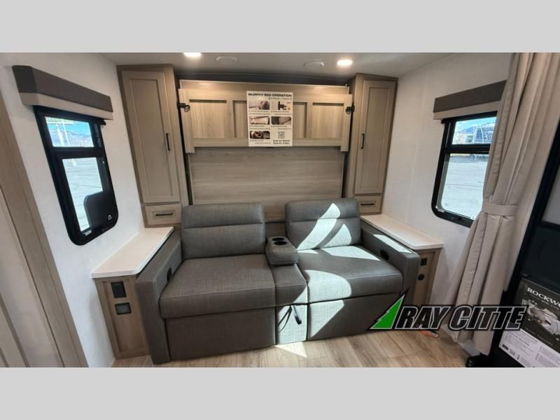 Finally, a lightweight travel trailer with double-size bunks for the kids or your guests! You'll find the versatile Murphy bed up front will be super convenient when you need more space to move around, and the 72" sofa will provide comfy seating space when the bed is put up. This model also includes a U-shaped dinette slide perfect to dine around, play games, and sleep additional guests. A TV in the main living area will allow you to watch your favorite shows in the evenings, or you may just find yourselves outdoors under the 18' power awning with LED lights. And check out the pass-through storage, plus additional exterior storage for your hiking gear!