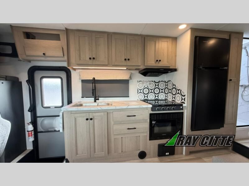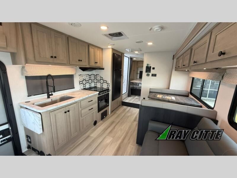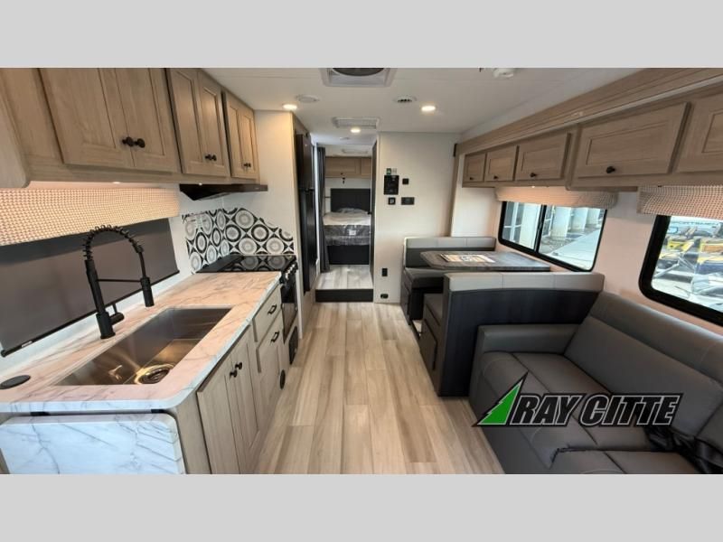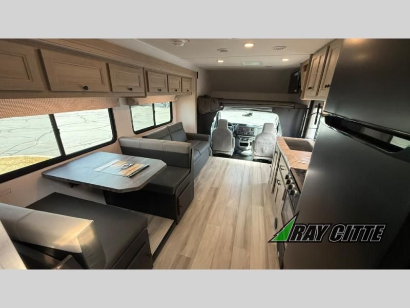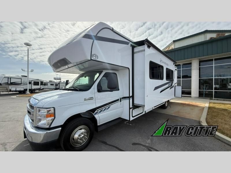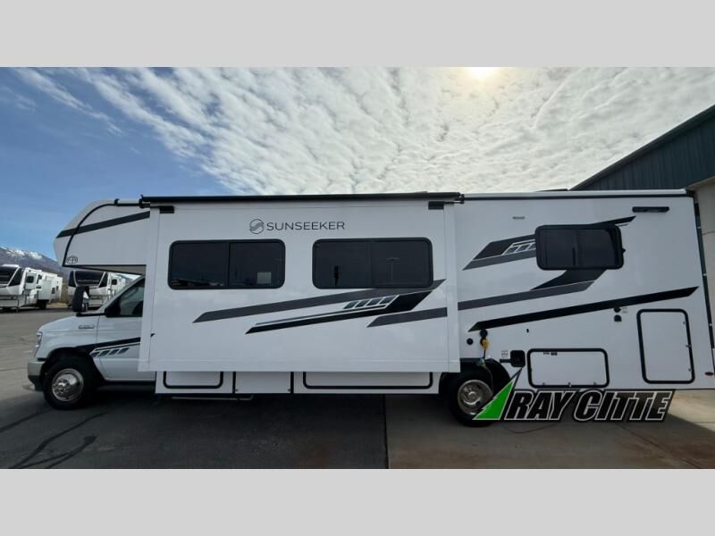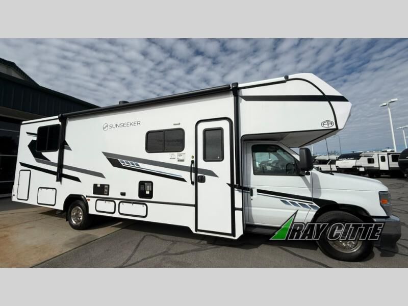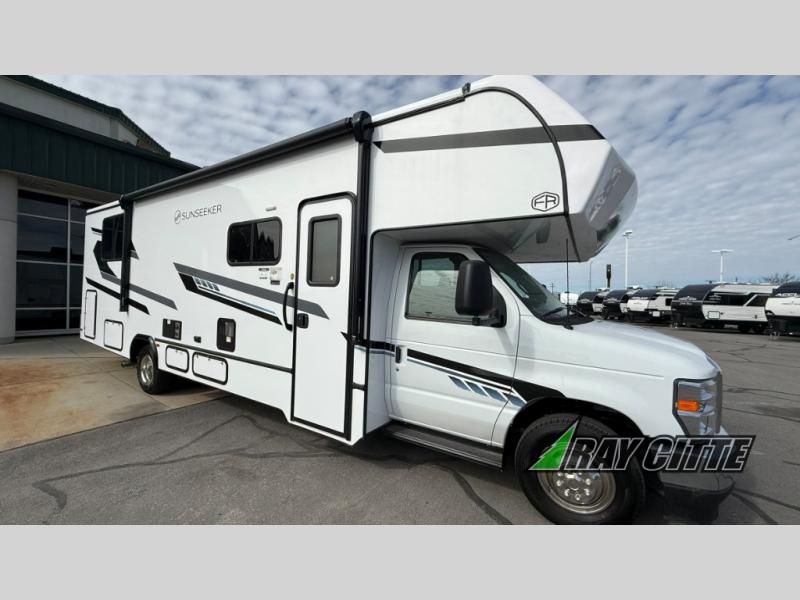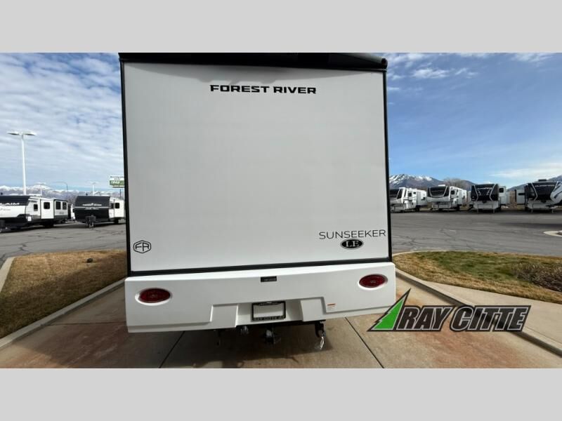 This Sunseeker LE Class C gas motorhome will allow you to travel to other states with your favorite people beside you! You can take a moment to enjoy a fresh cup of coffee in the morning while sitting at the booth dinette or on the sofa, or you can spend a little extra time creating a hearty breakfast in the kitchen on the recessed three-burner range. The 10.7-cubic foot refrigerator will store your cheese and milk, and the convection microwave will heat up leftovers with ease. The separated bathroom leads into the rear bedroom where you will find an RV queen bed with wardrobes on either side, and you can also head outside to enjoy the 15' 6" electric awning with LED lights before bed.