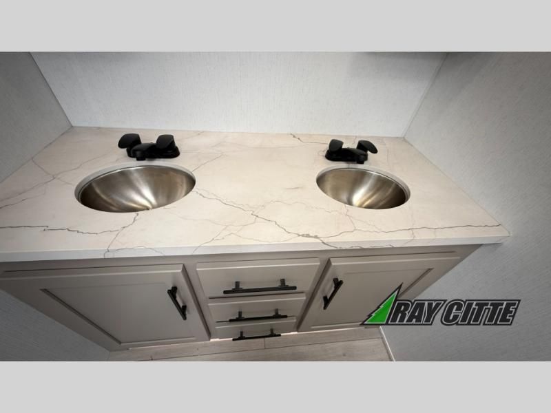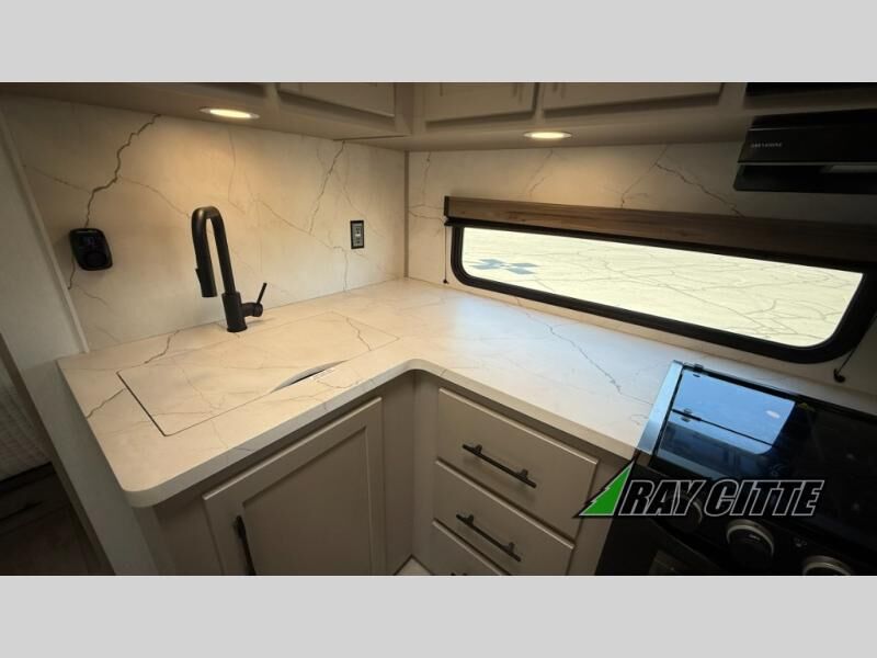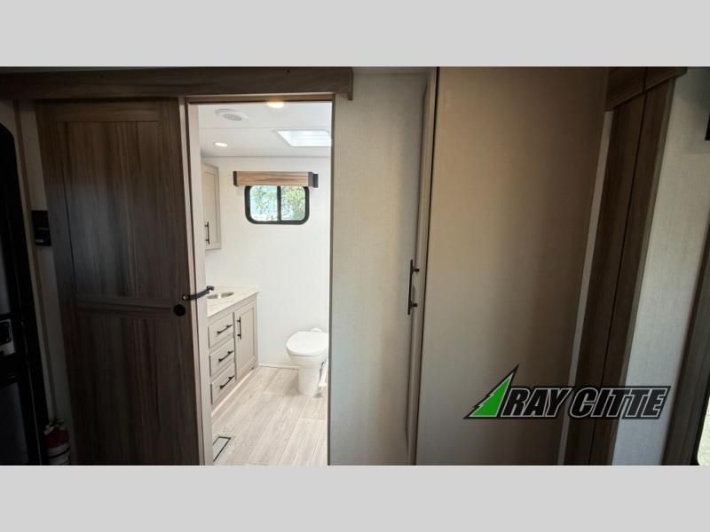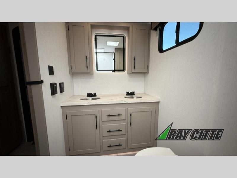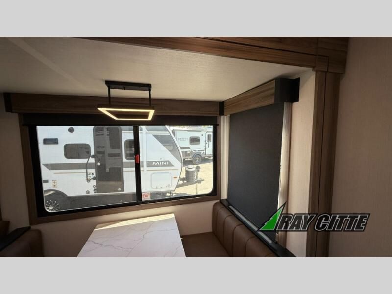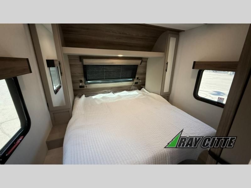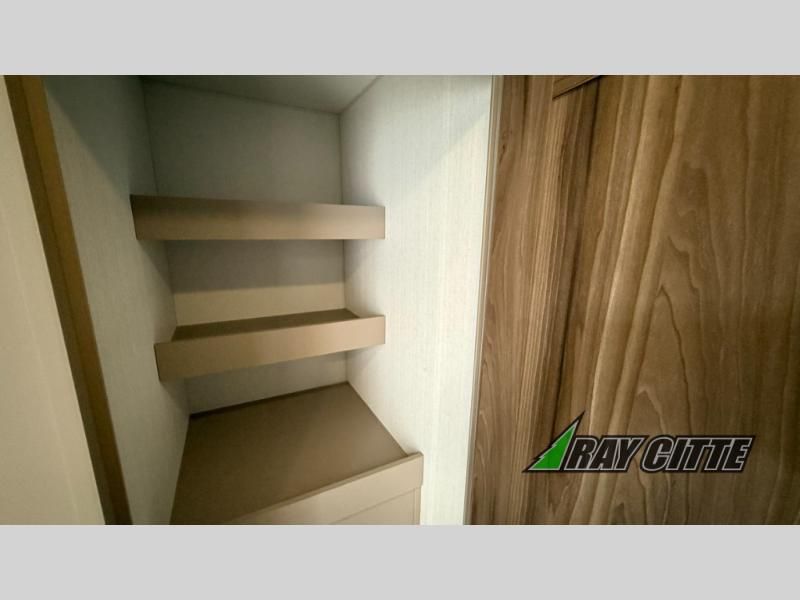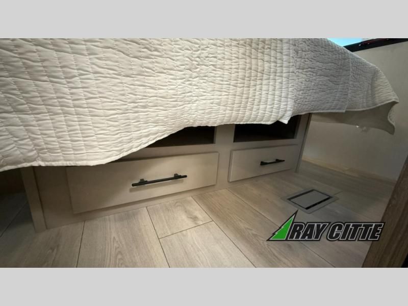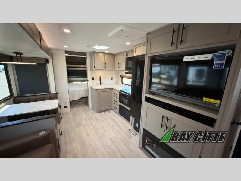 Your needs will be met and your desires will be fulfilled with this Connect travel trailer! Probably the thing you miss most when you camp is your comfortable bed back at home, and that's exactly why this trailer comes with a Serta Comfort foam king mattress in the private bedroom. The other thing you are prone to miss is your bathroom, and the full rear bathroom on this trailer is an excellent replacement with its 30" x 36" shower, skylight, linen closet, MaxxAir vent, porcelain foot-flush toilet, and dual sink vanity. Sit back on the hide-a-bed sofa and enjoy a night of relaxation in front of the LED TV and 34" fireplace. You can even grab a couple of drinks from the 10 cu. ft. 12V refrigerator, snacks from the walk-in pantry with coat hooks, or you can make it a fun evening by playing a game together at the booth dinette.