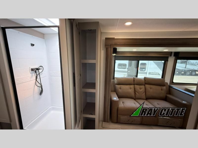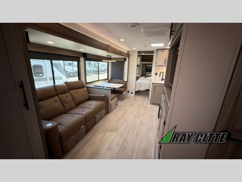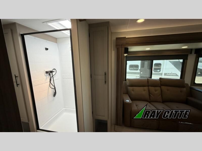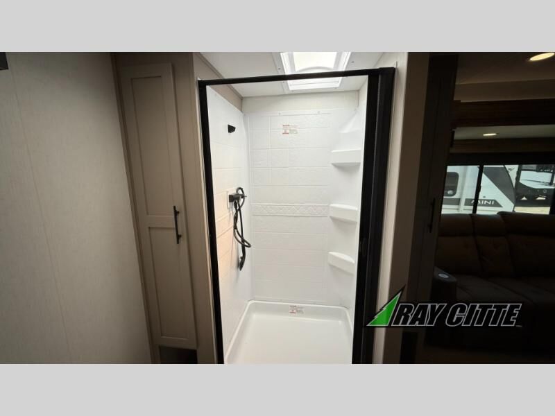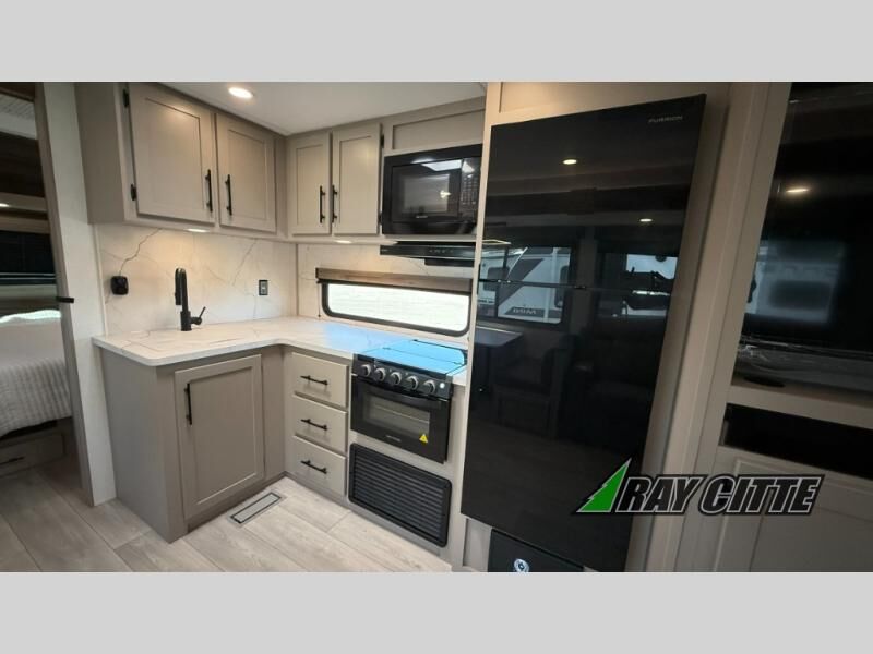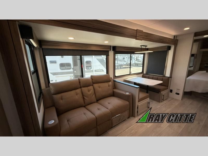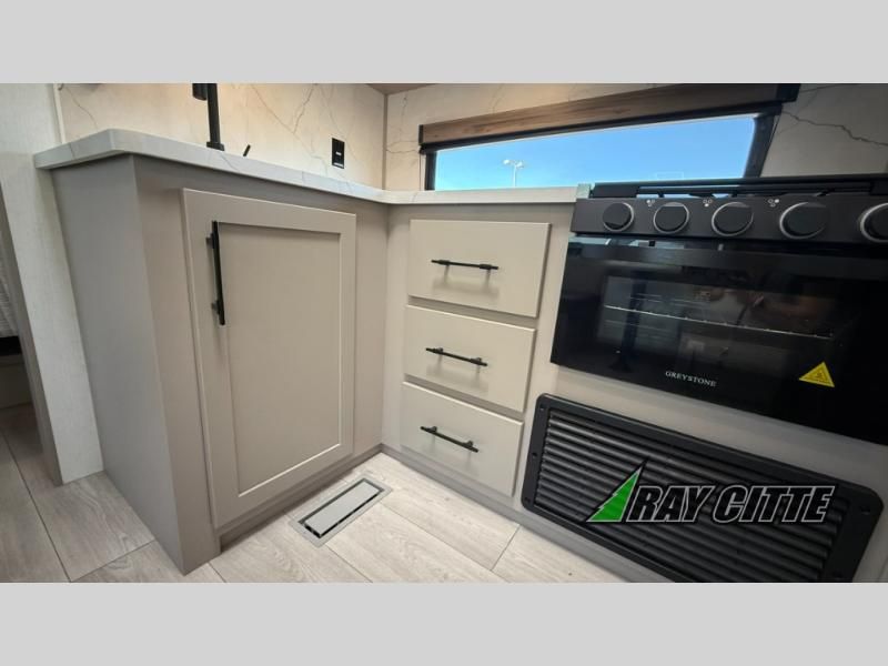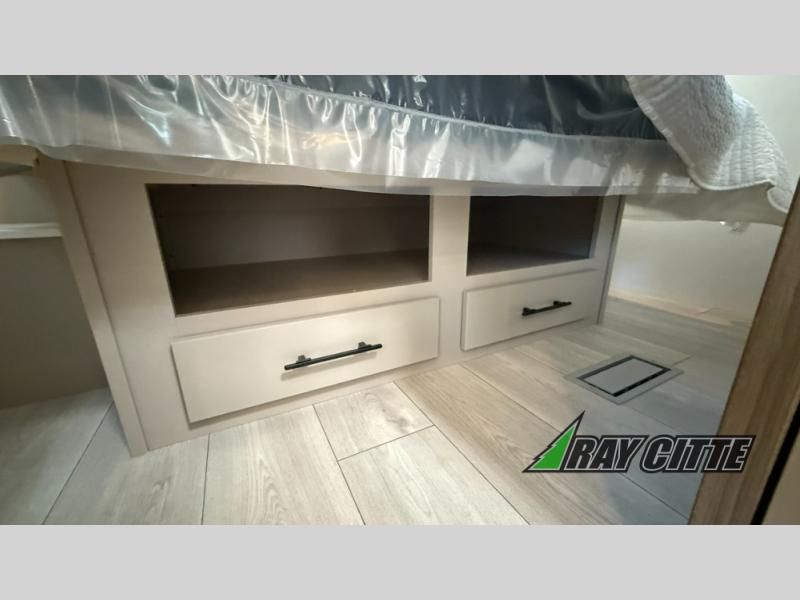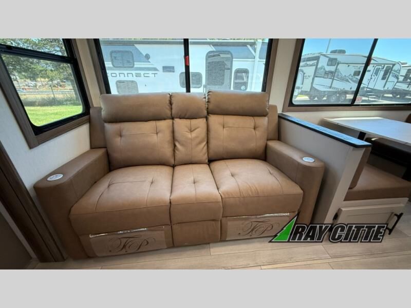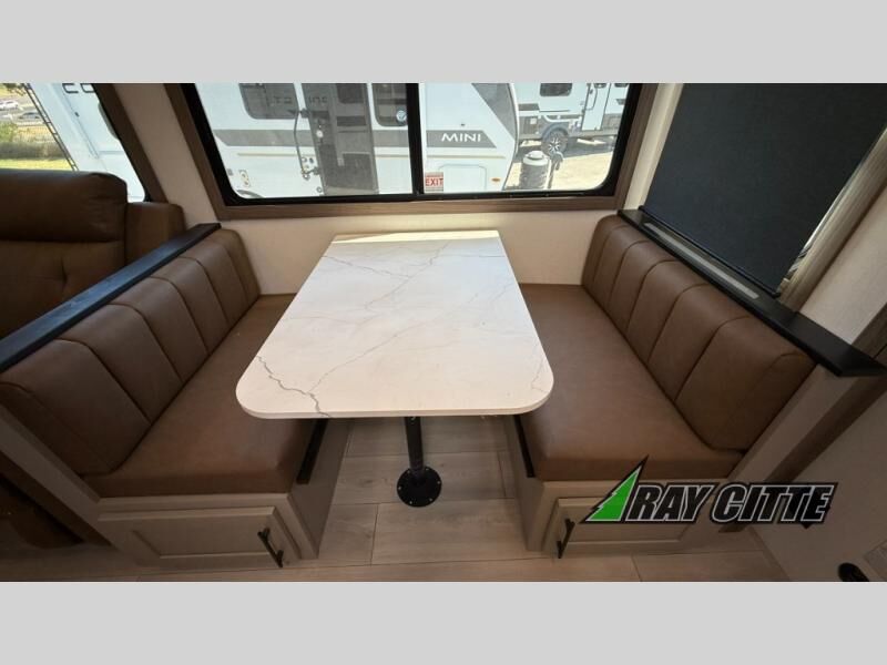 Your needs will be met and your desires will be fulfilled with this Connect travel trailer! Probably the thing you miss most when you camp is your comfortable bed back at home, and that's exactly why this trailer comes with a Serta Comfort foam king mattress in the private bedroom. The other thing you are prone to miss is your bathroom, and the full rear bathroom on this trailer is an excellent replacement with its 30" x 36" shower, skylight, linen closet, MaxxAir vent, porcelain foot-flush toilet, and dual sink vanity. Sit back on the hide-a-bed sofa and enjoy a night of relaxation in front of the LED TV and 34" fireplace. You can even grab a couple of drinks from the 10 cu. ft. 12V refrigerator, snacks from the walk-in pantry with coat hooks, or you can make it a fun evening by playing a game together at the booth dinette.