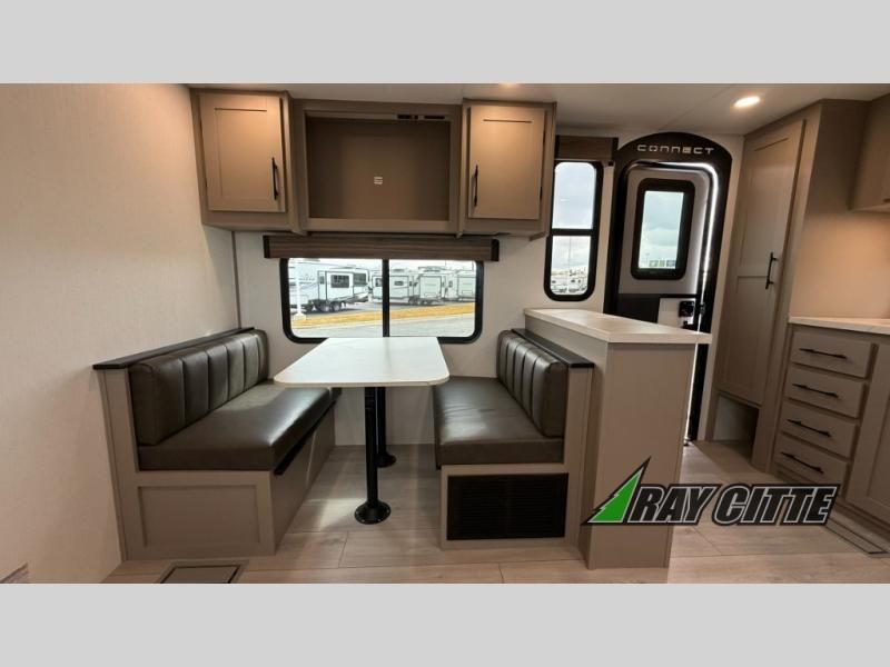 Each Connect SE travel trailer by KZ includes an NXG frame, which is a high quality, highly engineered frame that provides a lightweight yet strong foundation for your RV. The Climate package provides added insulation to extend your camping season year-round with a fully enclosed, insulated and heated underbelly to protect the tanks and pipes. Some top features include the 17-inch range with illuminated control knobs, the seamless countertops with a deep undermount stainless steel kitchen sink including a sink cover for added countertop space, and a black high-rise faucet. You will also enjoy the KZ Engage that is powered by OneControl to monitor and control the battery levels, the slide(s), the leveling system, the awning(s), plus the inside and outside lighting. Choose your favorite today!