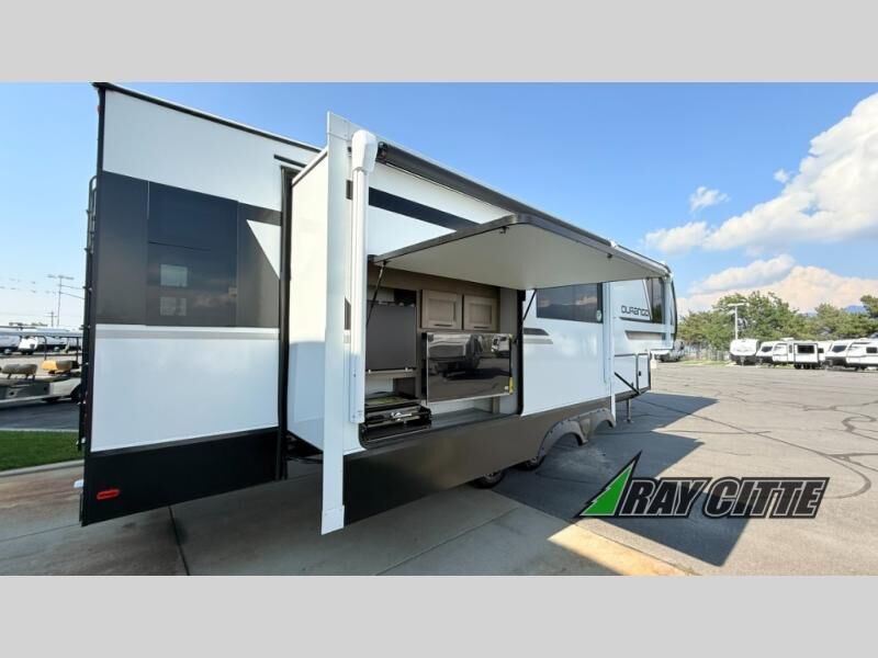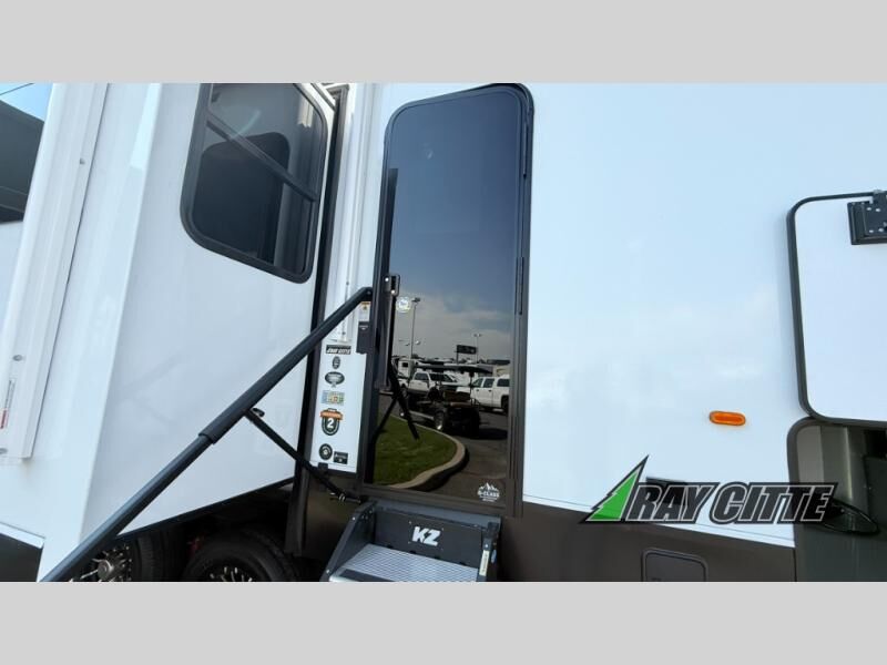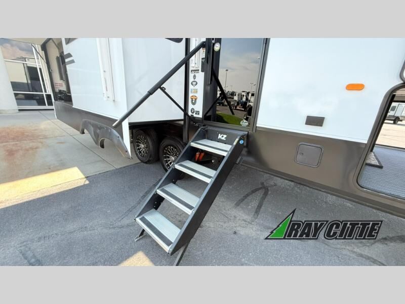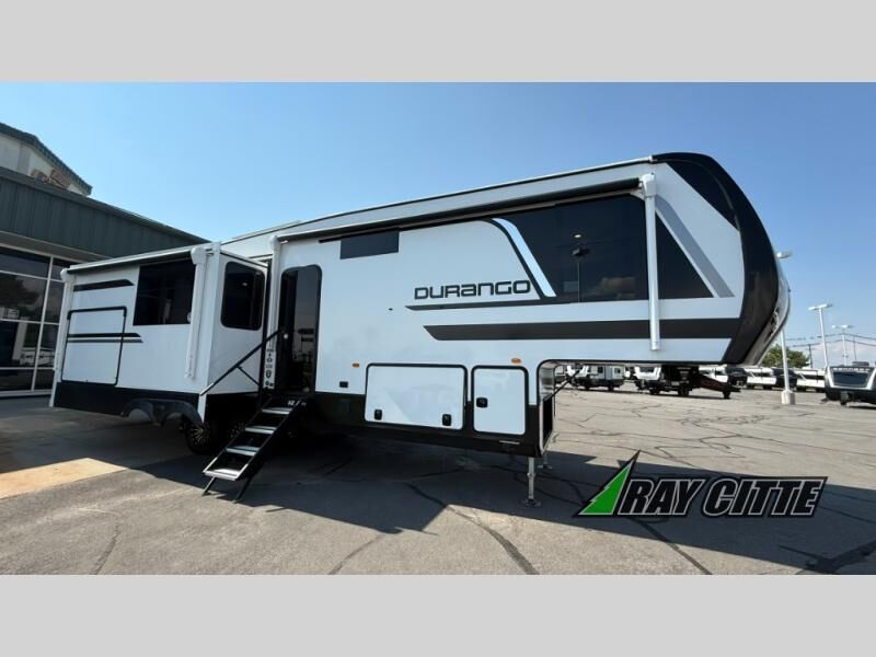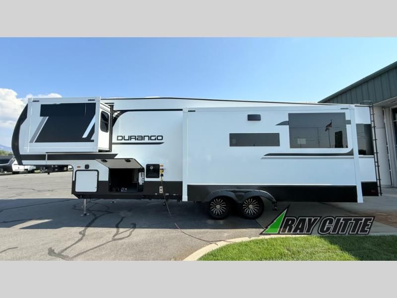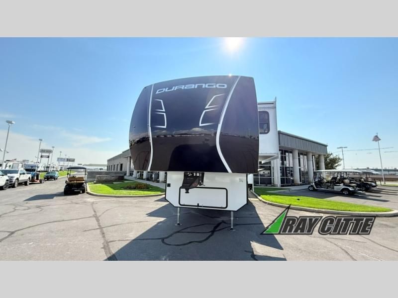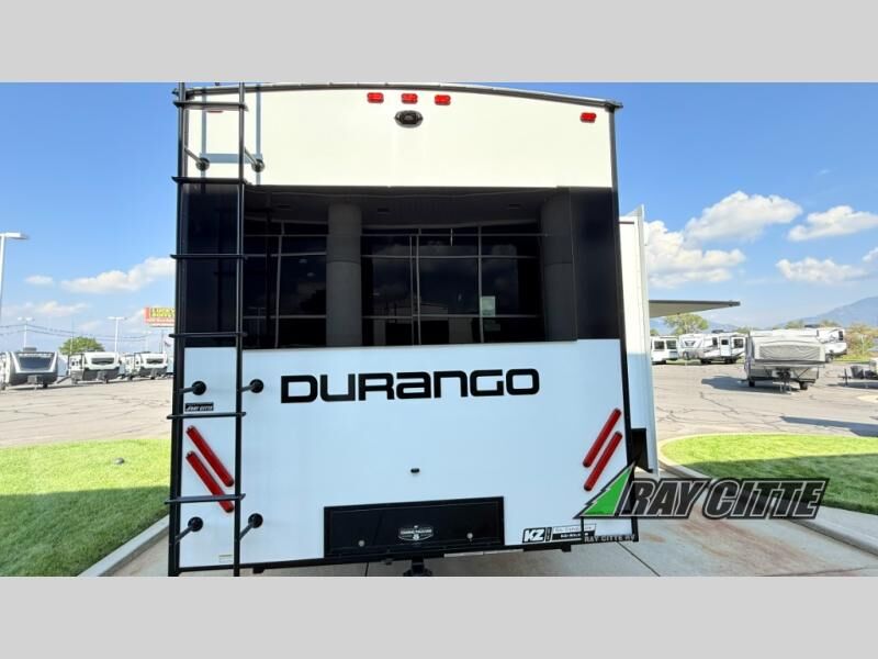 Enjoy full time living, an affordable price, and a wide body construction for more living space with every one of these KZ Durango light high-profile fifth wheels! These luxury units can be used all year round with the all-weather insulation package, the 3" x 14" foam-core in-floor straight-line heating system with a 35,000 BTU furnace, and the 15,000 BTU ducted roof A/C which optimizes the airflow by an average of 40% for better performance, cooling time, and reduction of noise. A few other construction features you will appreciate include a one piece, seamless walk-on Tufflex roofing material, Pex® in-floor heated waterlines, a Lamilux® gelcoat fiberglass exterior, and Dexter® axles with self adjusting brakes and height adjusting hangers. Inside, blancher cherry cabinetry, a king size bed, and smart TVs will have you feeling like you never left home!