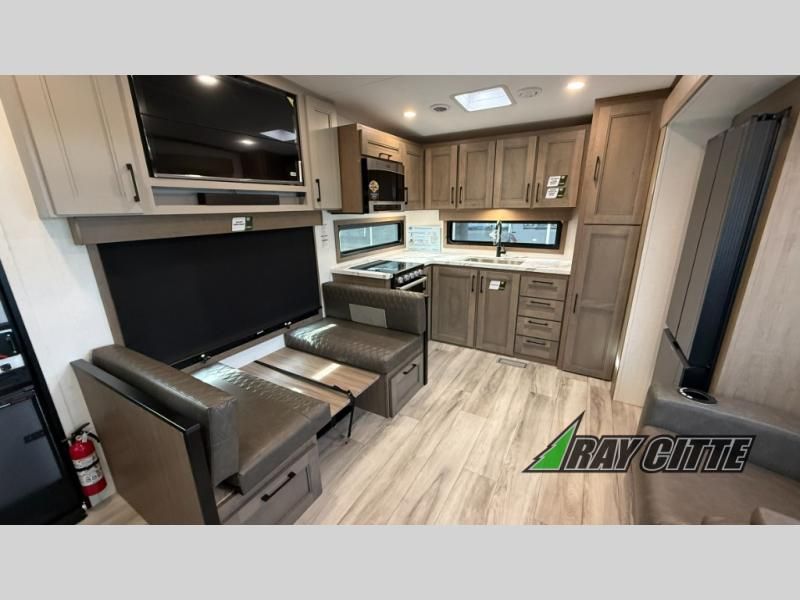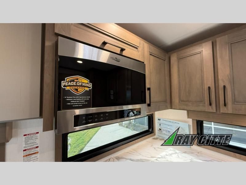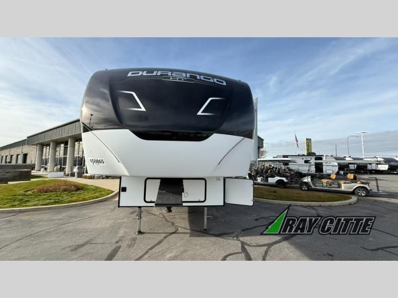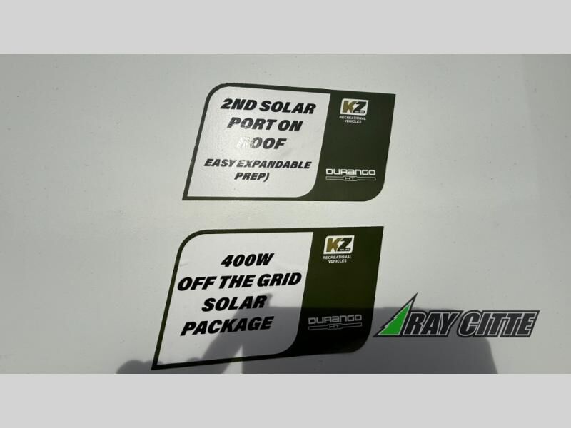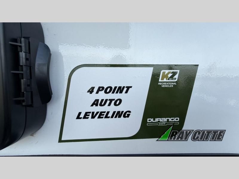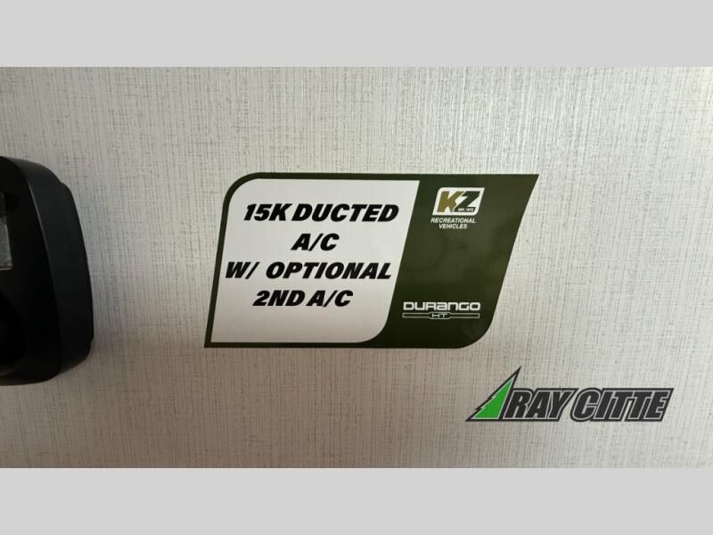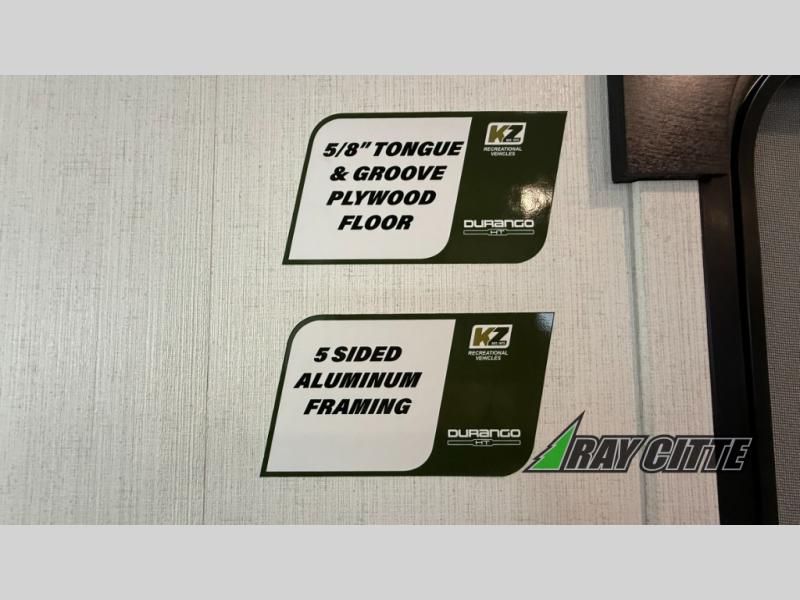 Each Durango Half-Ton fifth wheel by KZ provides lightweight towing with interior luxuries galore! Controlling the functions of your unit will be a breeze with the KZ Engage powered by OneControl that includes new integrated buttons & screen to control awnings, lights, tanks, and more. There are so many exterior conveniences to make each trip enjoyable, like the heated water convenience center, and the flip-up main entry steps! Durable construction includes Tufflex PVC roofing, Pex® in-floor heated waterlines & kitchen gray pipes, and a reinforced heavy-duty fiberglass front cap. The interior will feel more like a residential home with new blancher maple & morel fog cabinets, seamless countertops, a spacious shower, a redesigned front bedroom, and smart storage spaces! You can also customize your fifth wheel to fit your needs with available options, such as, generator prep, wireless backup camera prep, a 32" exterior TV with bracket, and so much more!
