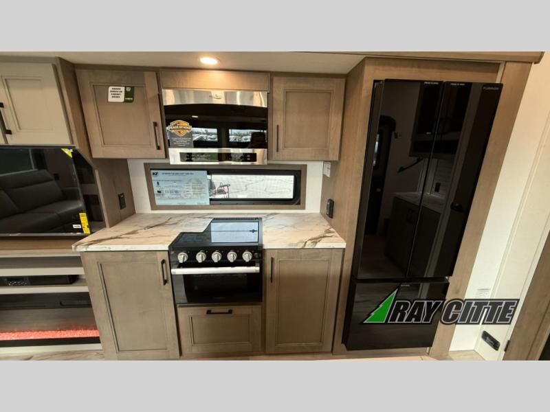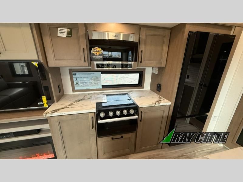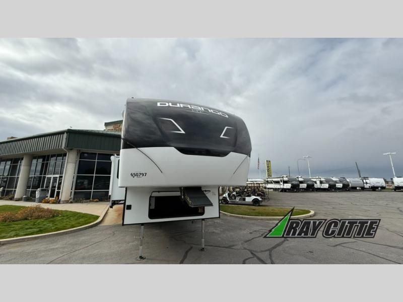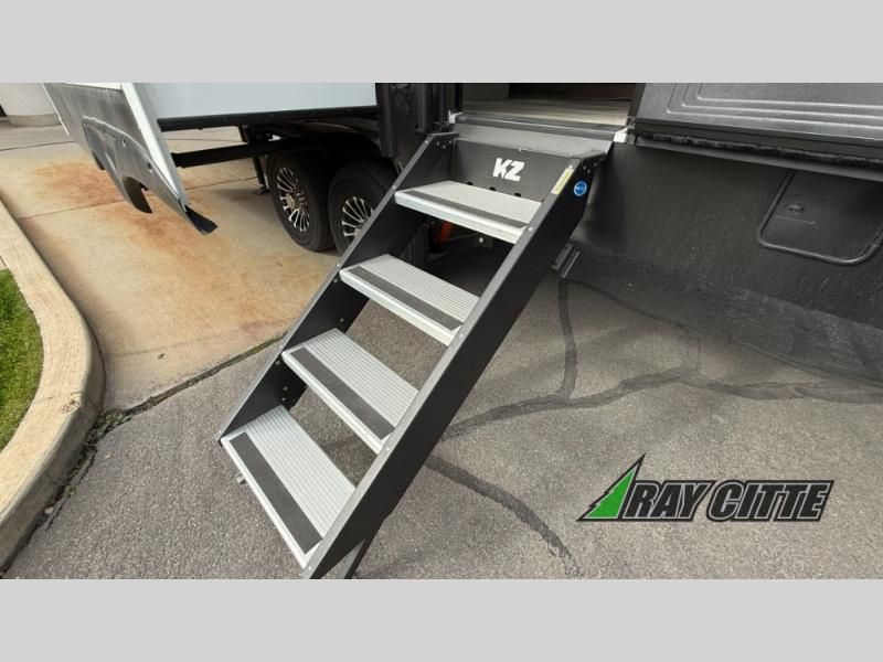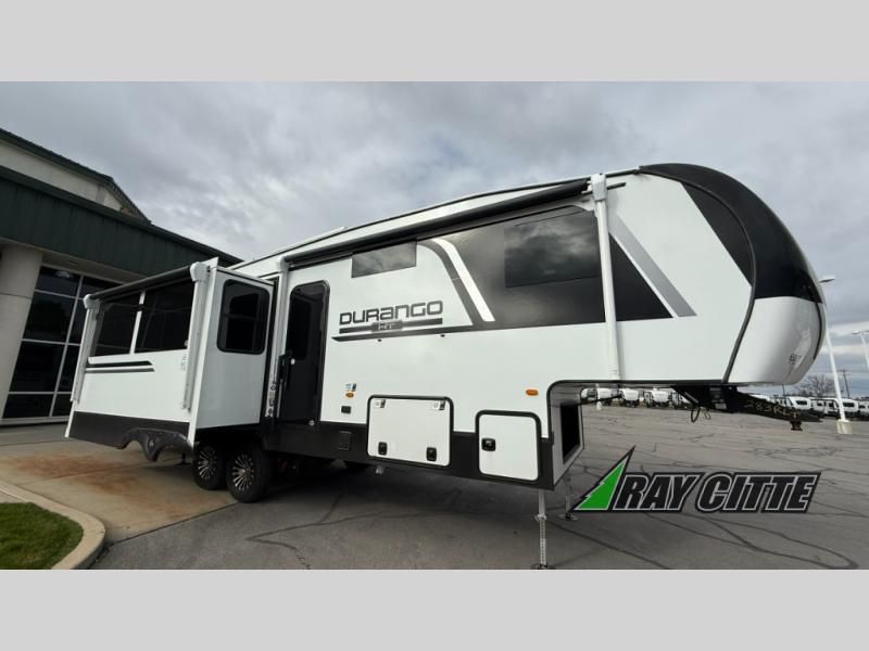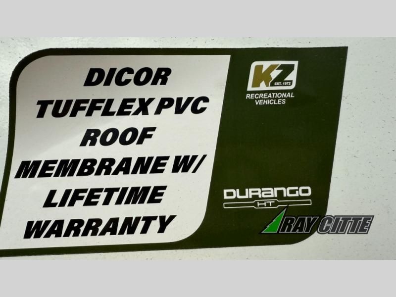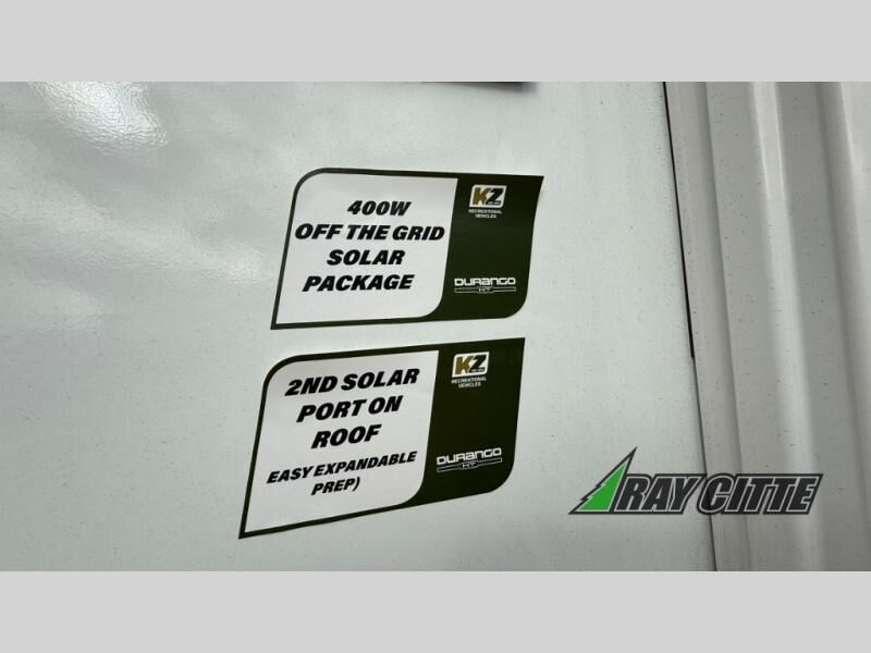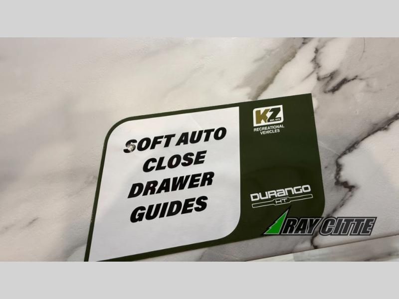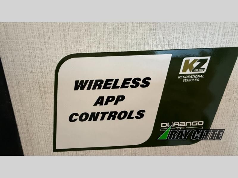 Each Durango Half-Ton fifth wheel by KZ provides lightweight towing with interior luxuries galore! Controlling the functions of your unit will be a breeze with the KZ Engage powered by OneControl that includes new integrated buttons & screen to control awnings, lights, tanks, and more. There are so many exterior conveniences to make each trip enjoyable, like the heated water convenience center, and the flip-up main entry steps! Durable construction includes Tufflex PVC roofing, Pex® in-floor heated waterlines & kitchen gray pipes, and a reinforced heavy-duty fiberglass front cap. The interior will feel more like a residential home with new blancher maple & morel fog cabinets, seamless countertops, a spacious shower, a redesigned front bedroom, and smart storage spaces! You can also customize your fifth wheel to fit your needs with available options, such as, generator prep, wireless backup camera prep, a 32" exterior TV with bracket, and so much more!
