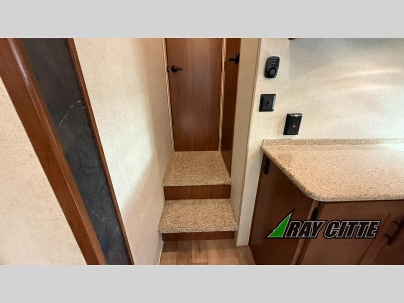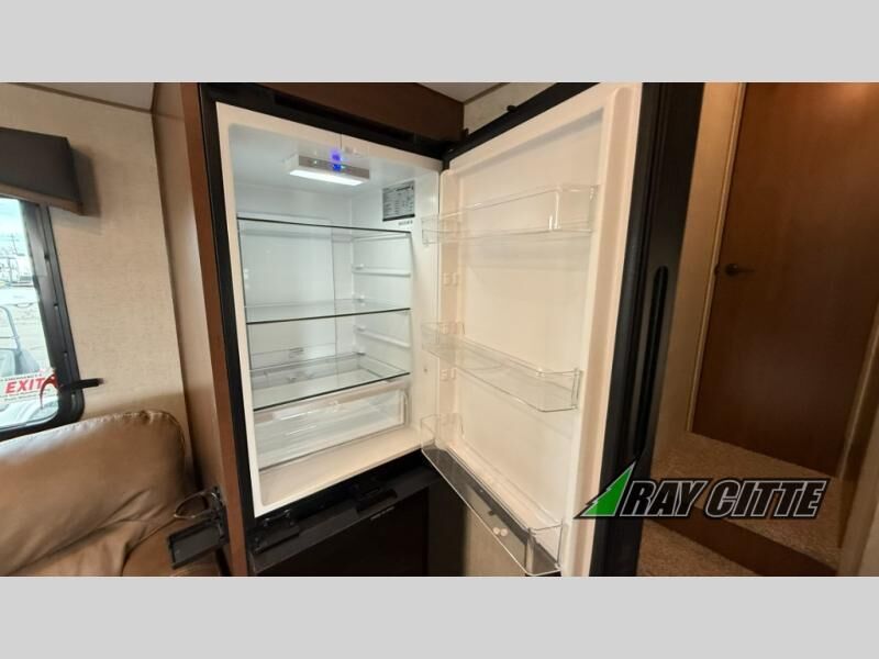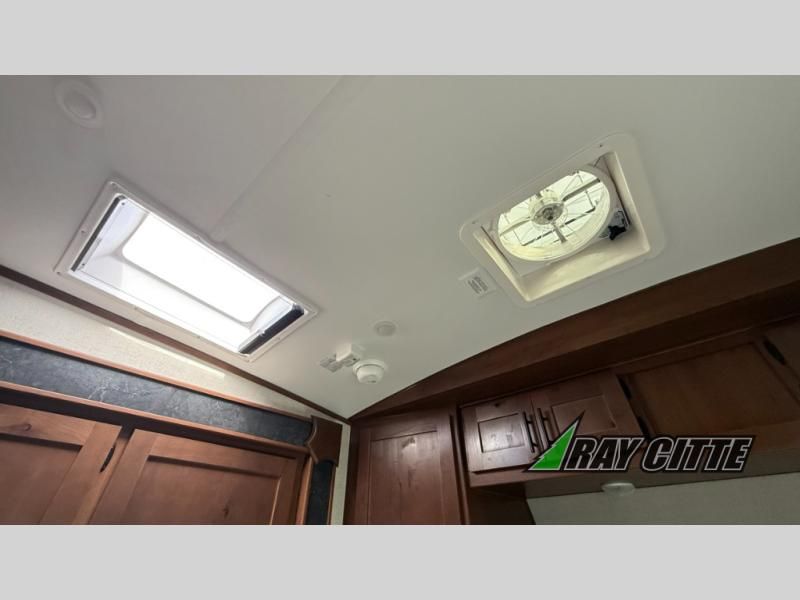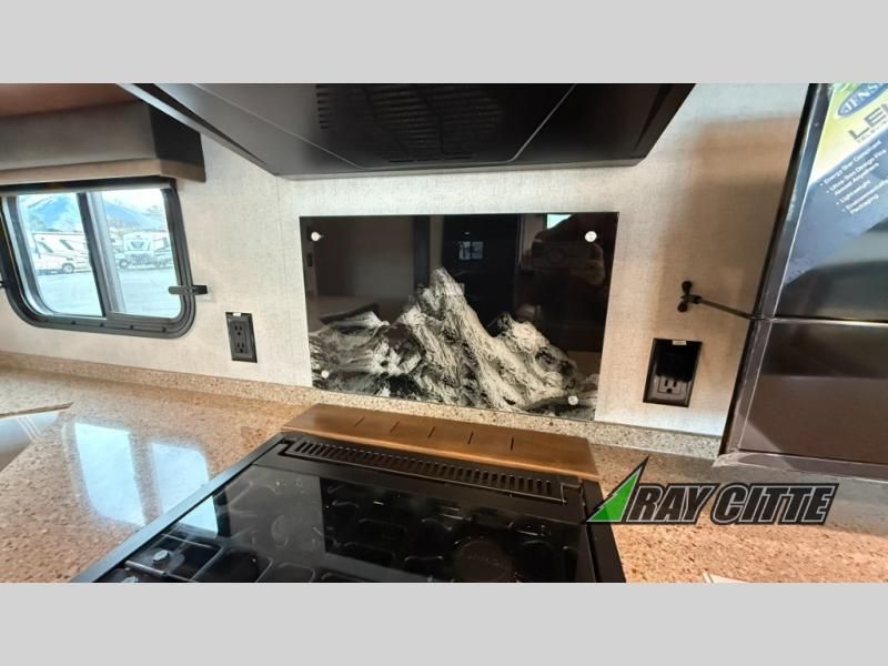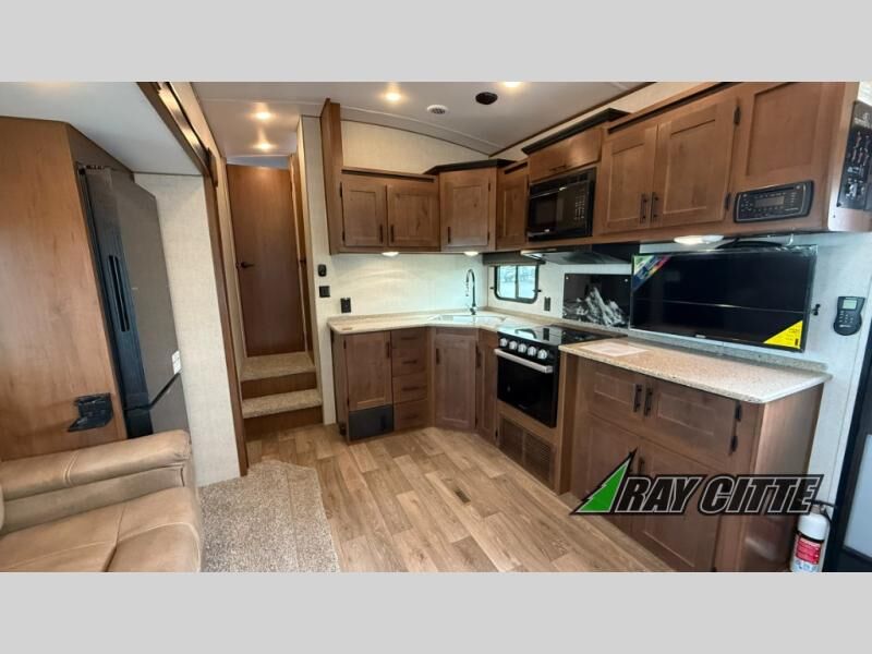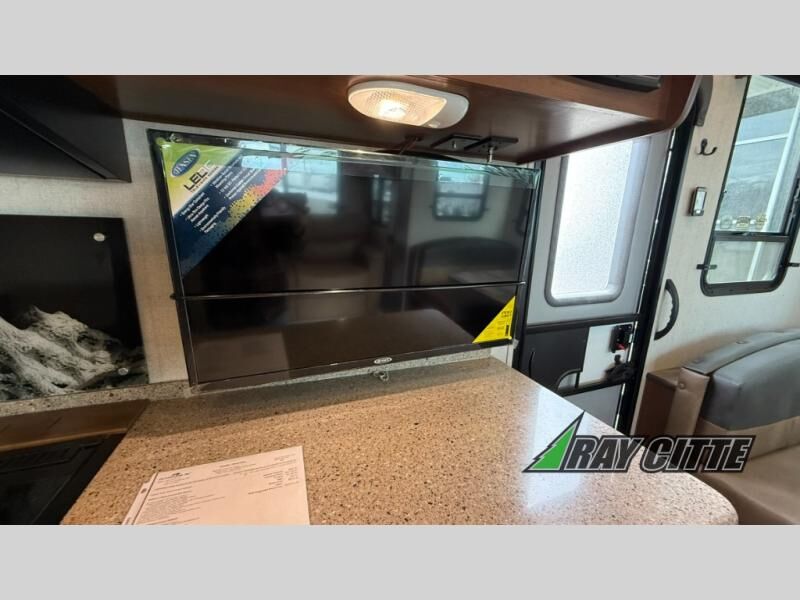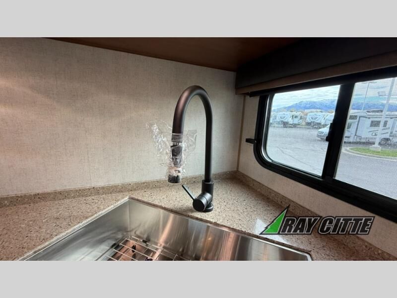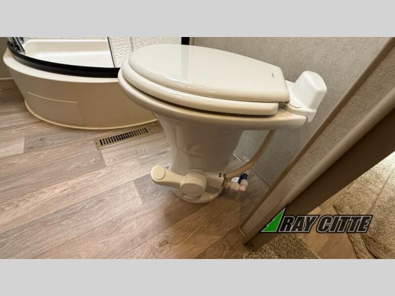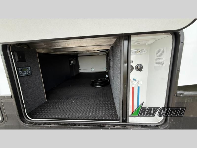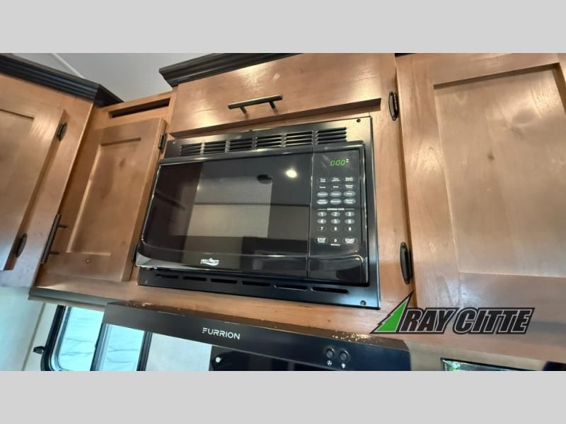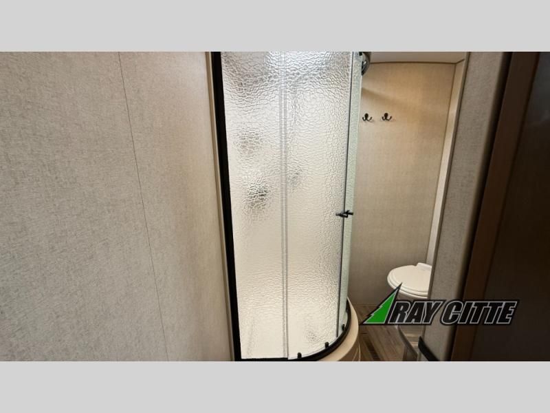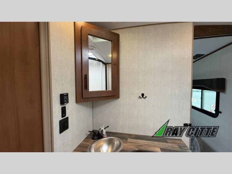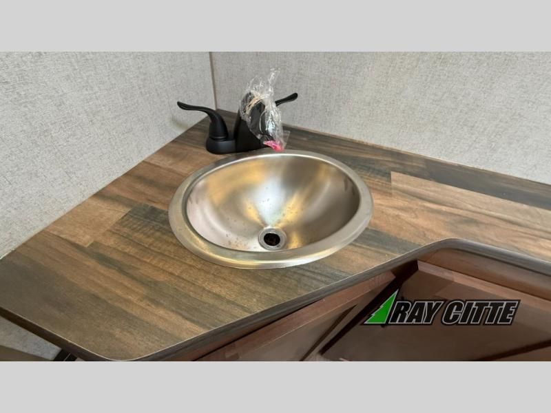 Enjoy time at the campground in this spacious travel trailer. There is a sleeper sofa slide out that will provide more floor space, along with sleeping space for guests! Once the chef makes dinner in the full kitchen, you can dine at the 45" x 84" mountain dinette. A full bath with a radius shower will let you clean up each day, and the front private bedroom will make you feel right at home. There is also a wardrobe slide here to give you additional storage and floor space!