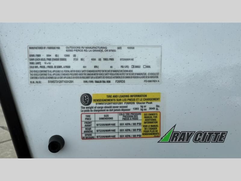 Outdoors RV Glacier Peak Mountain Series fifth wheel F26RDS highlights: