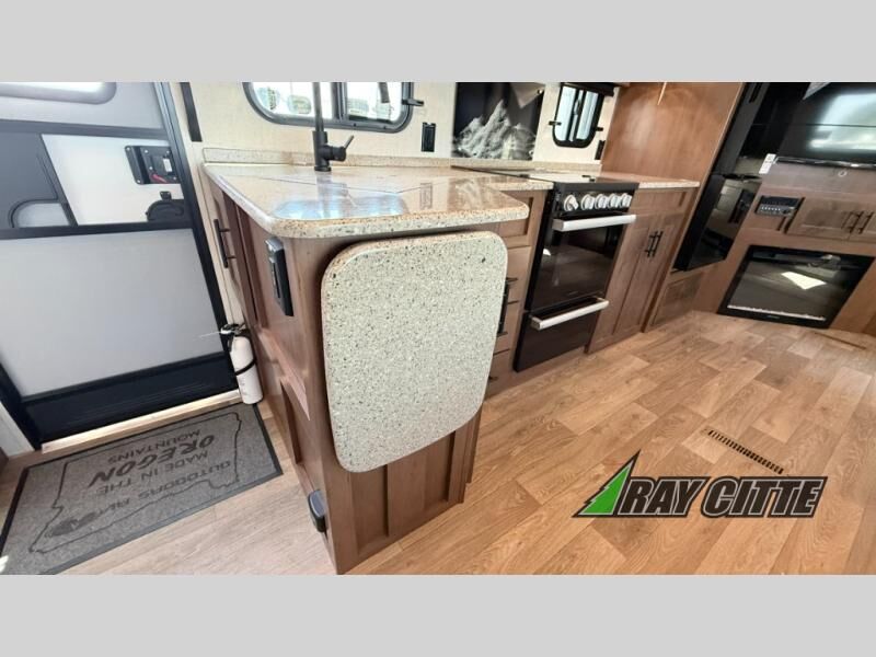 Each Glacier Peak Mountain Series fifth wheel by Outdoors RV is built tough for off-road performance with rugged 2" bonded aluminum frame walls, an integrated A-frame for added strength and ground clearance, and a custom built off-road chassis. You can plan to camp all year long since these fifth wheels are Climate Designed 4 Seasons with features such as, a triple layered four seasons roof insulation, an XL furnace, and a unique heated and insulated holding tank design. There are also off-grid camping features that will allow you to go off the beaten path when the adventure calls for it! Head inside to find residential height countertops, hardwood drawer fronts on all drawers, a Mountain Comfort mattress, plus many more comforts you would expect to find at home!