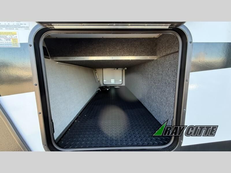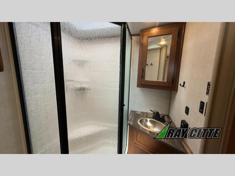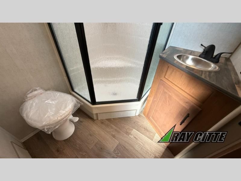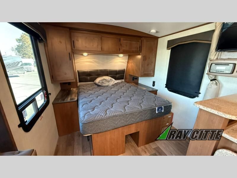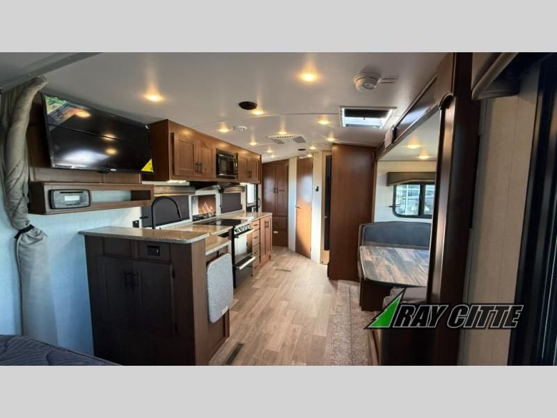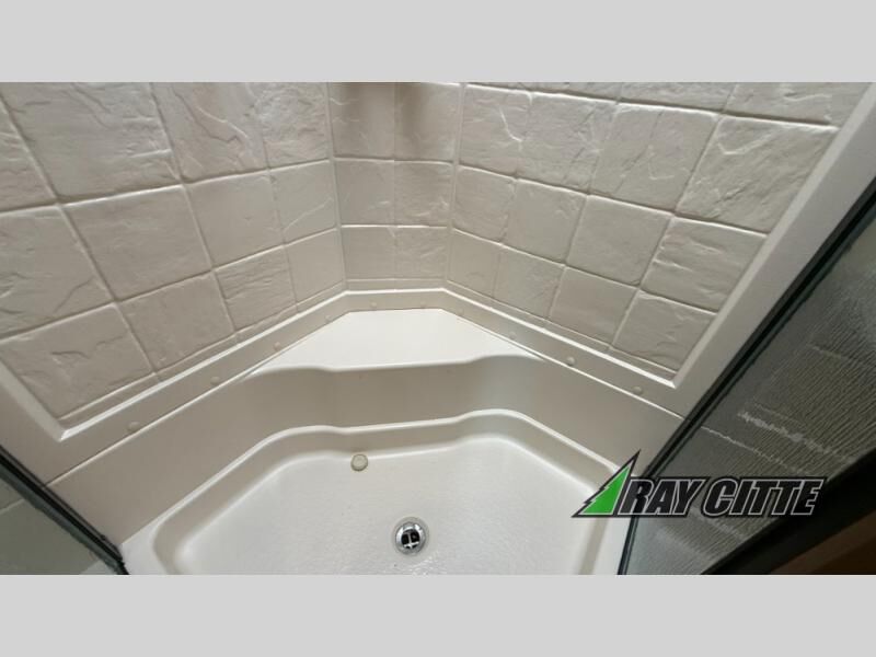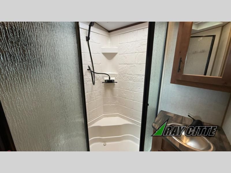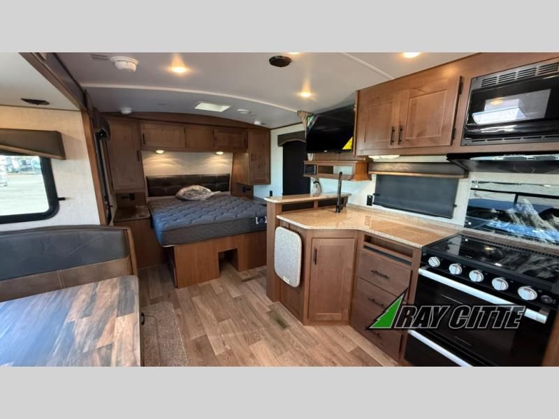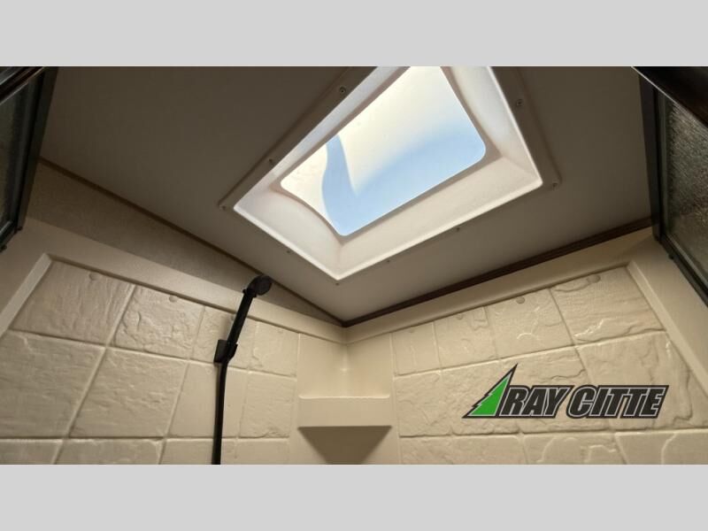 This is the perfect travel trailer for camping trips to the lake or your favorite campground. You will find a full kitchen with plenty of counter space, and a mountain dinette with a skylight to dine under natural lighting. The entryway closet/wardrobe will allow you to store jackets and shoes, and refrigerator will be perfect for your perishables. After you've cleaned up for the evening in the full bath with a shower skylight, head to the front bedroom for a great night's rest on the queen bed. You may even want to watch a movie on the swing-out 32" TV!