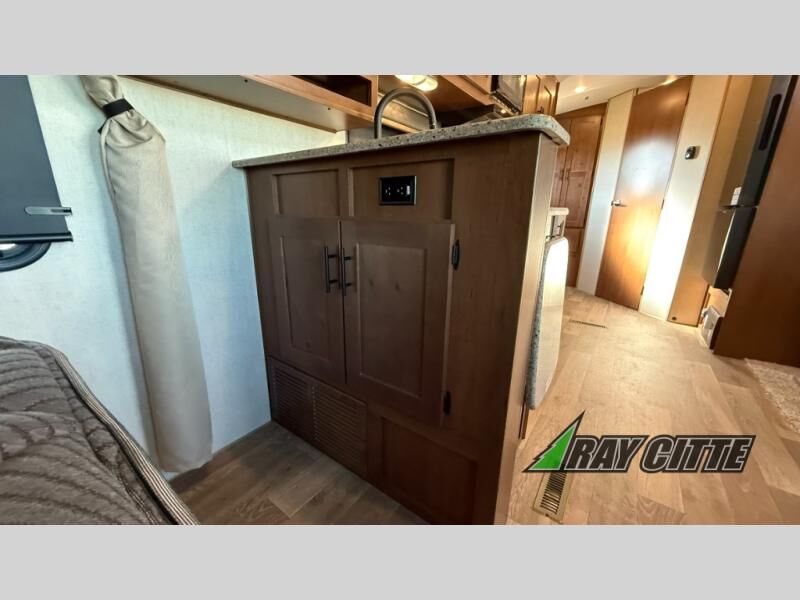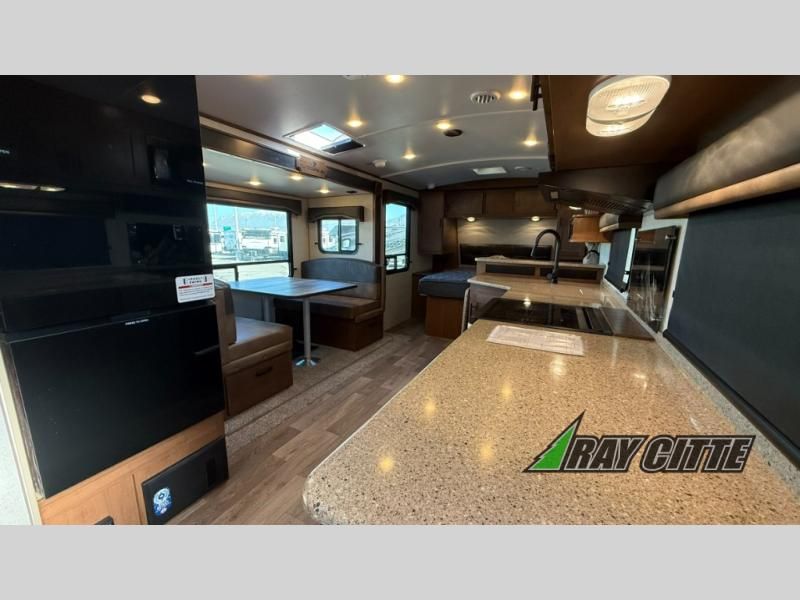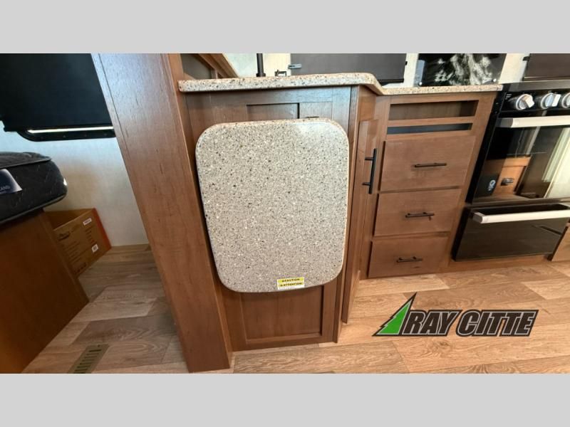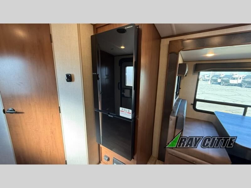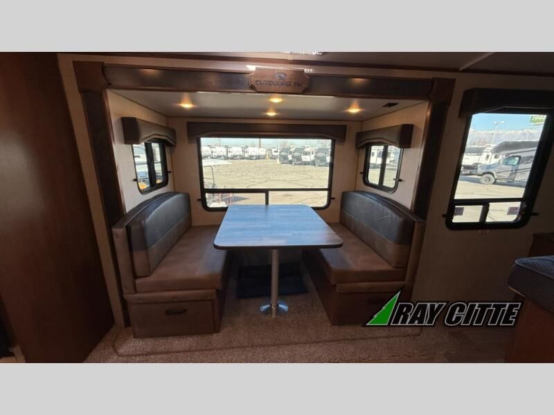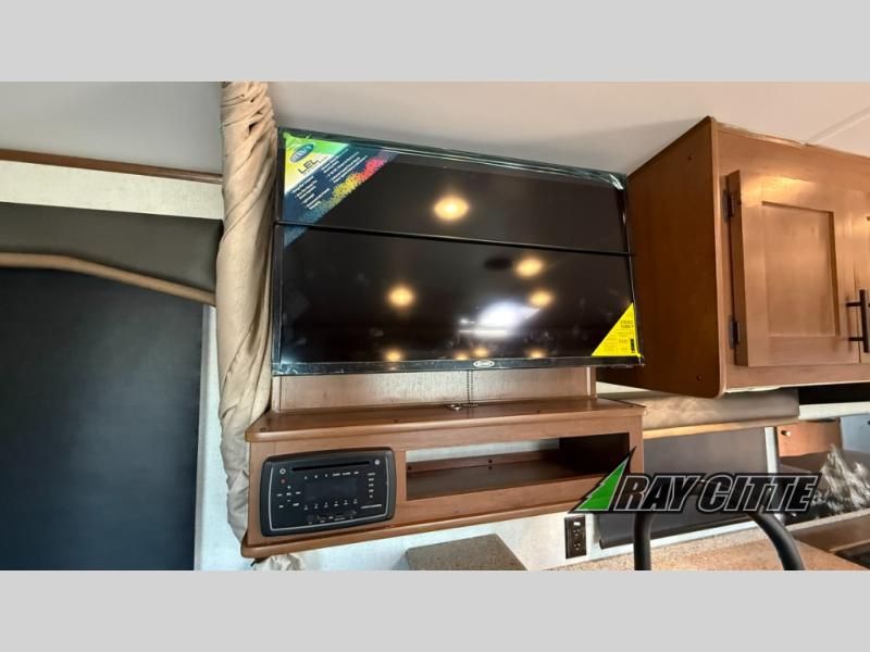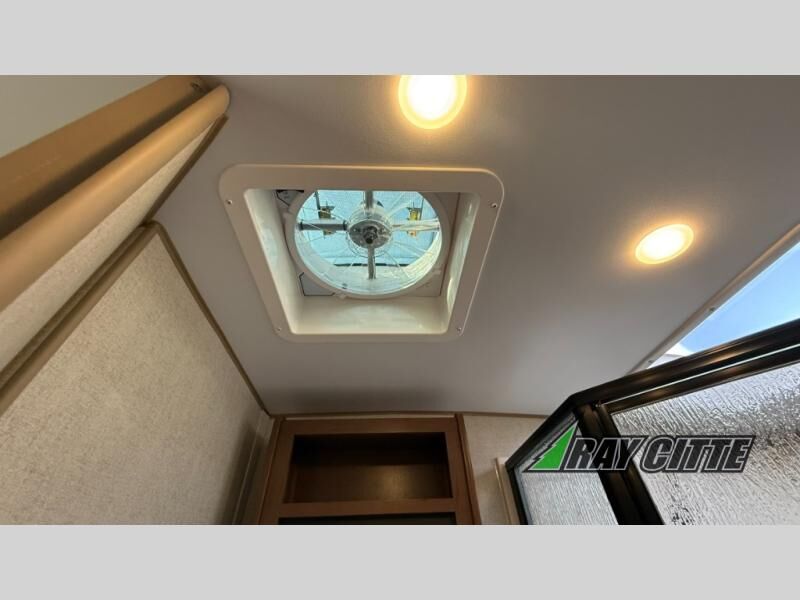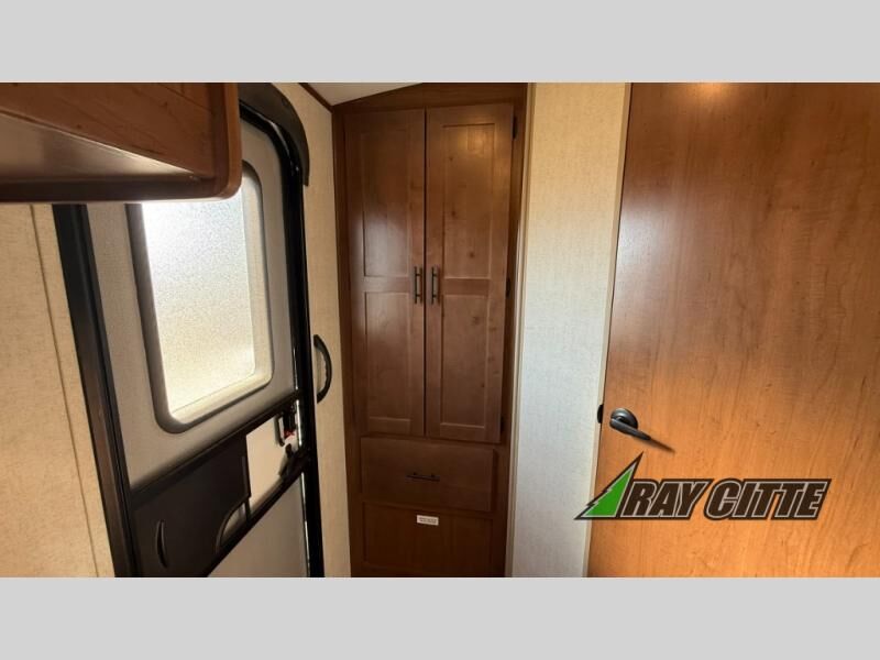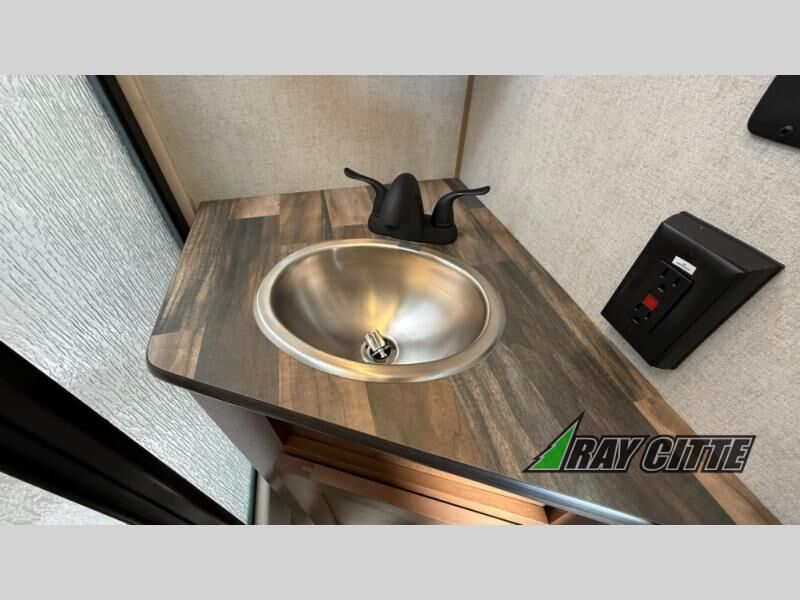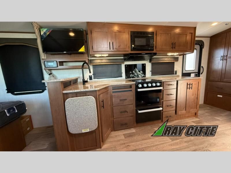This is the perfect travel trailer for camping trips to the lake or your favorite campground. You will find a full kitchen with plenty of counter space, and a mountain dinette with a skylight to dine under natural lighting. The entryway closet/wardrobe will allow you to store jackets and shoes, and refrigerator will be perfect for your perishables. After you've cleaned up for the evening in the full bath with a shower skylight, head to the front bedroom for a great night's rest on the queen bed. You may even want to watch a movie on the swing-out 32" TV!