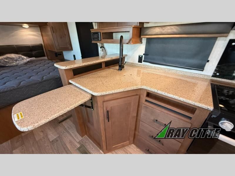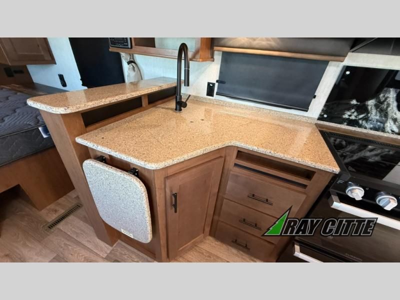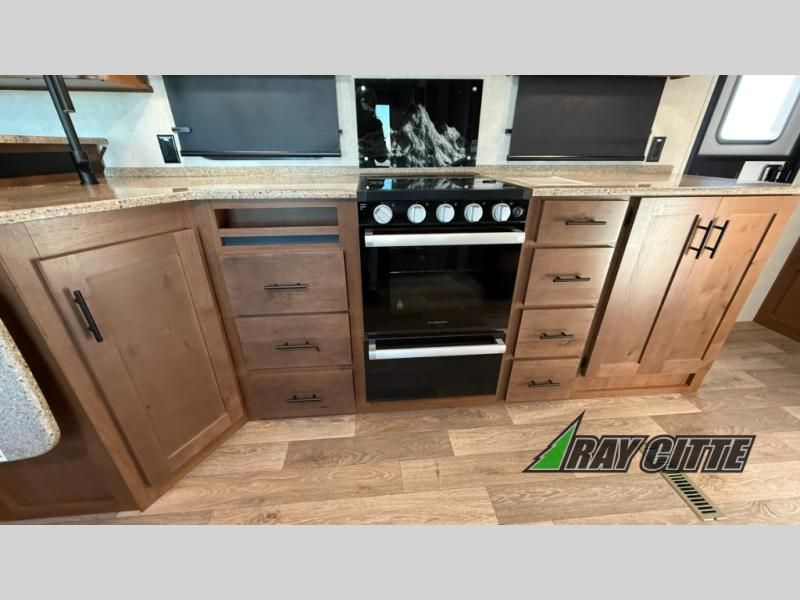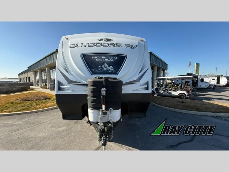 With any Timber Ridge Mountain Series travel trailer by Outdoors RV you will enjoy climate designed four seasons camping thanks to the thermal pane windows, XL furnace, plus unique heated and insulated holding tank design. The custom built chassis and rugged integrated A-frame are built for strength and durability, along with the rugged 2" bonded aluminum frame walls. Each model includes LG solid surface countertops, granite designed backsplash, vaulted radius ceilings, and a mountain comfort premium mattress for all-around comfort. You will also love the XL panoramic slide out windows and the dual pane living room skylight with a shade to let natural light in!