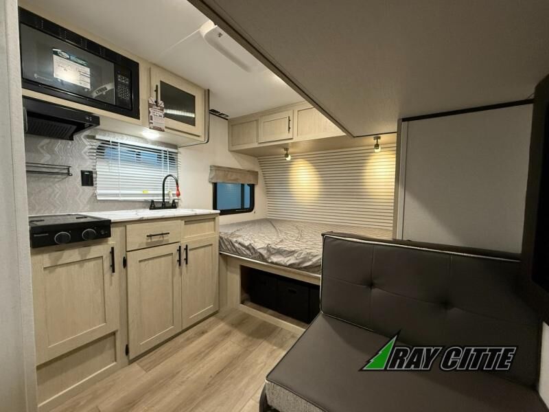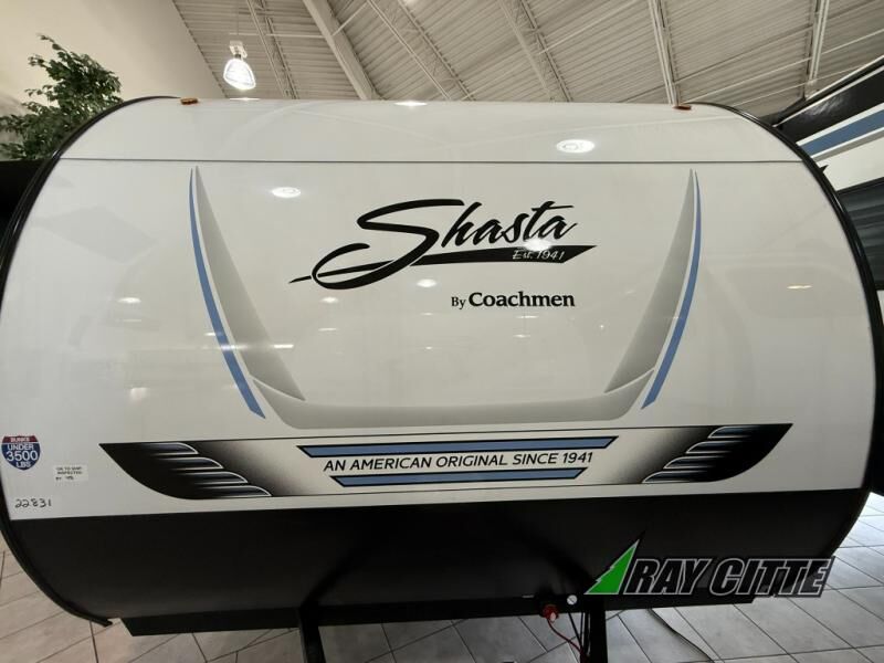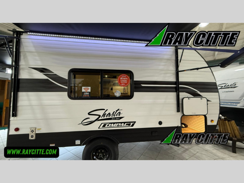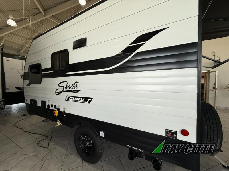 With any Compact travel trailer by Shasta RVs, you will enjoy the camping lifestyle in an easy-to-tow, lightweight unit! Each model includes four stabilizer jacks to keep your travel trailer secure at the campground, and an optional power tongue jack can be added for more convenience. You will appreciate having a tankless water heater for endless hot showers, an 8K BTU A/C to keep you cool, plus solar and back-up camera prep. The interior of each Compact travel trailer includes seamless countertops, kitchen and bath amenities, a Bluetooth portable speaker, plus storage space for all your belongings.