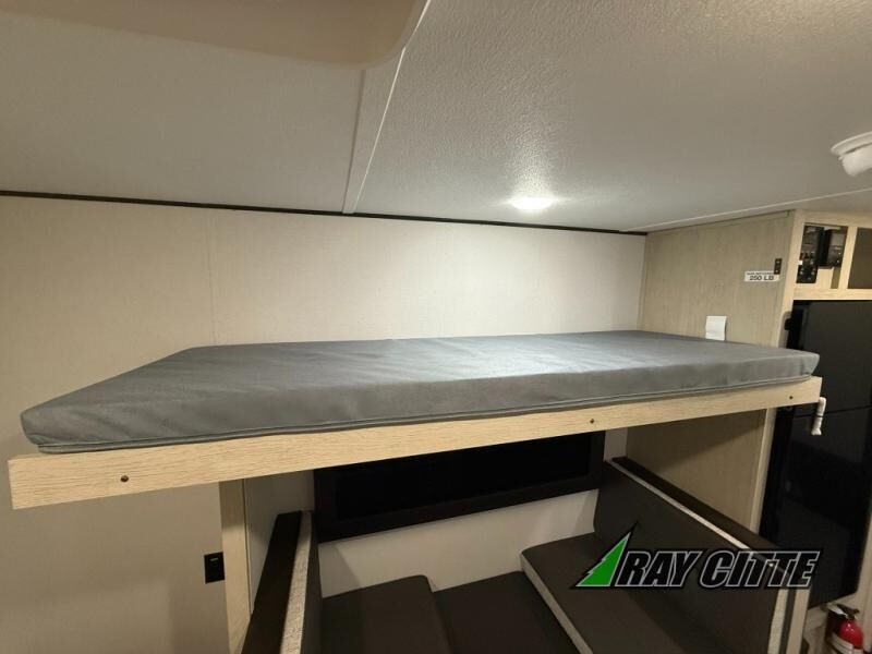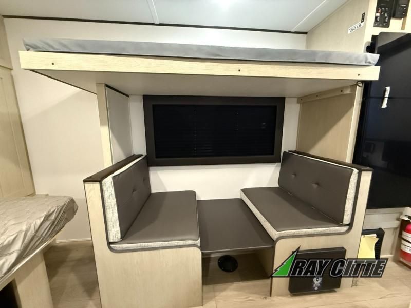 You will love exploring different campgrounds in this rear entry travel trailer! Since there is a front queen bed, a booth dinette, plus a flip-up bunk above the dinette, you can sleep four people comfortably. The private bathroom includes a toilet and a shower to freshen up in each day, and you can use the kitchen sink to brush your teeth at night. This model also includes an exterior pass-through storage for larger camp gear and an outside shower to wash your hiking gear off!