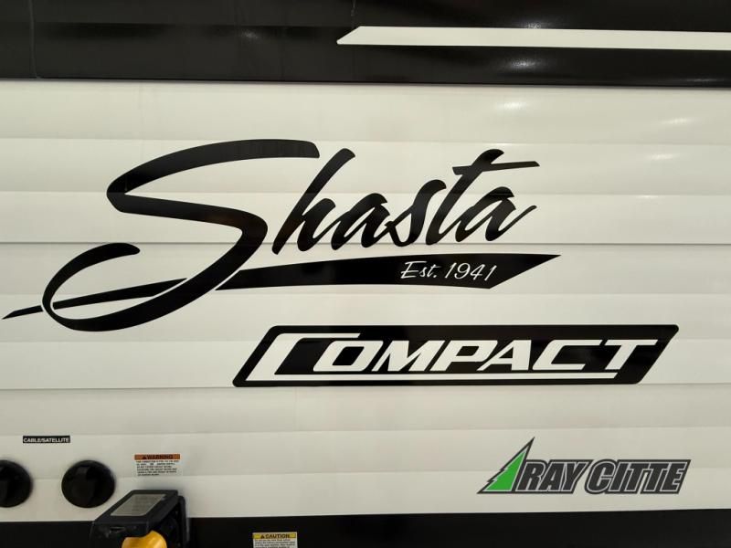 With any Compact travel trailer by Shasta RVs, you will enjoy the camping lifestyle in an easy-to-tow, lightweight unit! Each model includes four stabilizer jacks to keep your travel trailer secure at the campground, and an optional power tongue jack can be added for more convenience. You will appreciate having a tankless water heater for endless hot showers, an 8K BTU A/C to keep you cool, plus solar and back-up camera prep. The interior of each Compact travel trailer includes seamless countertops, kitchen and bath amenities, a Bluetooth portable speaker, plus storage space for all your belongings.