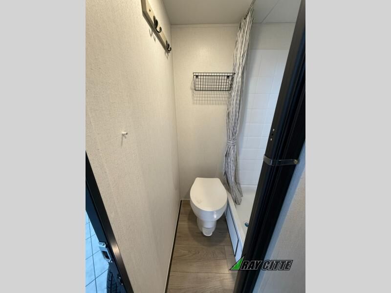 This trailer is perfect for couples or weekend trips to the lake with your buddy. There is a front queen bed with an overhead cabinet, a wardrobe, plus a bed shelf to keep valuables close by, and the sofa will provide seating and sleeping space for guests. There is a private bathroom with a toilet and a shower so you won't have to use the camp's facilities in the middle of the night. You will love having a two burner cooktop and microwave oven to cook meals each day, plus there is a 4.5 cu. ft. refrigerator for cold items!