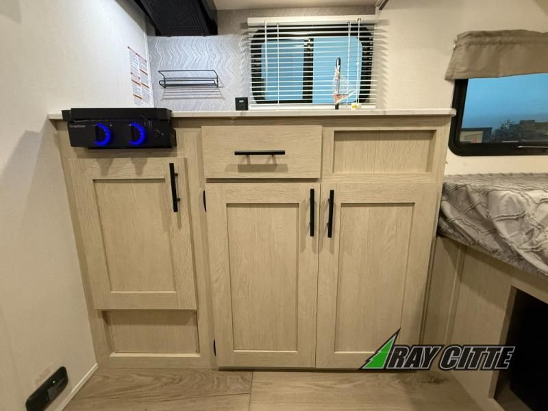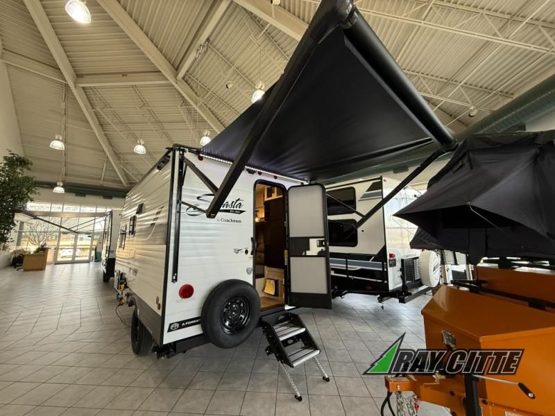With any Compact travel trailer by Shasta RVs, you will enjoy the camping lifestyle in an easy-to-tow, lightweight unit! Each model includes four stabilizer jacks to keep your travel trailer secure at the campground, and an optional power tongue jack can be added for more convenience. You will appreciate having a tankless water heater for endless hot showers, an 8K BTU A/C to keep you cool, plus solar and back-up camera prep. The interior of each Compact travel trailer includes seamless countertops, kitchen and bath amenities, a Bluetooth portable speaker, plus storage space for all your belongings.