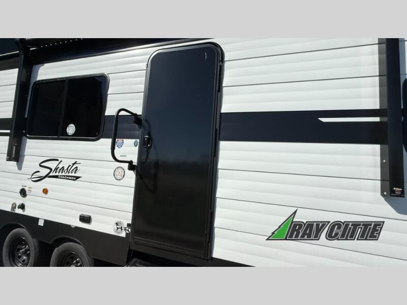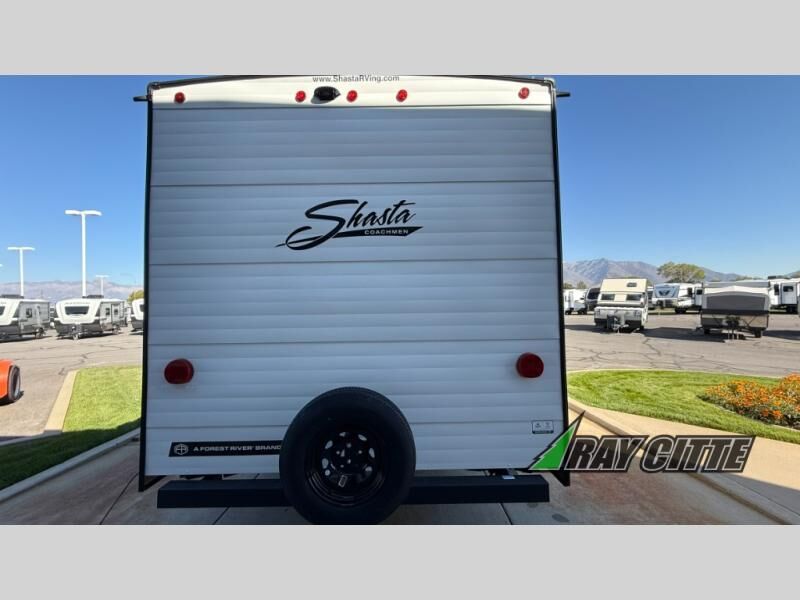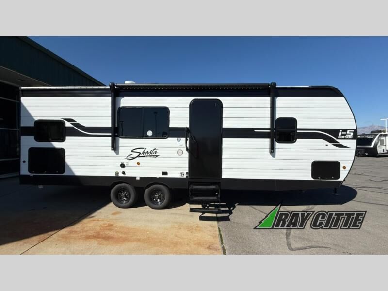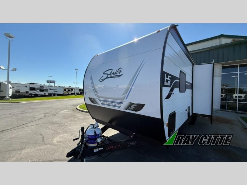 In any Shasta i-5 Edition travel trailer, you will find quality craftsmanship along with an affordable price tag. These units each feature four stabilizer jacks to make setting up easier and an enclosed underbelly for added protection as you travel. The Base Camp Package provides each unit with black tank flush, a monitor panel for quick access to the functions of your unit, a 13.5K A/C unit, and a tankless water heater for added convenience. Inside, you'll find seamless countertops, sink covers, a portable Bluetooth speaker, and more comforts!