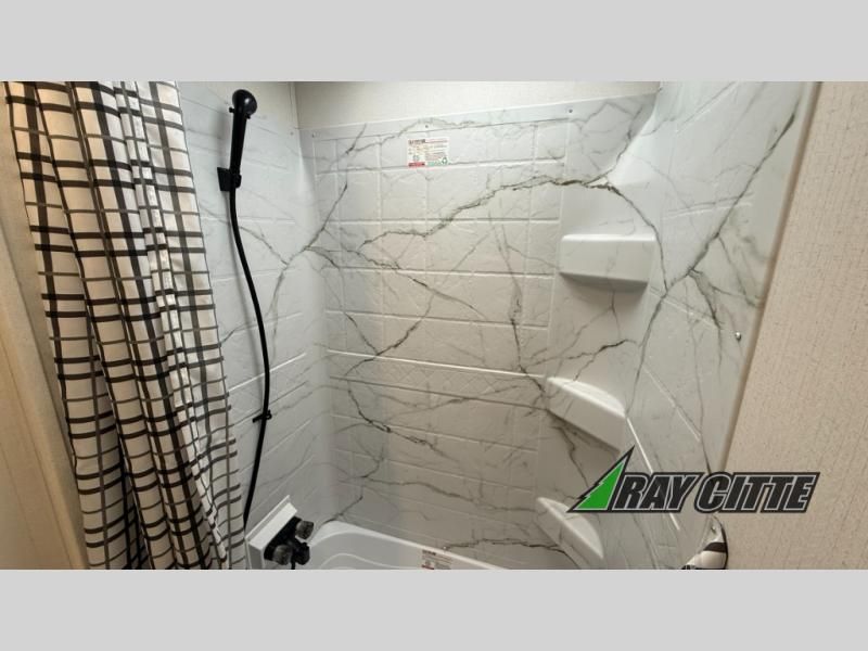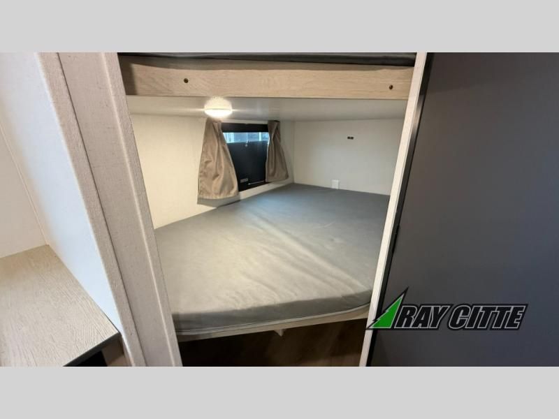 Enjoy camping with family and friends in this Shasta i-5 Edition bunk model! There are double-size bunks in the rear roadside corner and a full bath with shower, vanity, and toilet in the opposite rear corner. The kitchen is fully equipped for your camping trips featuring a three burner cooktop, a microwave cabinet, a large sink, and an 8 cu. ft. residential-style refrigerator. You will also love the pantry for all of your canned goods and snacks. In the front of this unit, a private bedroom with a curtain provides a quiet retreat from the rest of the unit, and there are dual wardrobes to keep your clothes tidy.