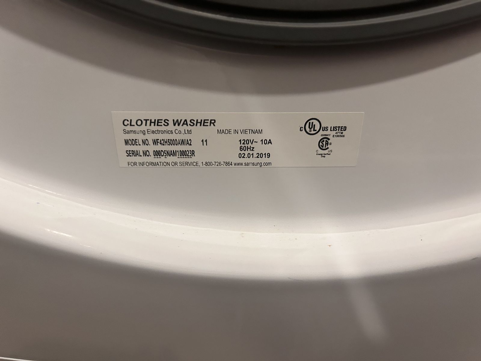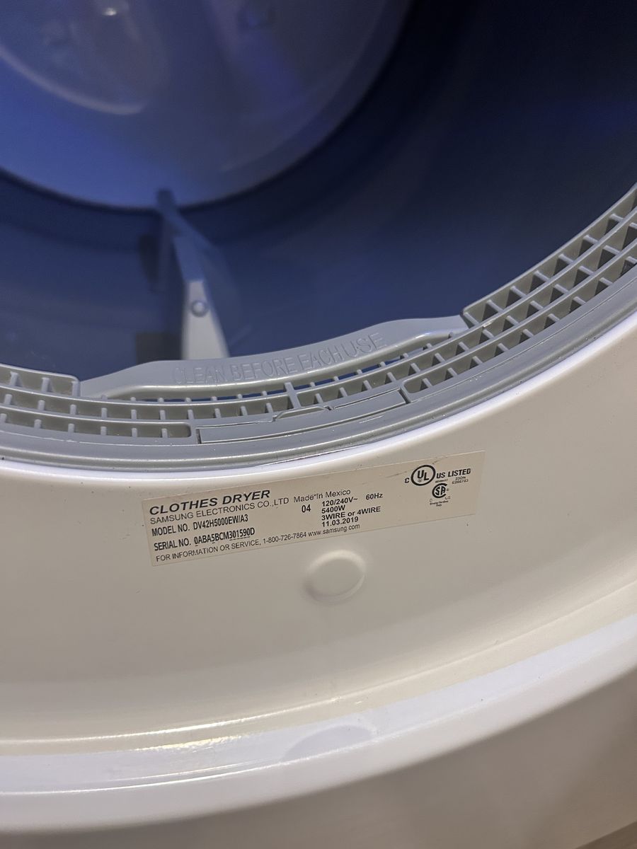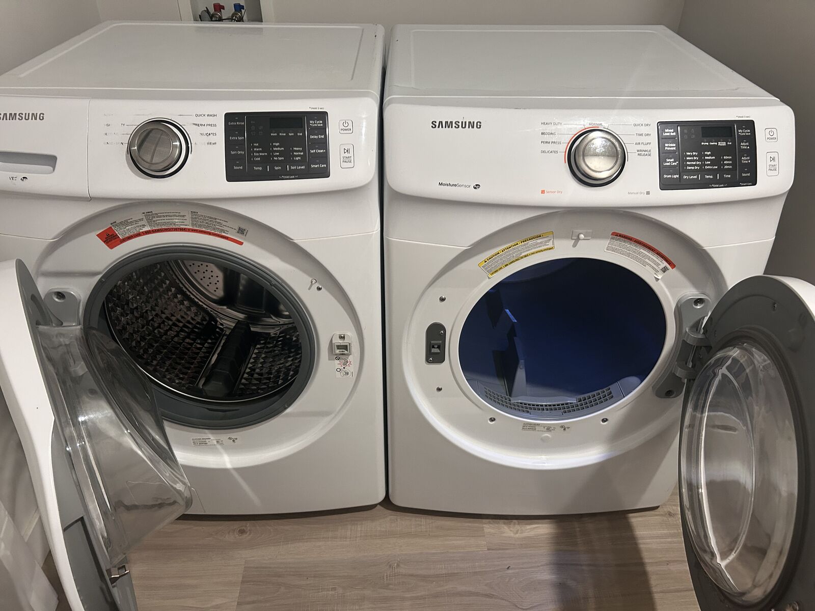 Zelle4.2 cu. ft. Front Load Samsung washer with matching 7.5 cu. ft. Electric Dryer. Both work great! I’m just moving and no longer need them.