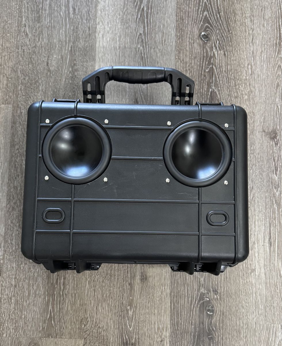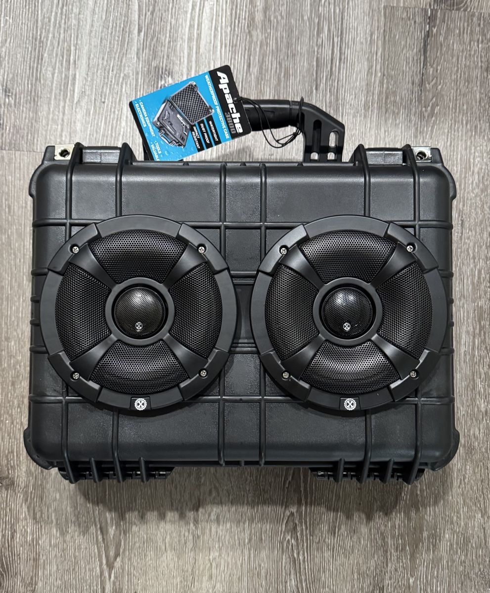 ApplePayHandmade Apache 3800 case Power bass marine certified 6.5” speakers Dayton audio passive radiators x2 Dajunguo T100hs-w amplifier 24v 5ah lithium battery w/ charger