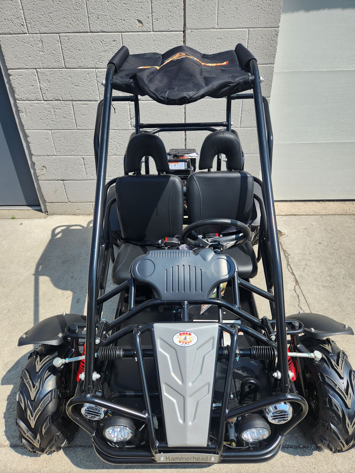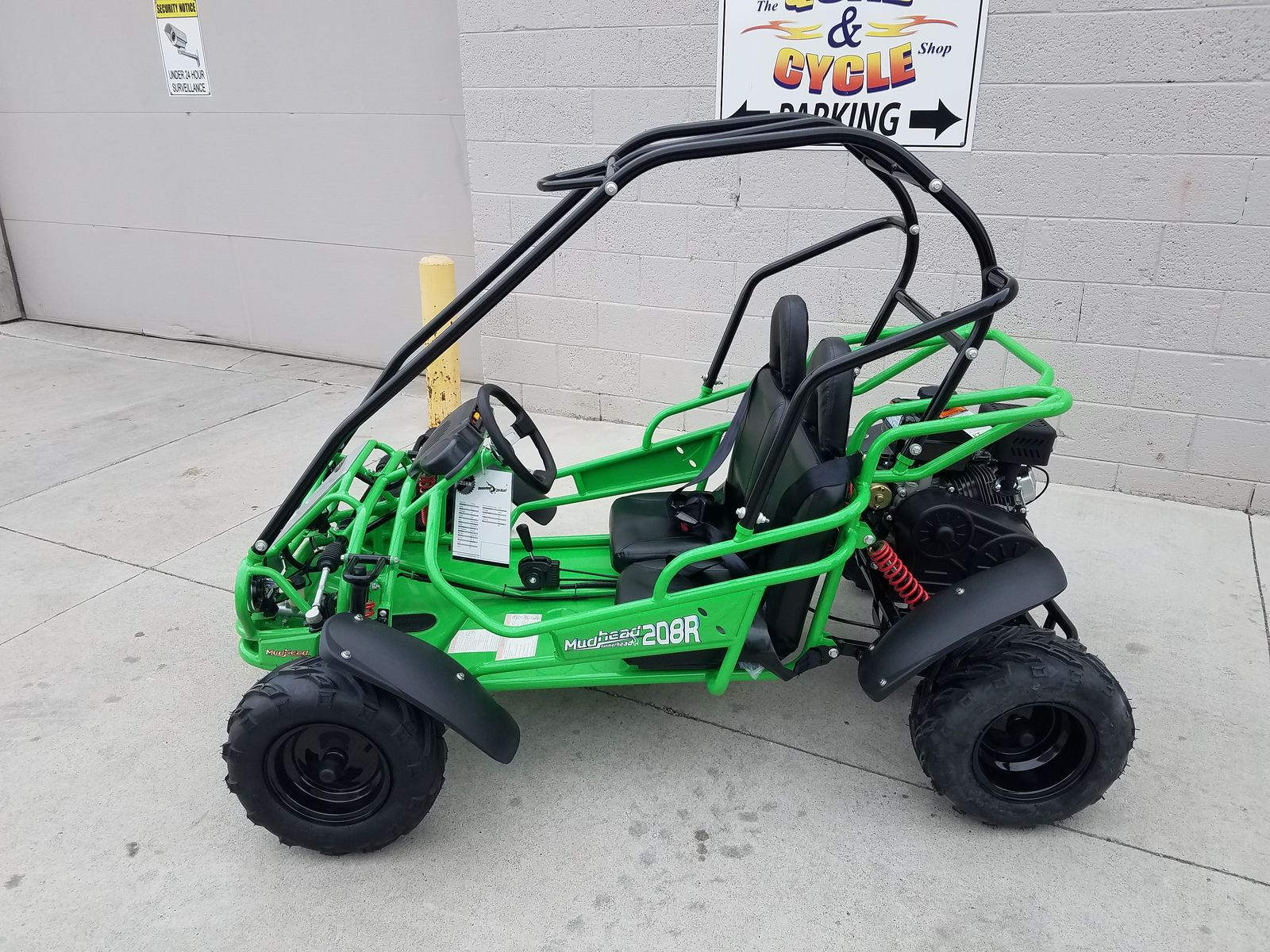 MudHead 208R comes equipped with reverse and a 208cc (6.5 HP) LCT electric-start engine utilizing a manual choke for all-weather starting. Other standard features include an adjustable driver’s seat, LED headlights, and a throttle governor.