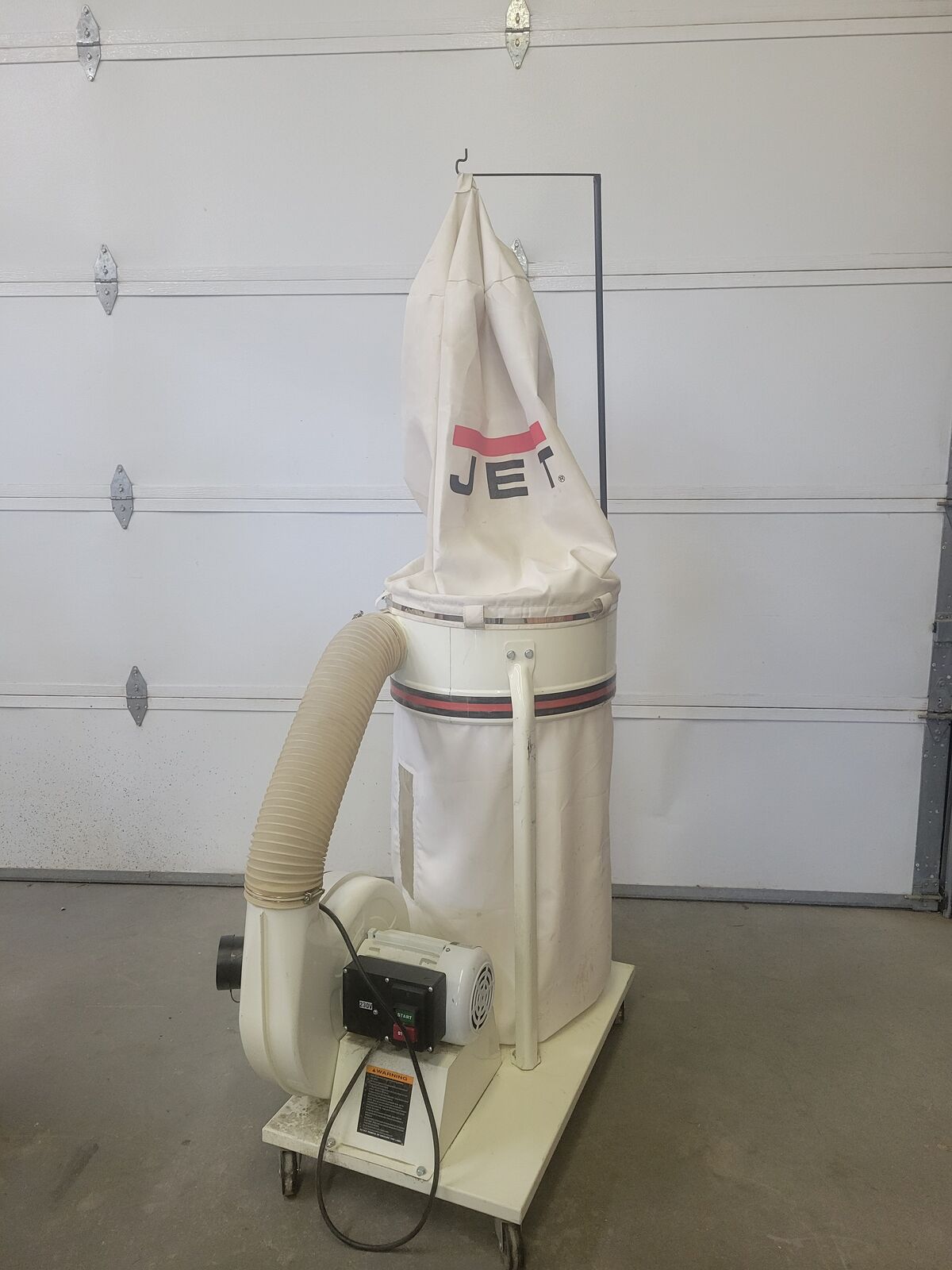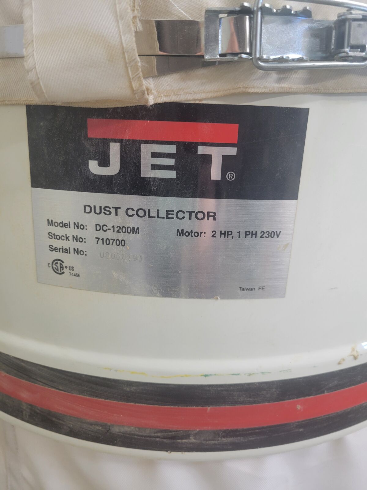 This dust collector is in excellent condition and everything works as it should. It is powered by a 2hp. 220 volt motor, that has plenty of power. The dust collection bag has a window so you can see when it needs to be emptied. It comes with two four inch ports, and I will include 12 feet of hose with it. It has no trouble keeping up with my 24” planer. Call with any Questions. Model # is Jet DC 1200. Alternate phone number 435-681-0297, Dave