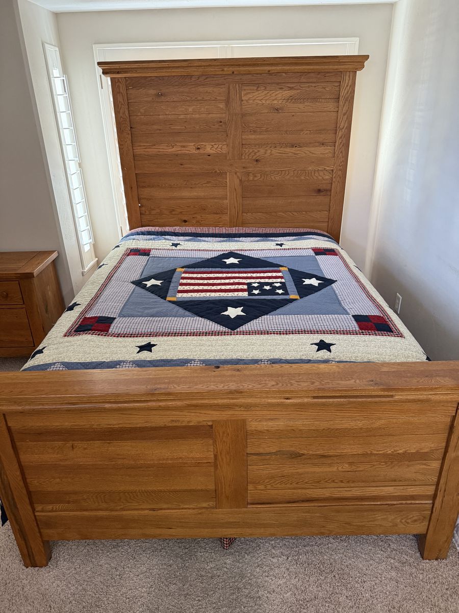 Vaughan Bassett solid oak mission bedroom set. This set is in immaculate condition, no marks or blemishes at all. Similar sets retail for $3500 or more. Asking $1800 OBO. Text Dave at 8015509042