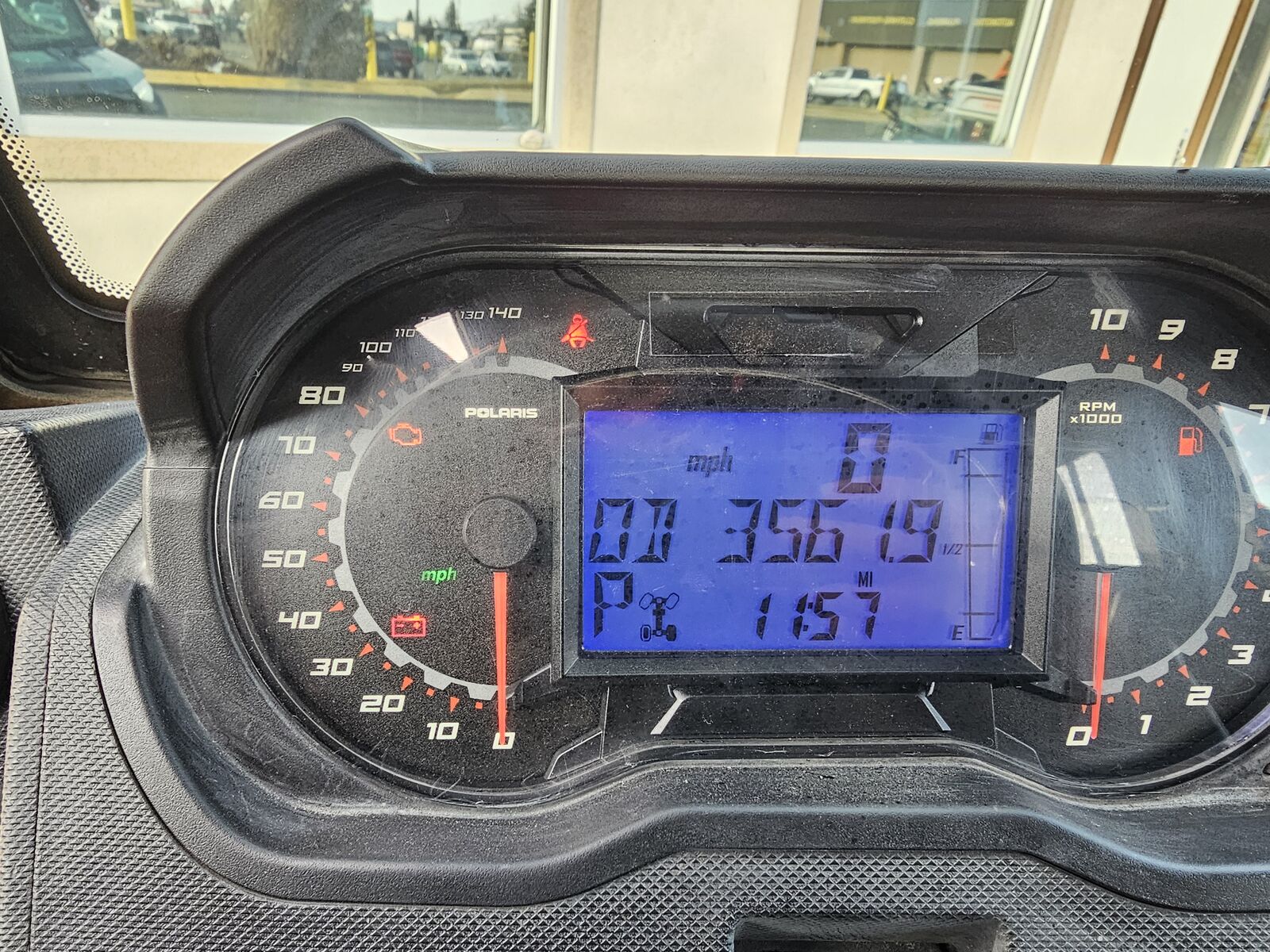 Dual-sweep Analog Dials with 4 in. LCD Rider Information Center - User Selectable Blue / Red Backlighting and Brightness, Programmable Service Intervals, Speedometer, Tachometer, Odometer, Tripmeter, Clock, Hour Meter, Gear Indicator, Fuel Gauge, Coolant Temperature, Voltmeter, Service Indicator and Codes, Seat Belt Reminder, 2 DC Outlets, USB Charge Port