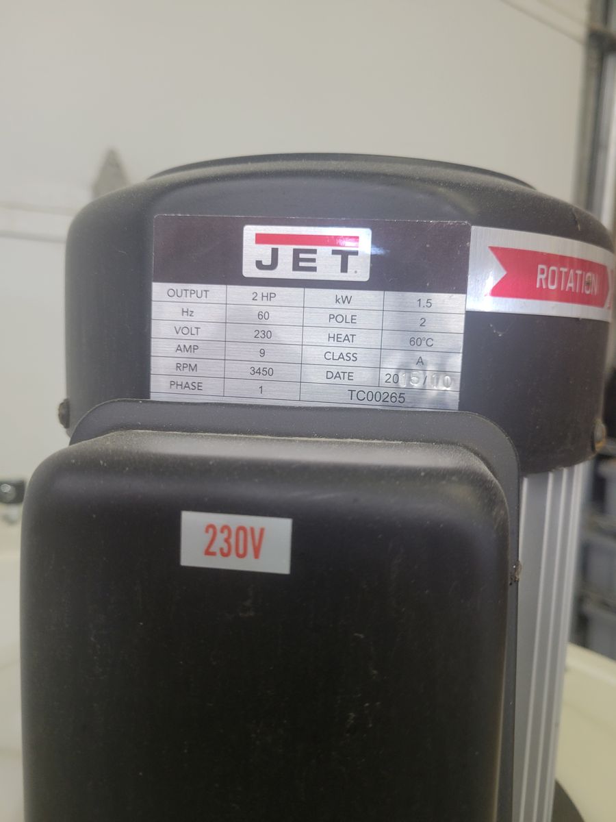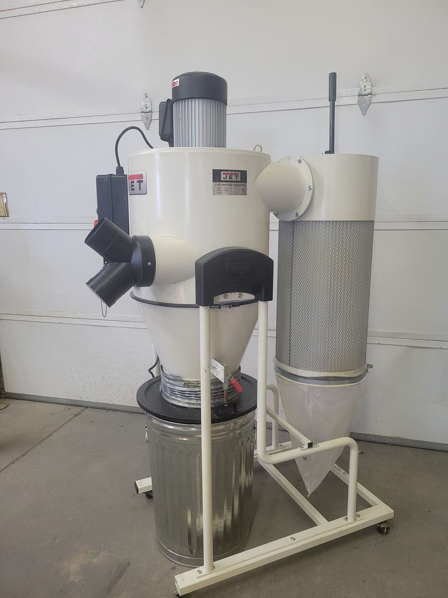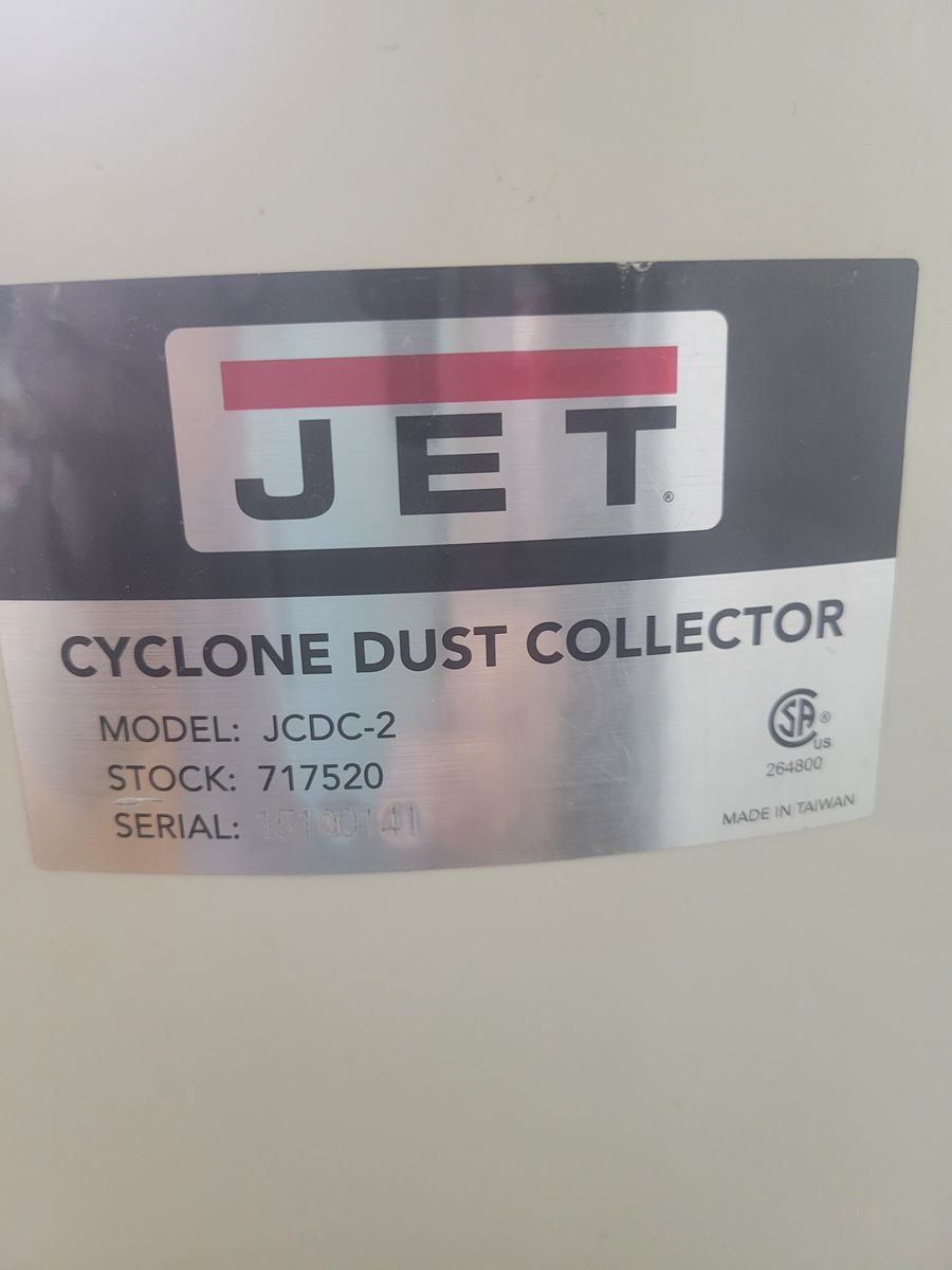 This dust collector is in like new condition. Everything works as it should with no problems . These cyclone dust collectors are super efficient, even down to the smallest particles. All the dust and chips settle down in the easy to dump pail. The 2hp motor is 220 volt powered, and has enough power for even a large planner. They still make this model, so parts are available if needed. The canister ensures the return air to your shop will be clean, and is easy to clean just by cranking it. The model # is JCDC-2