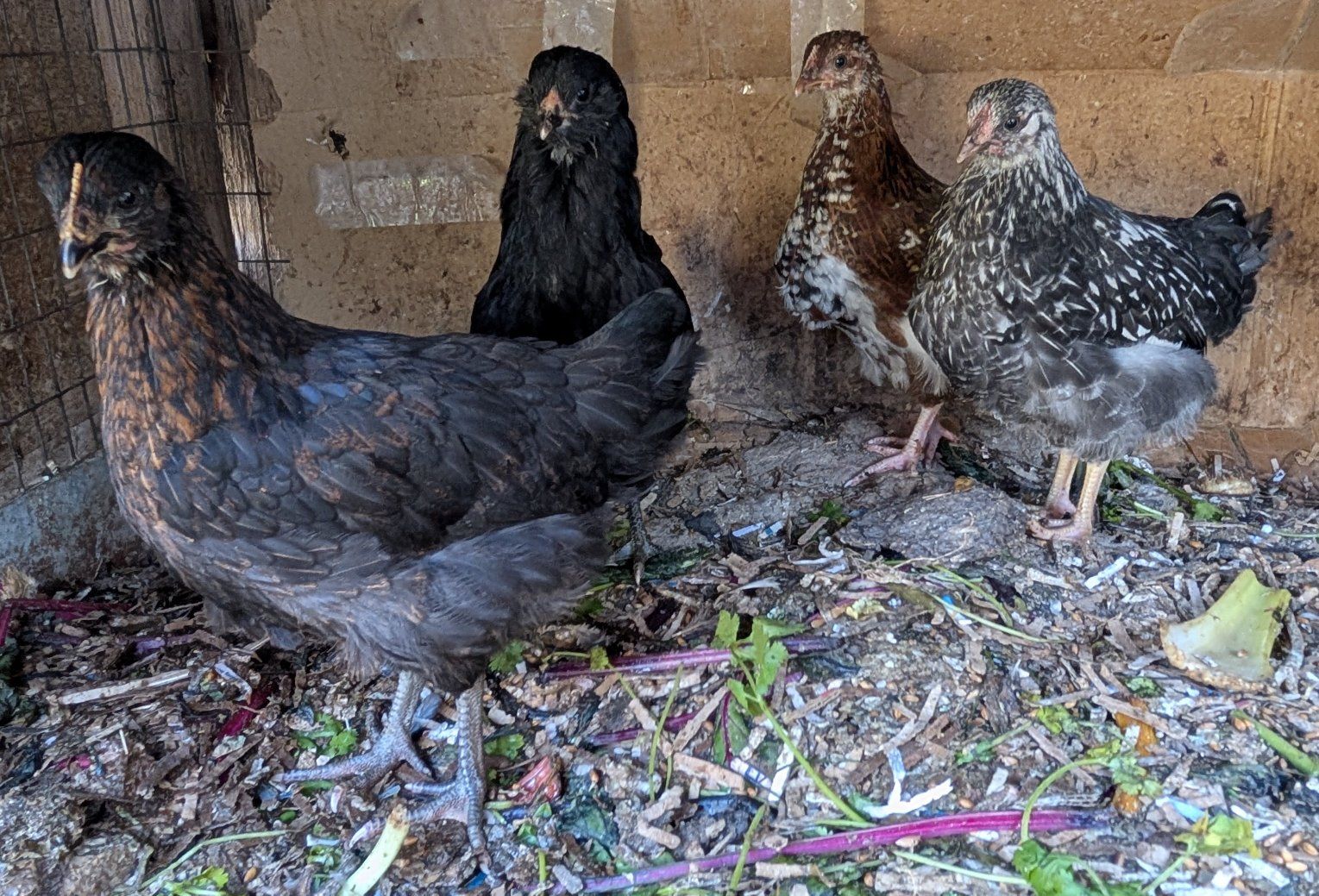 2 month old pullets of various breeds: $30 per chicken.