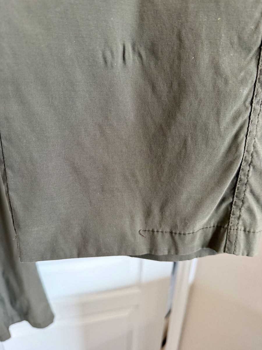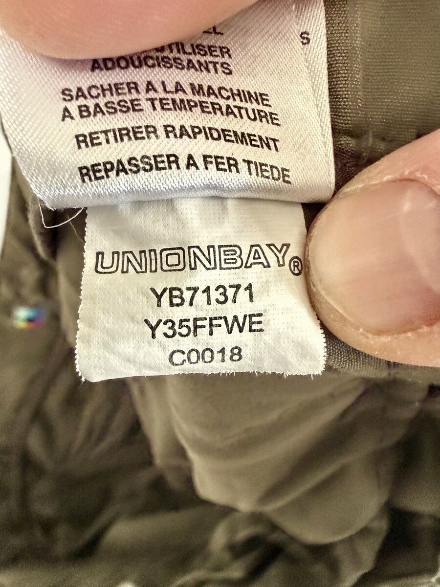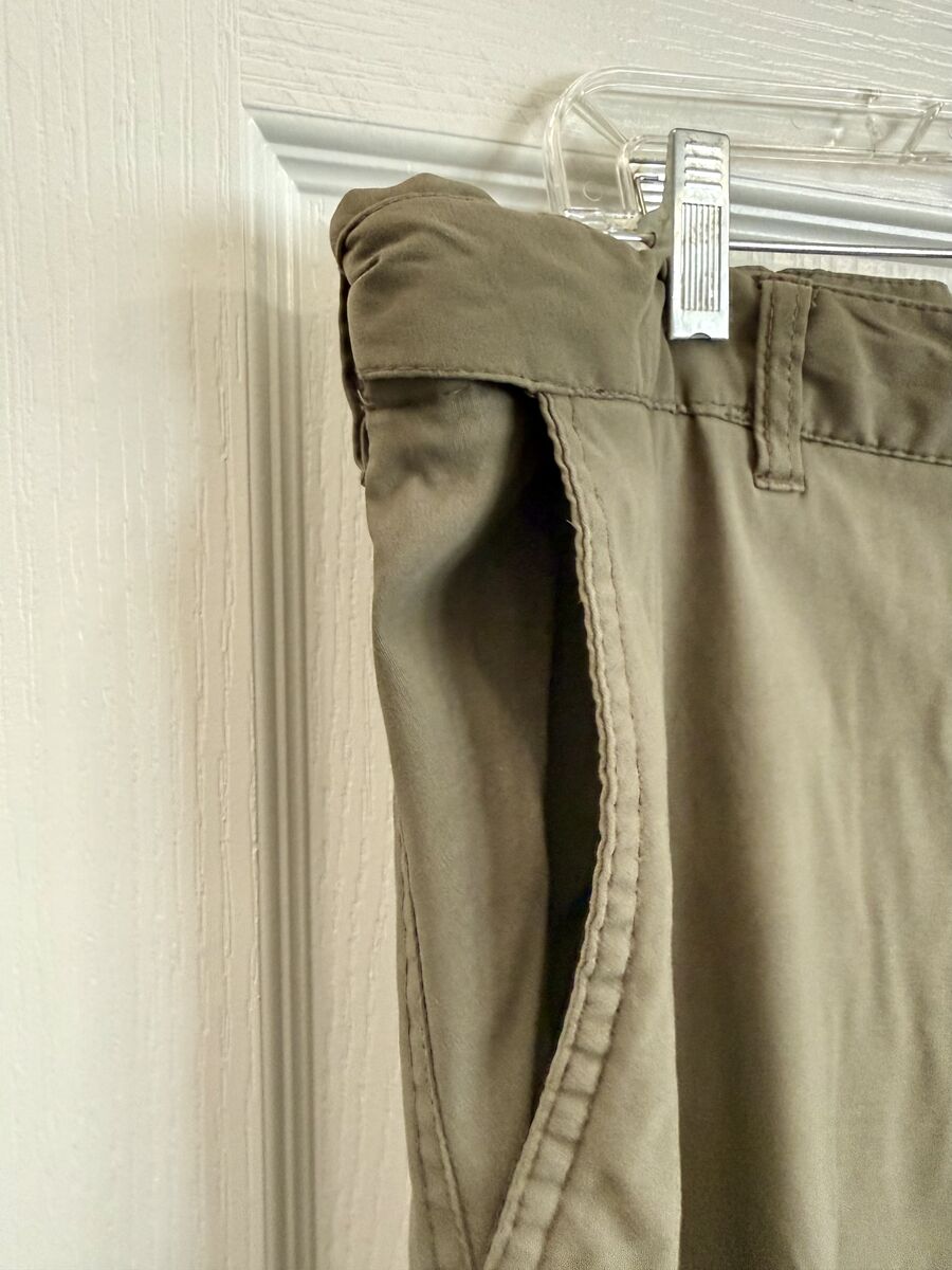 All pockets have a zipper except the 2 front hand pockets. Great hiking pants or anything active. Olive green color. $10.