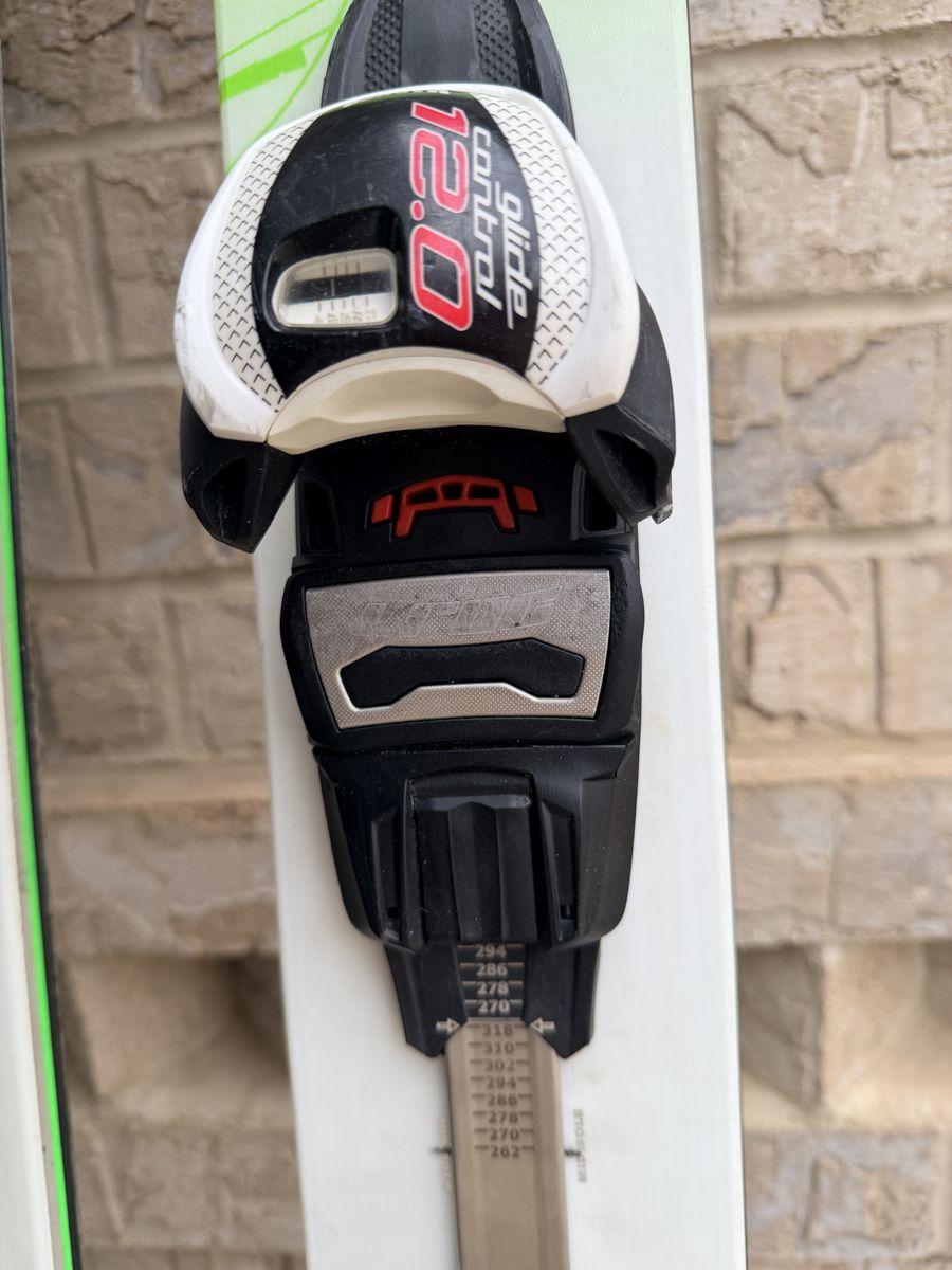 Marker Alpine Bindings (DIN 4-12) are adjustable, but set for ~men's 9.5 shoe size