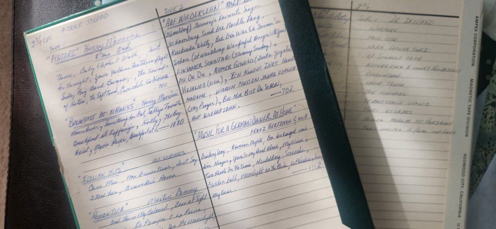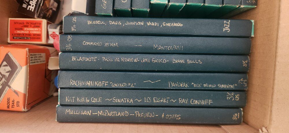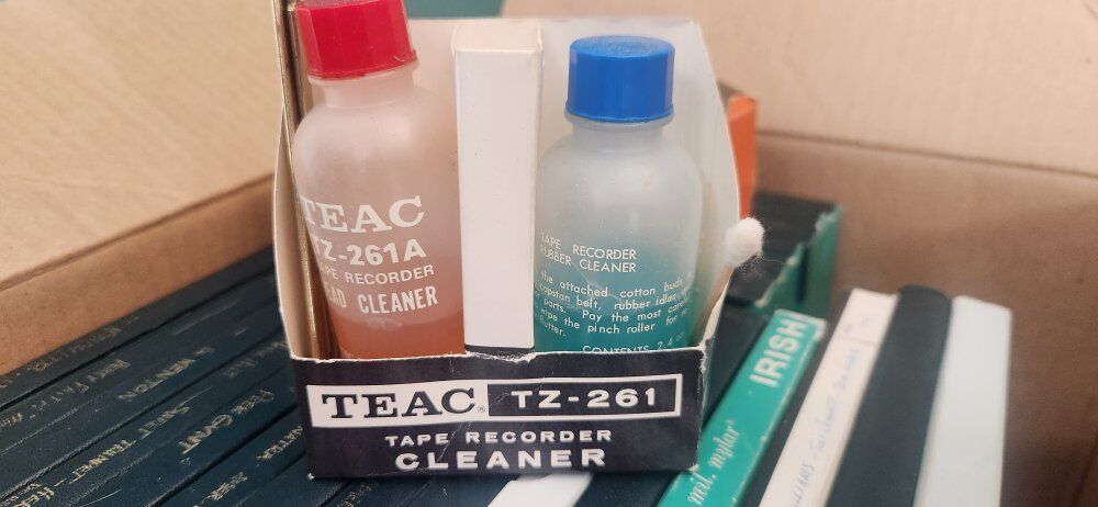 Zelleset in teak, Dual mic, four track, 17/8, 3 3/4, 7 1/2, record speed. all tapes and supplies included. ask about our Gerrard turntable.