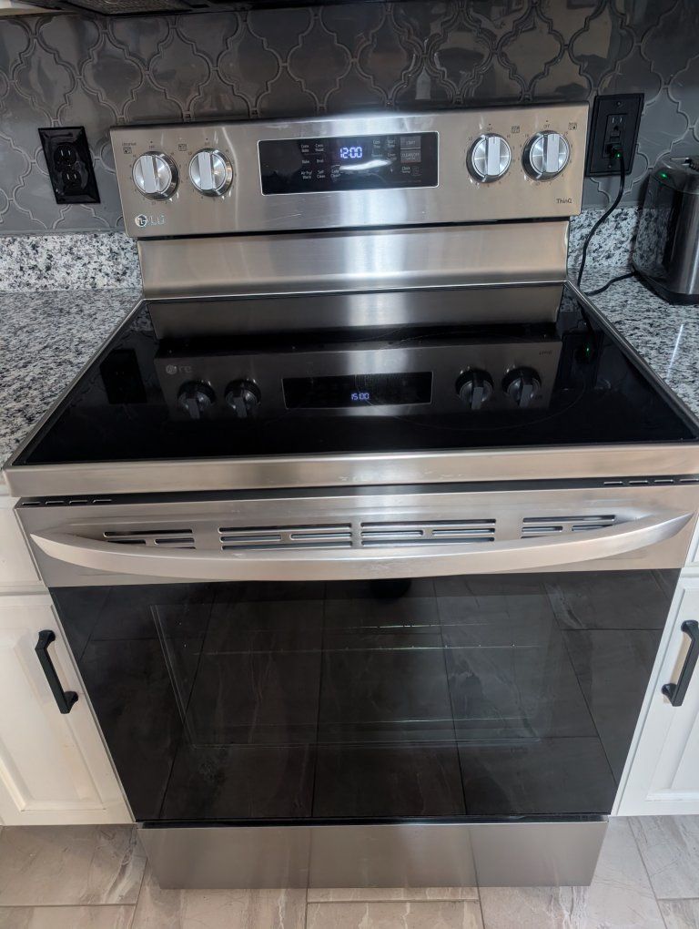 LG brand glass top electric stove. Model number LREL6323S. purchased new from RC Willey 2 years ago. The stove is stainless steel, has an air fryer, convection oven, and thin q technology. It is in great shape. We are just switching to gas. $350 obo