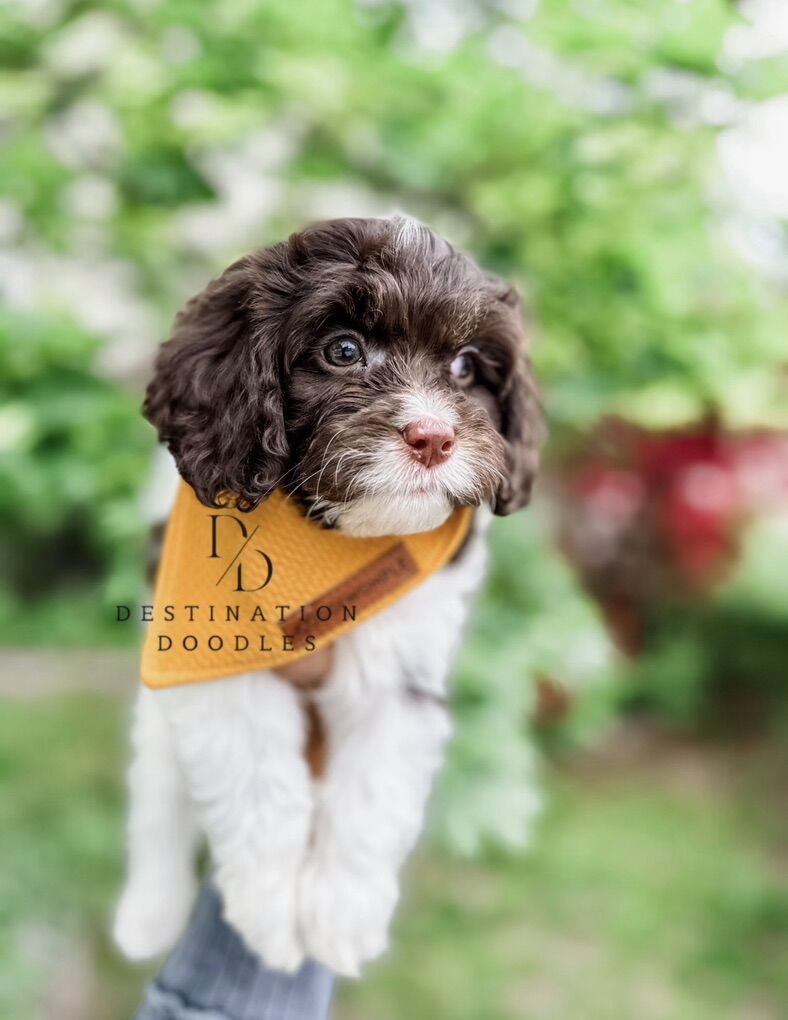 Named after Cooperstown, NY, this boy is truly Hall of Fame worthy—just like his namesake! Cooper is a 12lb F1 Chocolate Cavapoo stud, and we’ve been waiting a long time for a chocolate boy like him. Very unique in the Cavapoo world! He’s fun, sweet, smart, and happy, with a lovable temperament that shines in his puppies.